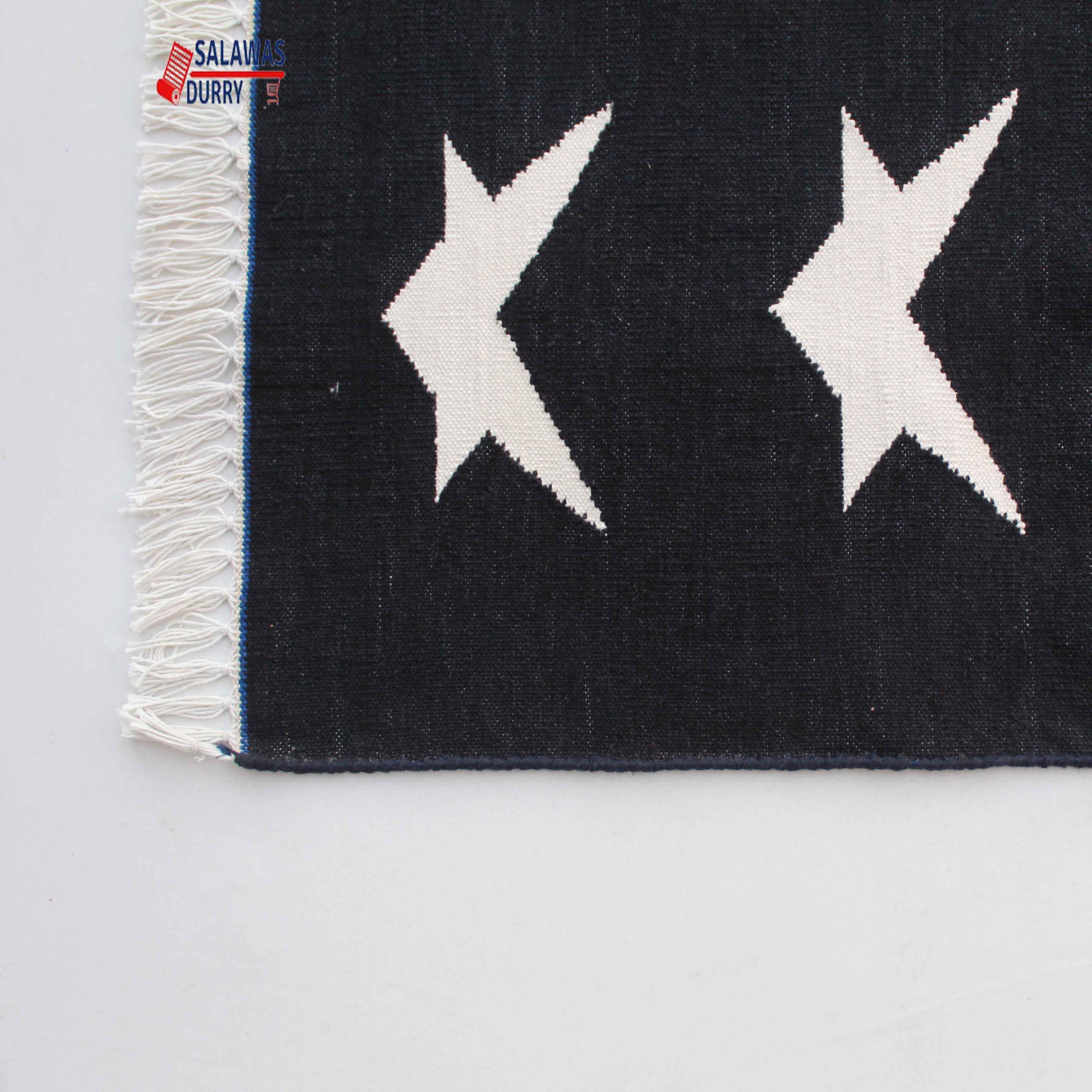 This 3x5 Cotton Black And White Star Rug, handmade, reversible Dhurrie rug kilim. It is expertly hand woven using traditional loom techniques and crafted with strong cotton threads. The rug features vibrant and long-lasting colors, thanks to the use of natural dye threads. You can easily wash this rug without worrying about the colors fading.