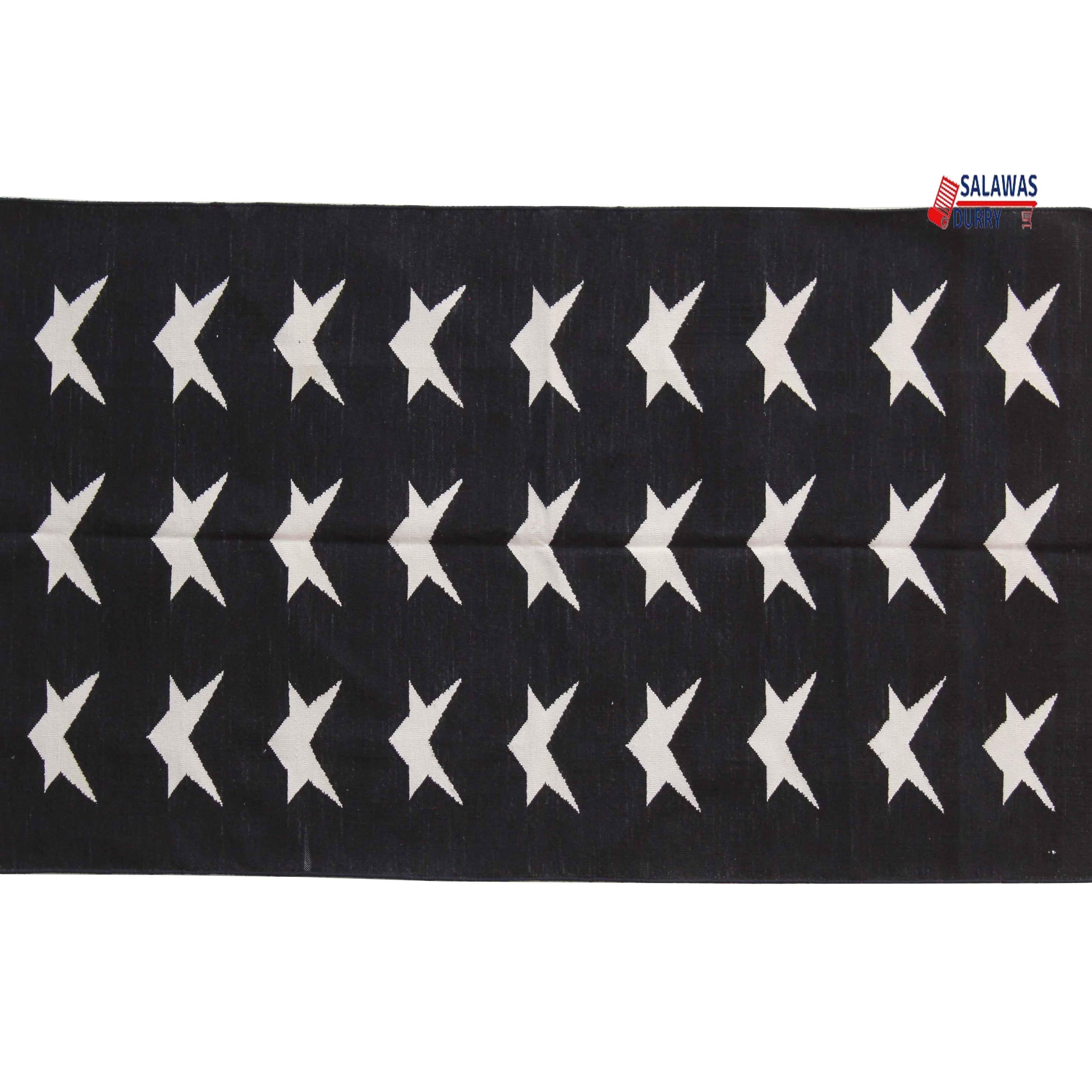 This 3x5 Cotton Black And White Star Rug, handmade, reversible Dhurrie rug kilim. It is expertly hand woven using traditional loom techniques and crafted with strong cotton threads.