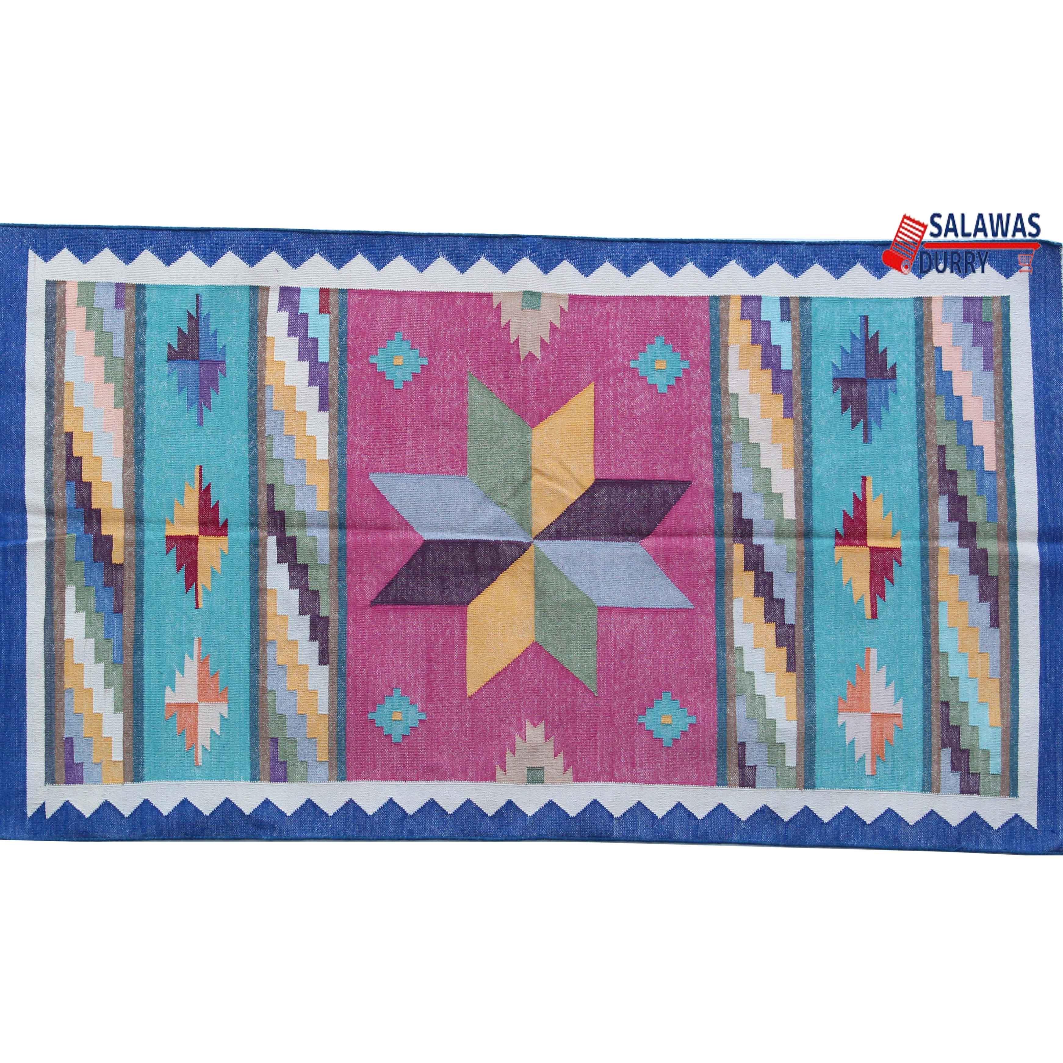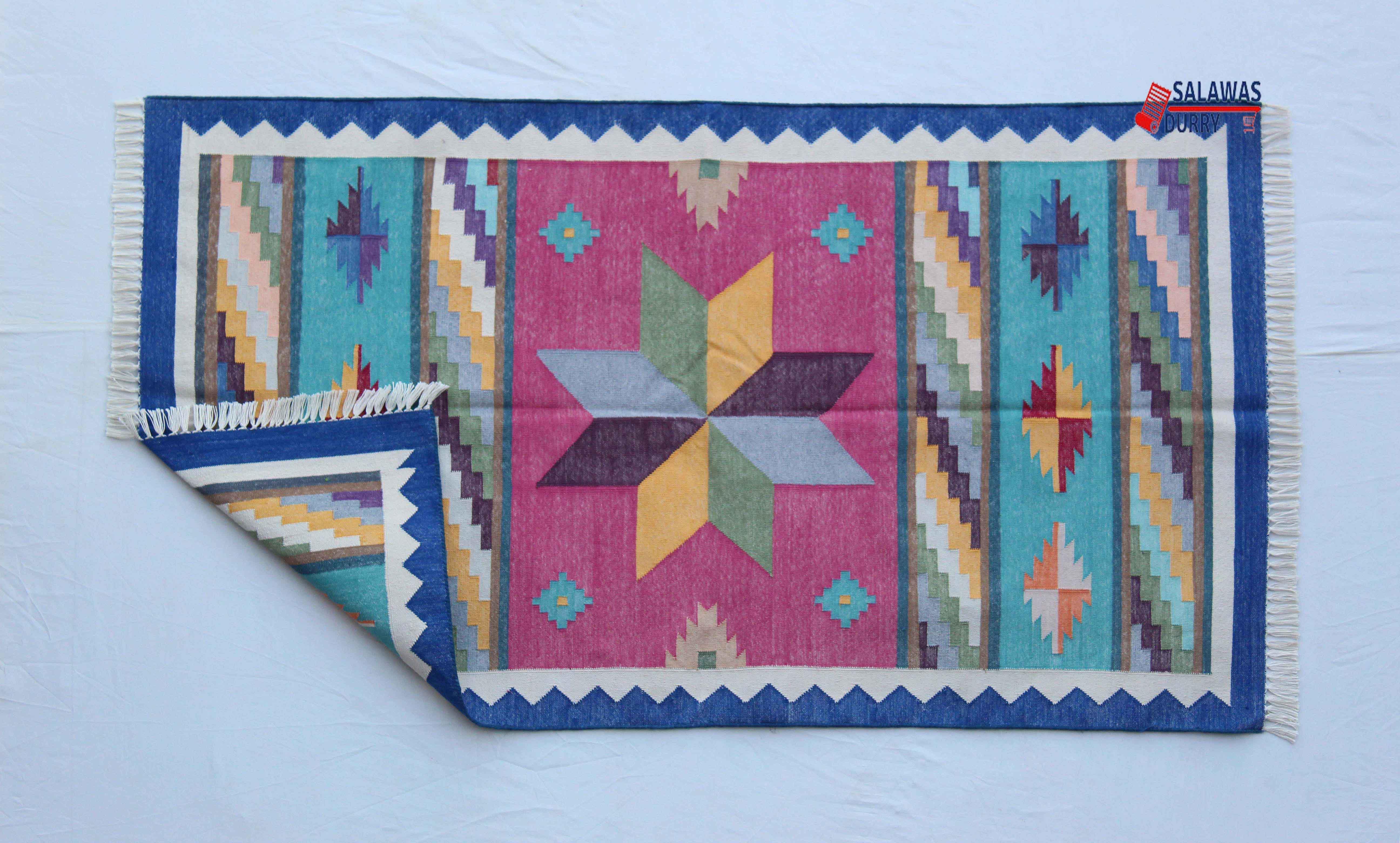 Introducing our 3x5 Cotton Pink Rug! This Star design is handwoven and reversible, created using the traditional Dhurrie Rug Kilim technique. Made with high-quality materials.