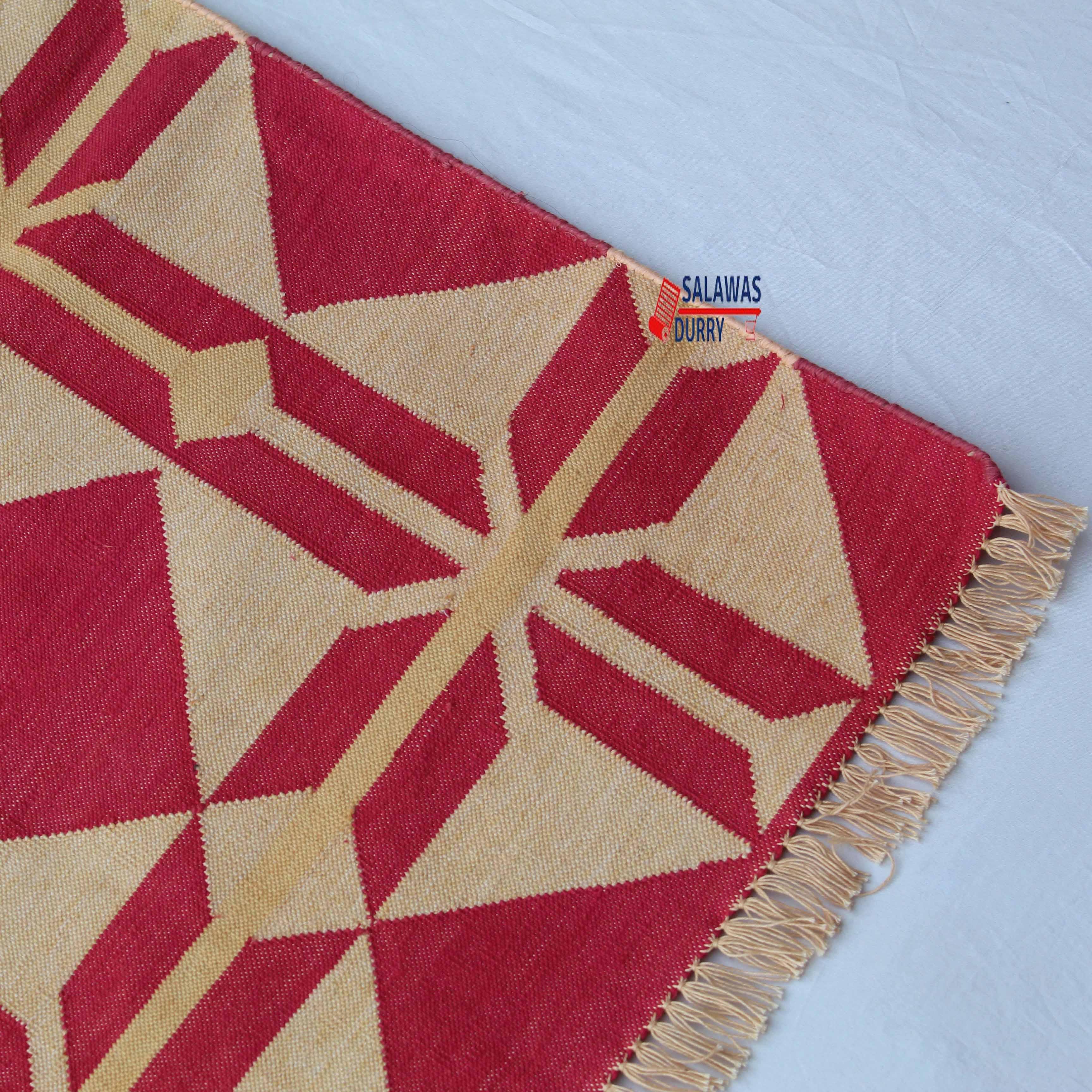 The 4x6 Cotton Dark Pink And Golden Yellow Rug is a premium design handwoven reversible Dhurrie rug kilim. Made from 100% cotton, this rug is carefully crafted using traditional loom techniques. The strong and vibrant Dark Pink And Golden Yellow colors are created using natural dye threads, ensuring a fast and long-lasting color that is completely washable without any color bleeding. The rug is lightweight yet tightly made, making it an excellent choice for floor covering. Its size of 4x6 feet is versatile to fit various spaces.