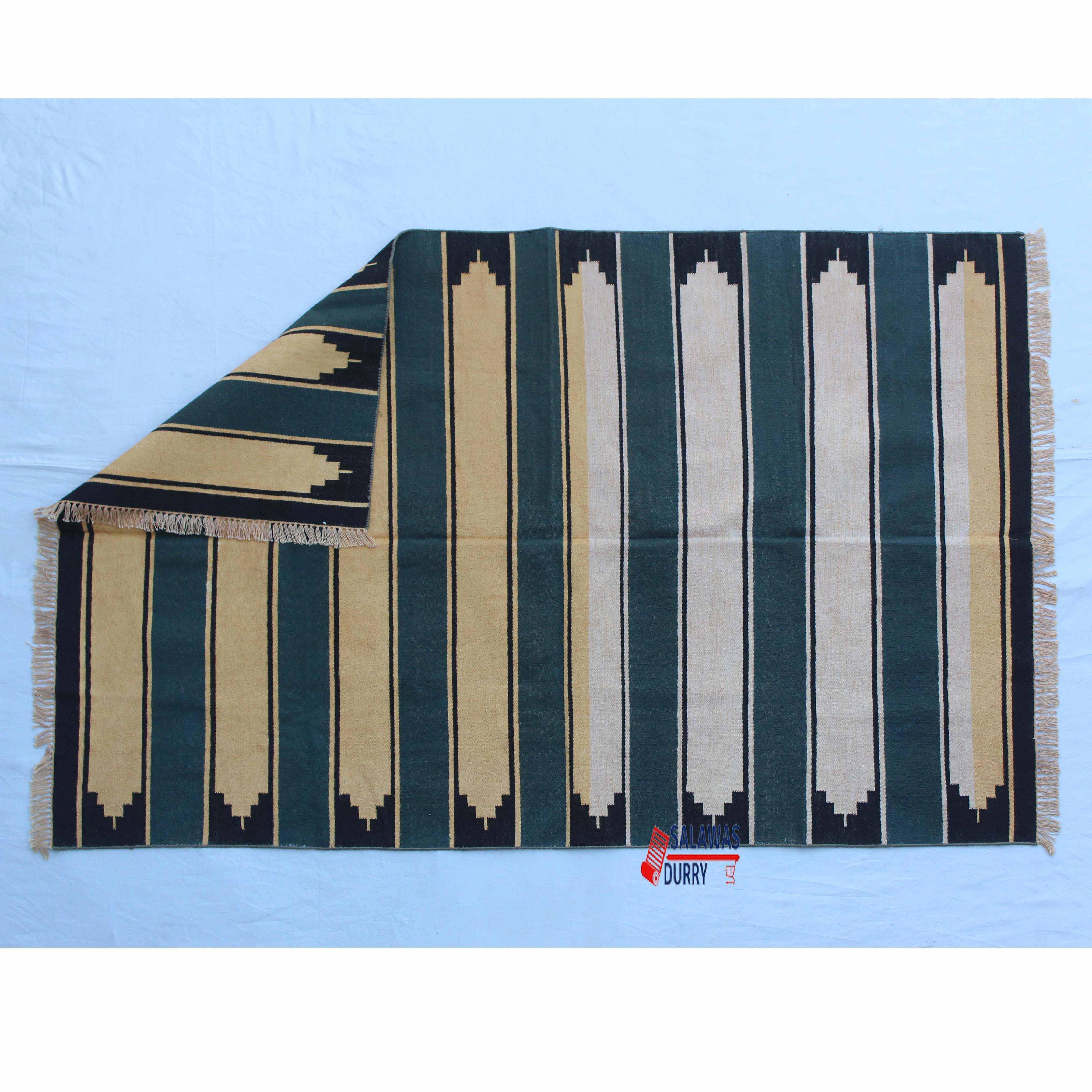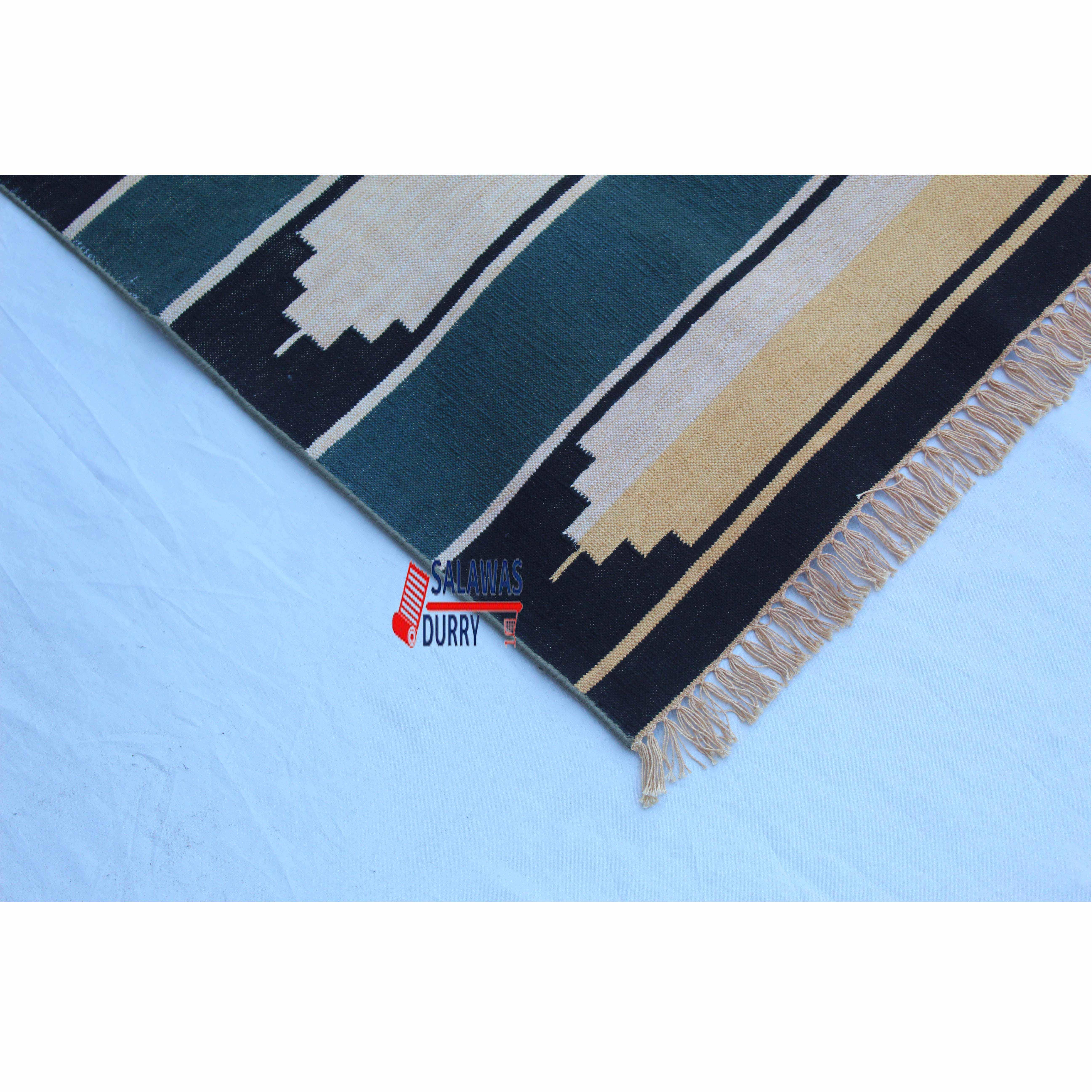 The 4x6 Cotton Indigo Blue And Golden yellow Rug is a premium design handwoven reversible Dhurrie rug kilim. Made from 100% cotton, this rug is carefully crafted using traditional loom techniques. The strong and vibrant Indigo Blue And Golden yellow colors are created using natural dye threads, ensuring a fast and long-lasting color that is completely washable without any color bleeding. The rug is lightweight yet tightly made, making it an excellent choice for floor covering. Its size of 4x6 feet is versatile to fit various spaces.