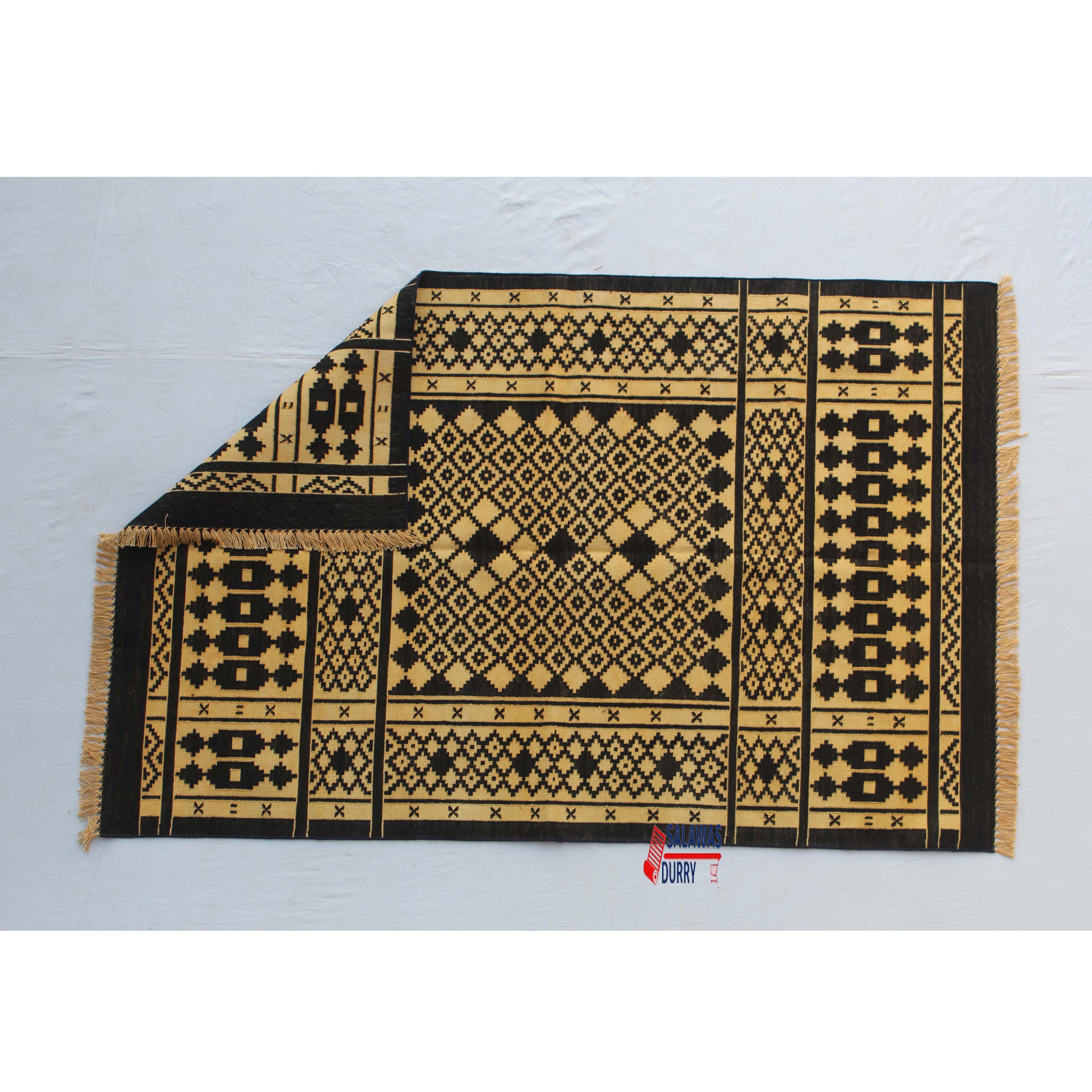 The 4x6 Cotton Black And Golden Yellow Rug is a premium design handwoven reversible Dhurrie rug kilim. Made from 100% cotton, this rug is carefully crafted using traditional loom techniques.
