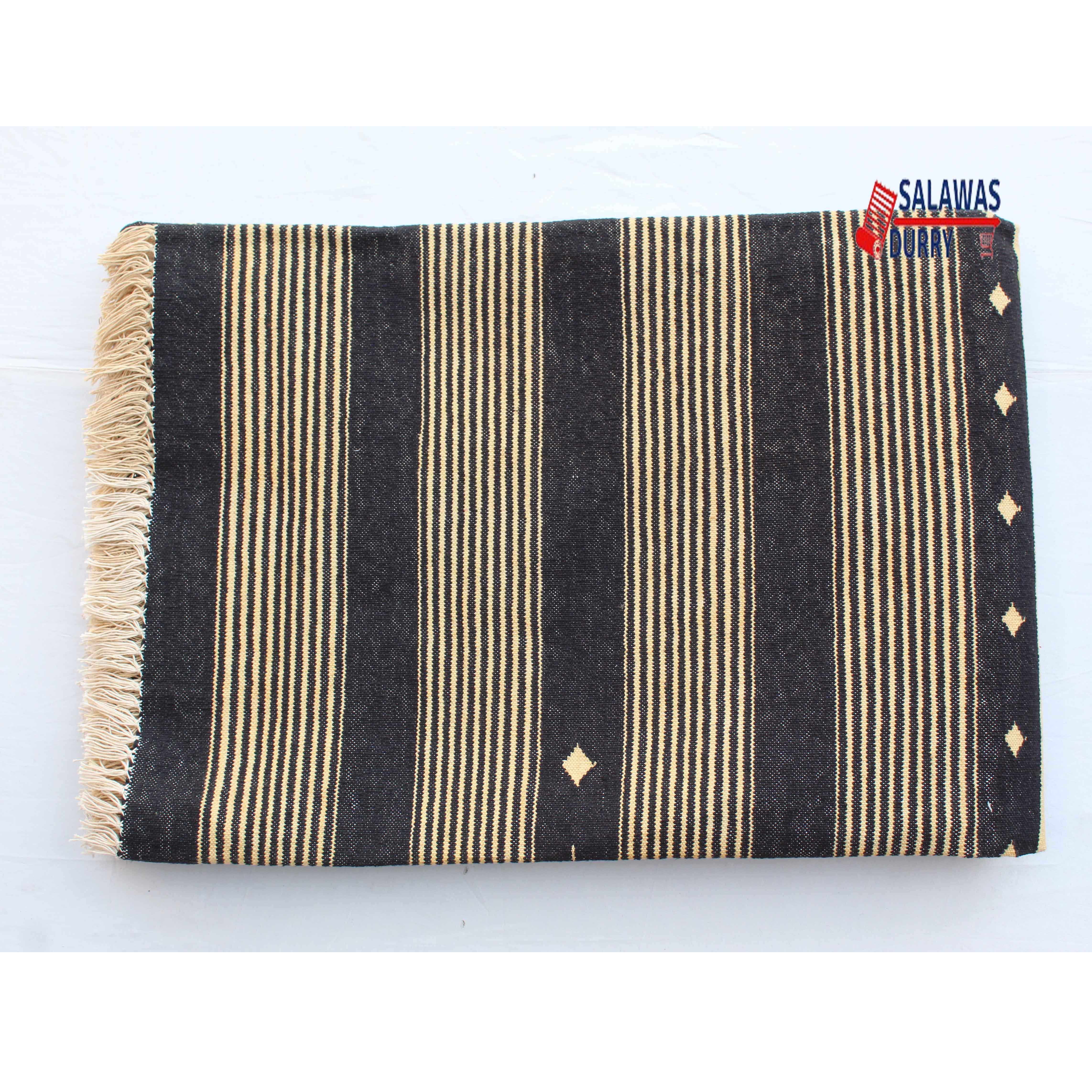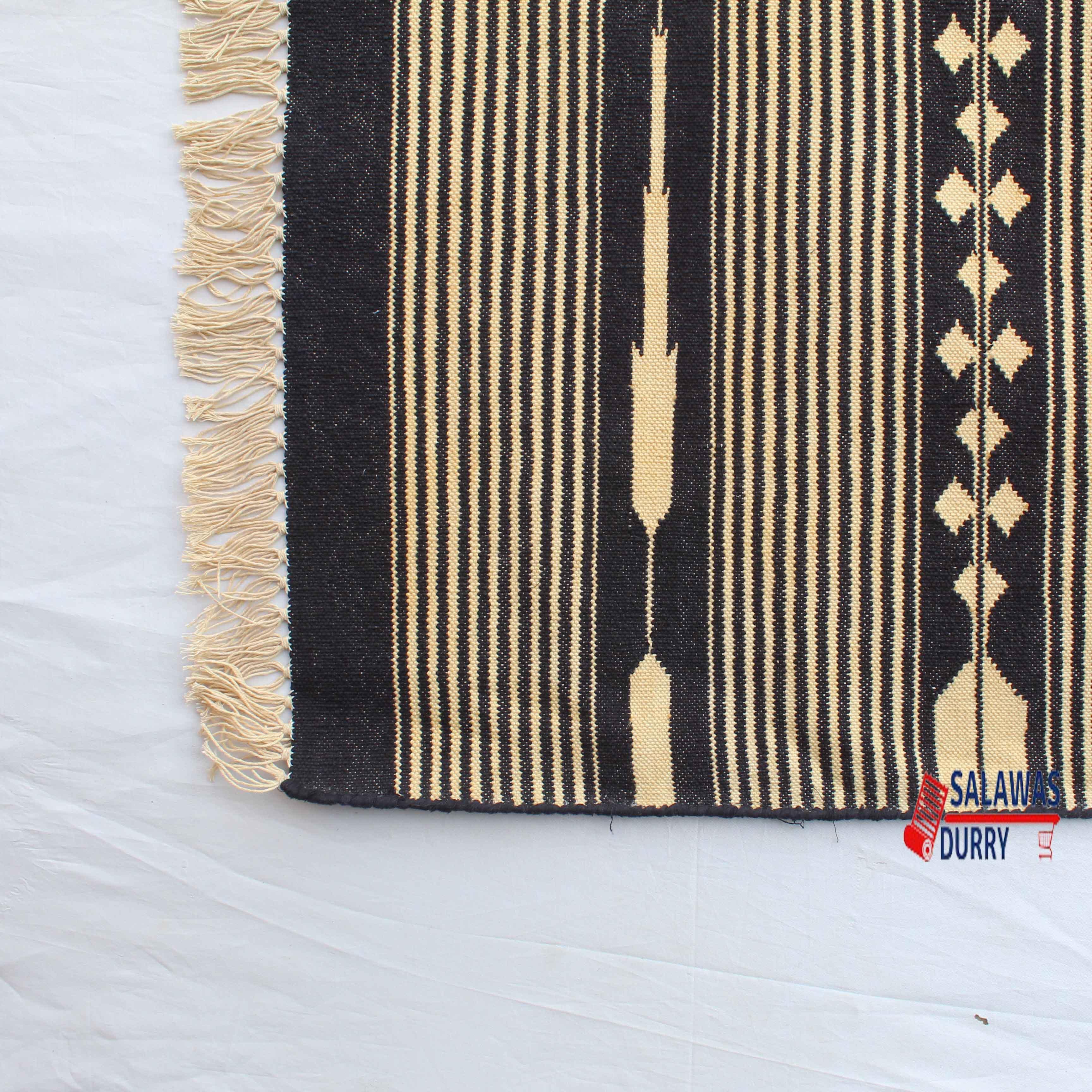 The 6X9 Black Hand Woven Stripes Geometric High Quality Cotton Flatweave Rug is a stunning addition to any space. This rug, handmade in India, is inspired by modern contemporary lifestyles and arts. Measuring 6 feet in width and 9 feet in length, it features a beautiful geometric design that adds a touch of sophistication to the room.
