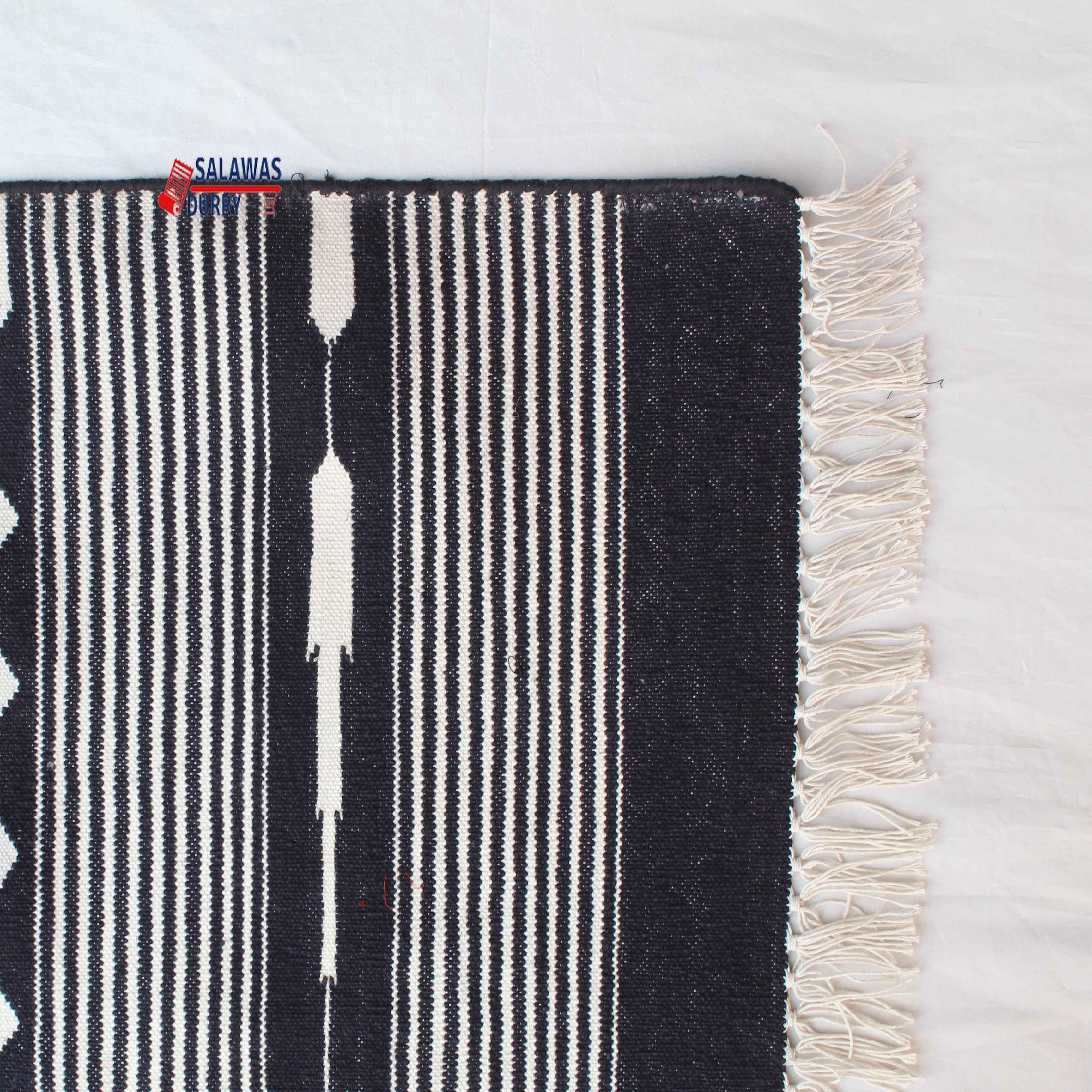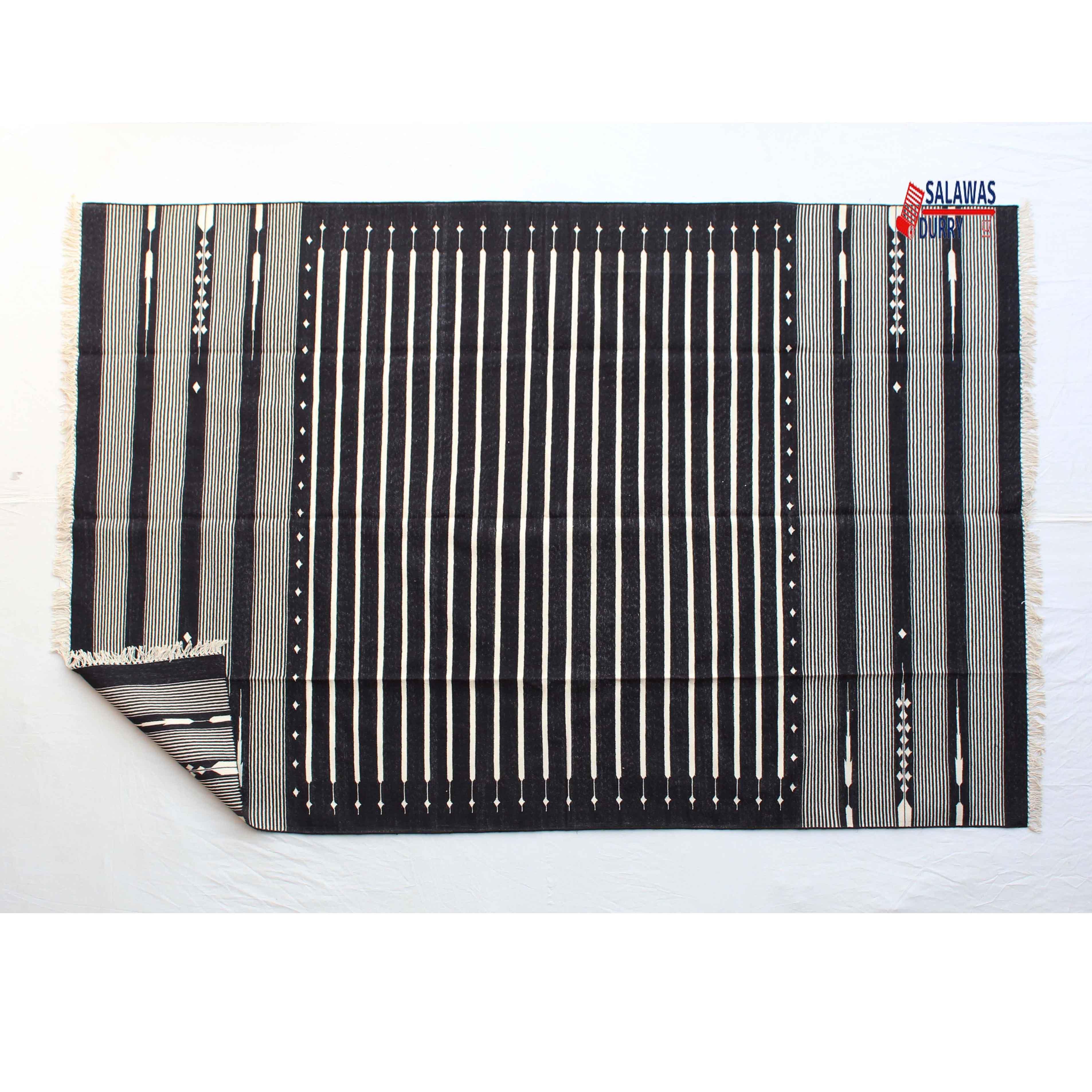 This 6X9 Black Hand Woven Geometric High Quality Cotton Flatweave Rug is ideal for a variety of spaces, including living rooms, bedrooms, and offices. Its versatile design makes it suitable for both modern and traditional interiors.