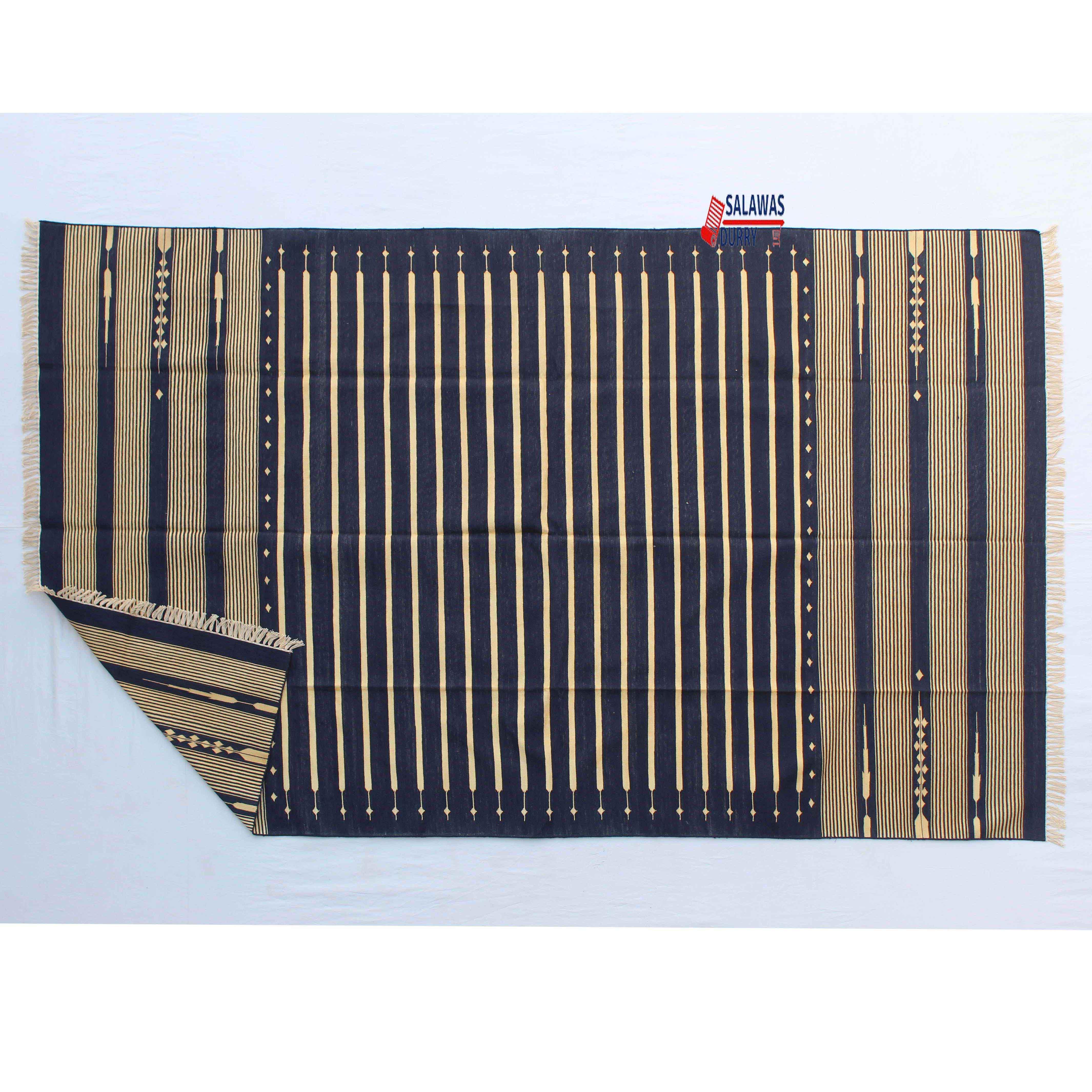 This 6X9 Dark Blue Hand Woven Geometric High Quality Cotton Flatweave Rug is ideal for a variety of spaces, including living rooms, bedrooms, and offices. Its versatile design makes it suitable for both modern and traditional interiors.