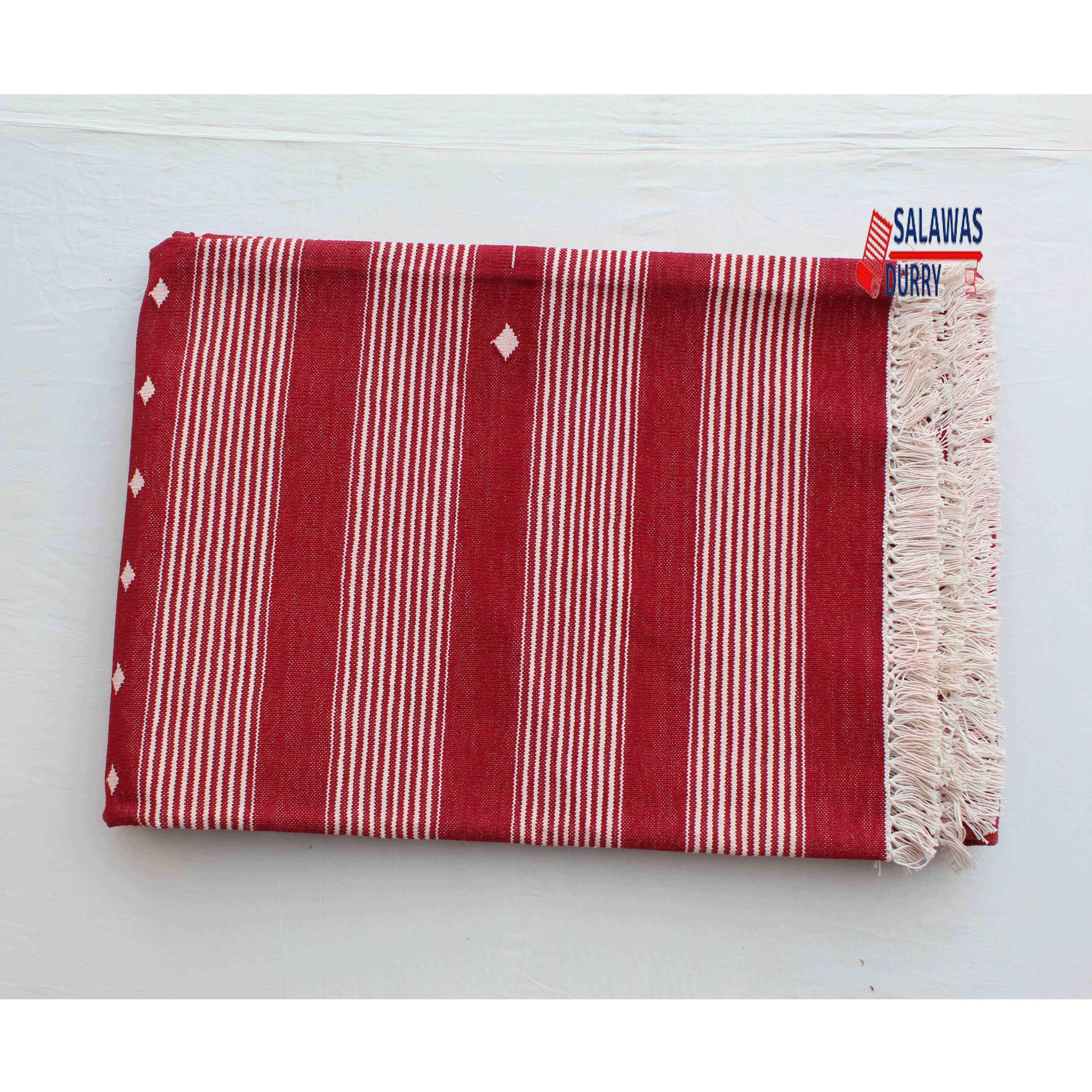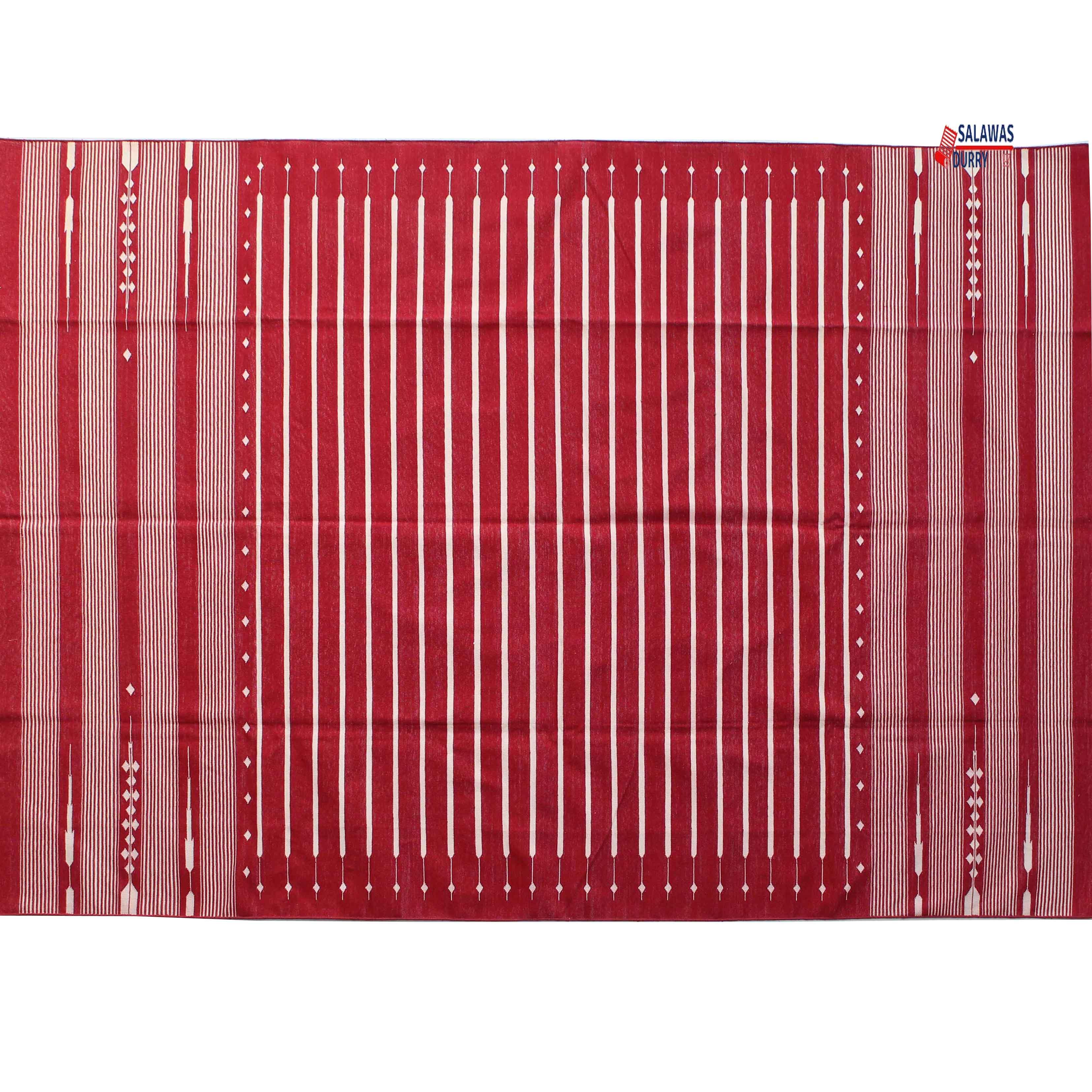 The 6X9 Red Hand Woven Stripes Geometric High Quality Cotton Flatweave Rug is a stunning addition to any space. This rug, handmade in India, is inspired by modern contemporary lifestyles and arts. Measuring 6 feet in width and 9 feet in length, it features a beautiful geometric design that adds a touch of sophistication to the room.