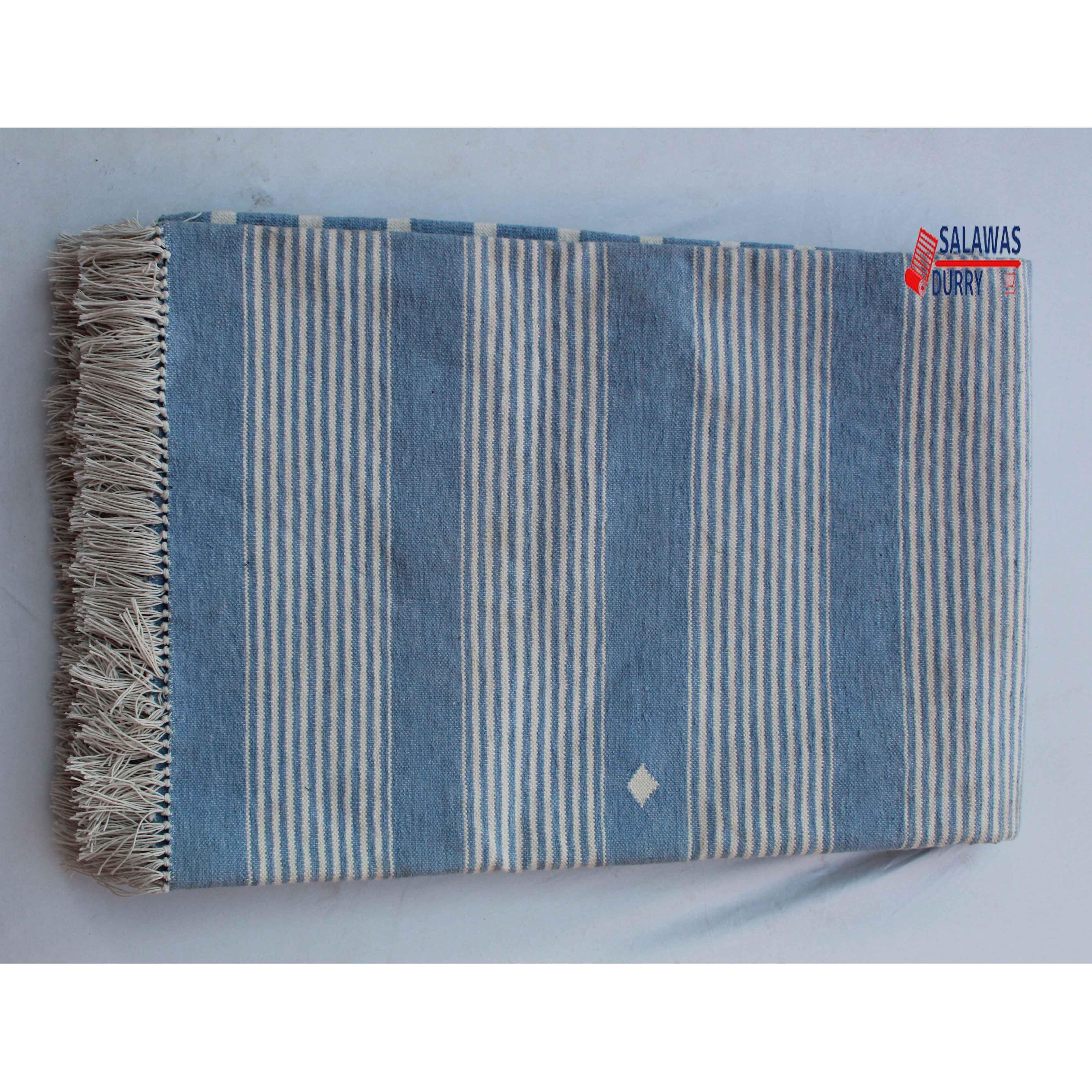 The 6X9 Sky Blue Hand Woven Stripes Geometric High Quality Cotton Flatweave Rug is a stunning addition to any space. This rug, handmade in India, is inspired by modern contemporary lifestyles and arts. Measuring 6 feet in width and 9 feet in length, it features a beautiful geometric design that adds a touch of sophistication to the room.