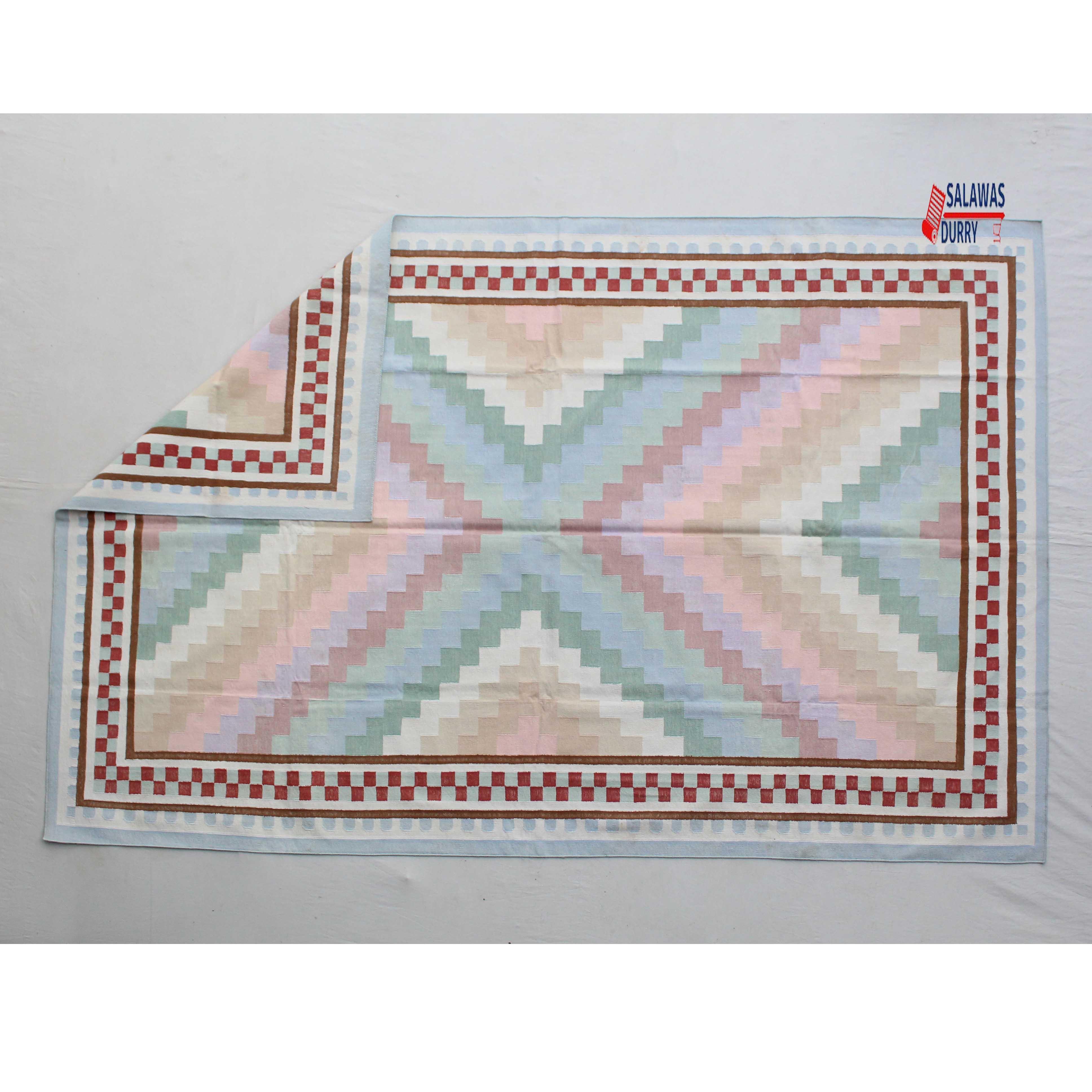 Introducing our exquisite 6x9 Light Cotton Handmade Zig Zag Design Rug, a stunning addition to any home decor. This beautiful rug features a flat weave and is hand woven with precision using traditional loom techniques. It is crafted from strong cotton threads, ensuring durability and longevity.