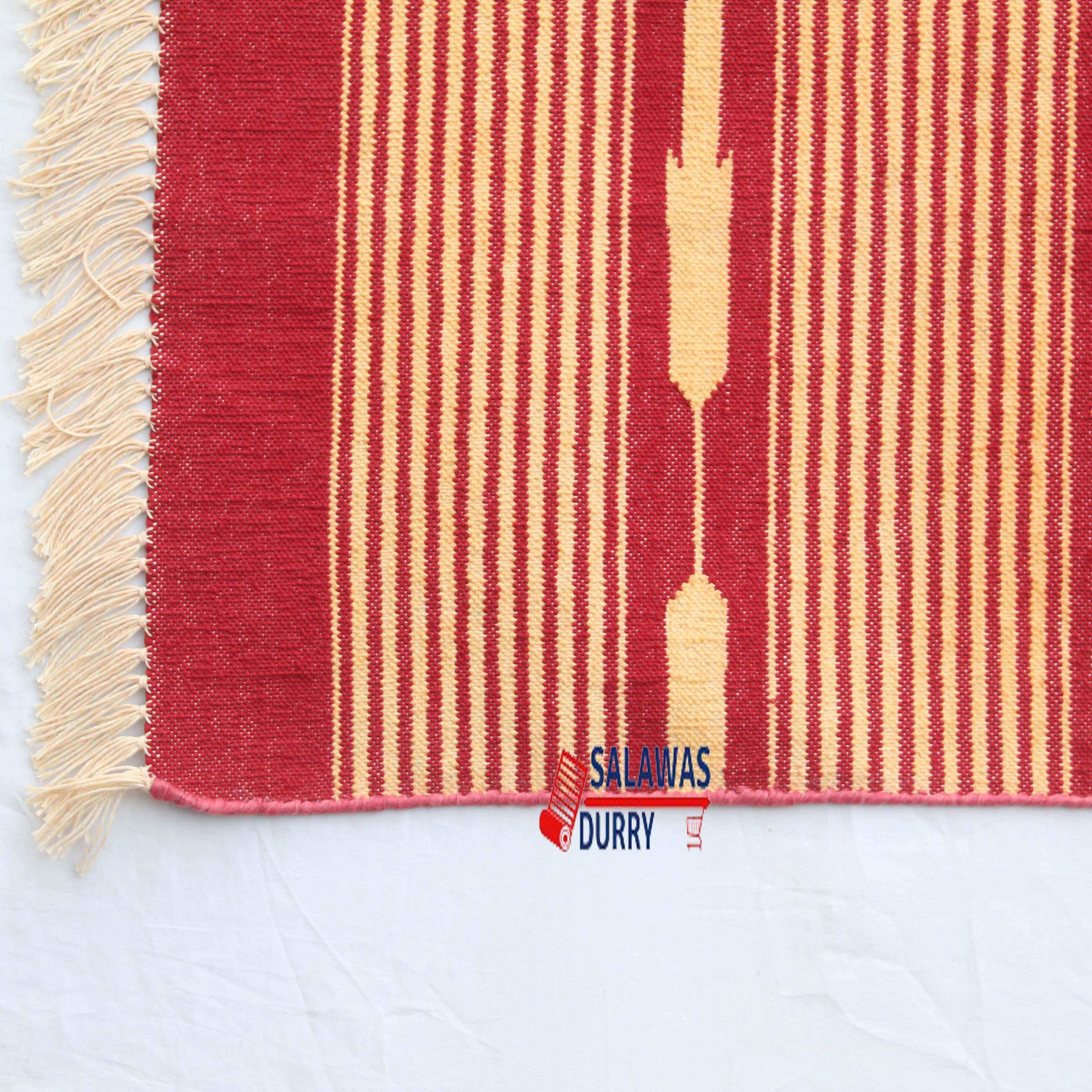 The 6X9 Red Hand Woven Stripes Geometric High Quality Cotton Flatweave Rug is a stunning addition to any space. This rug, handmade in India, is inspired by modern contemporary lifestyles and arts. Measuring 6 feet in width and 9 feet in length, it features a beautiful geometric design that adds a touch of sophistication to the room.