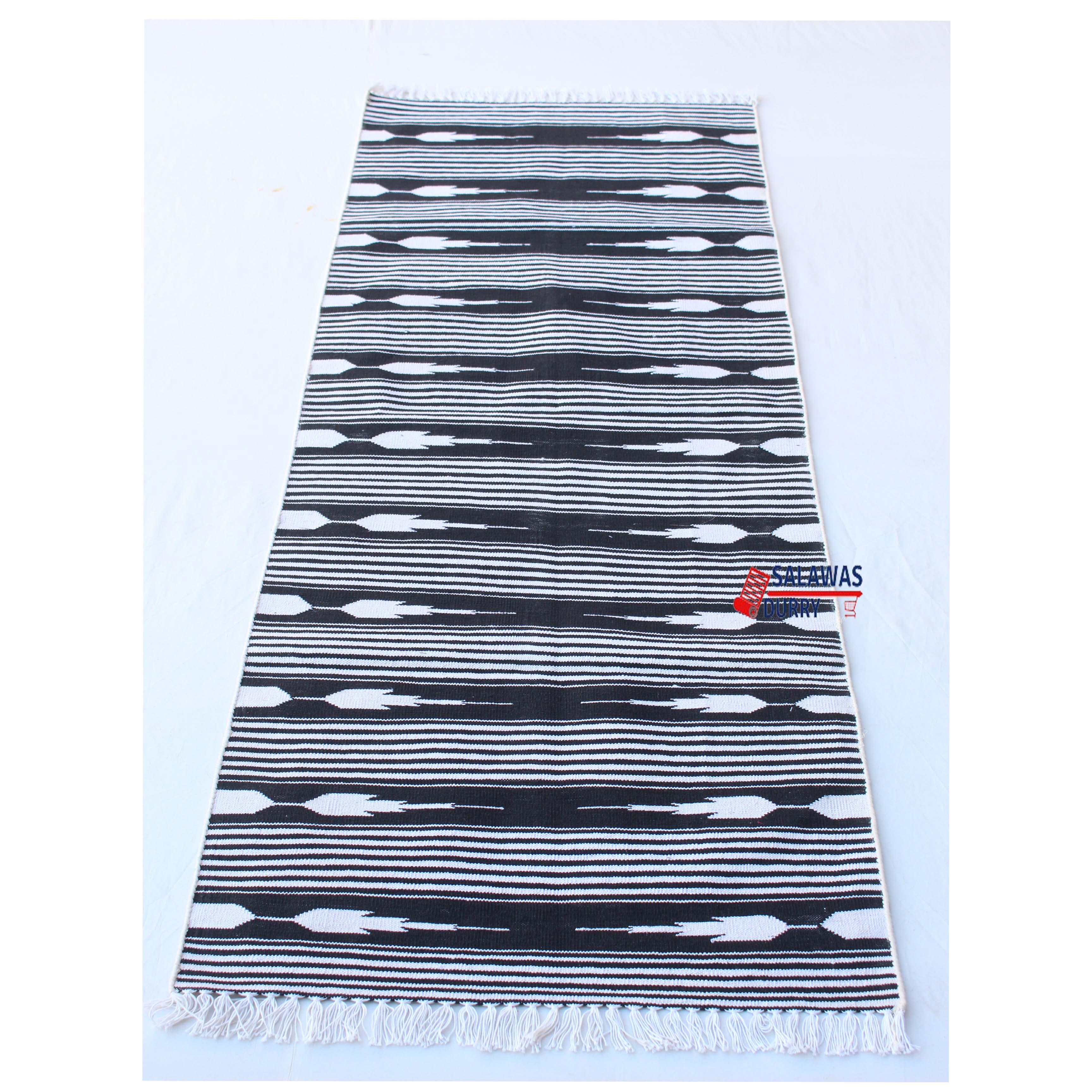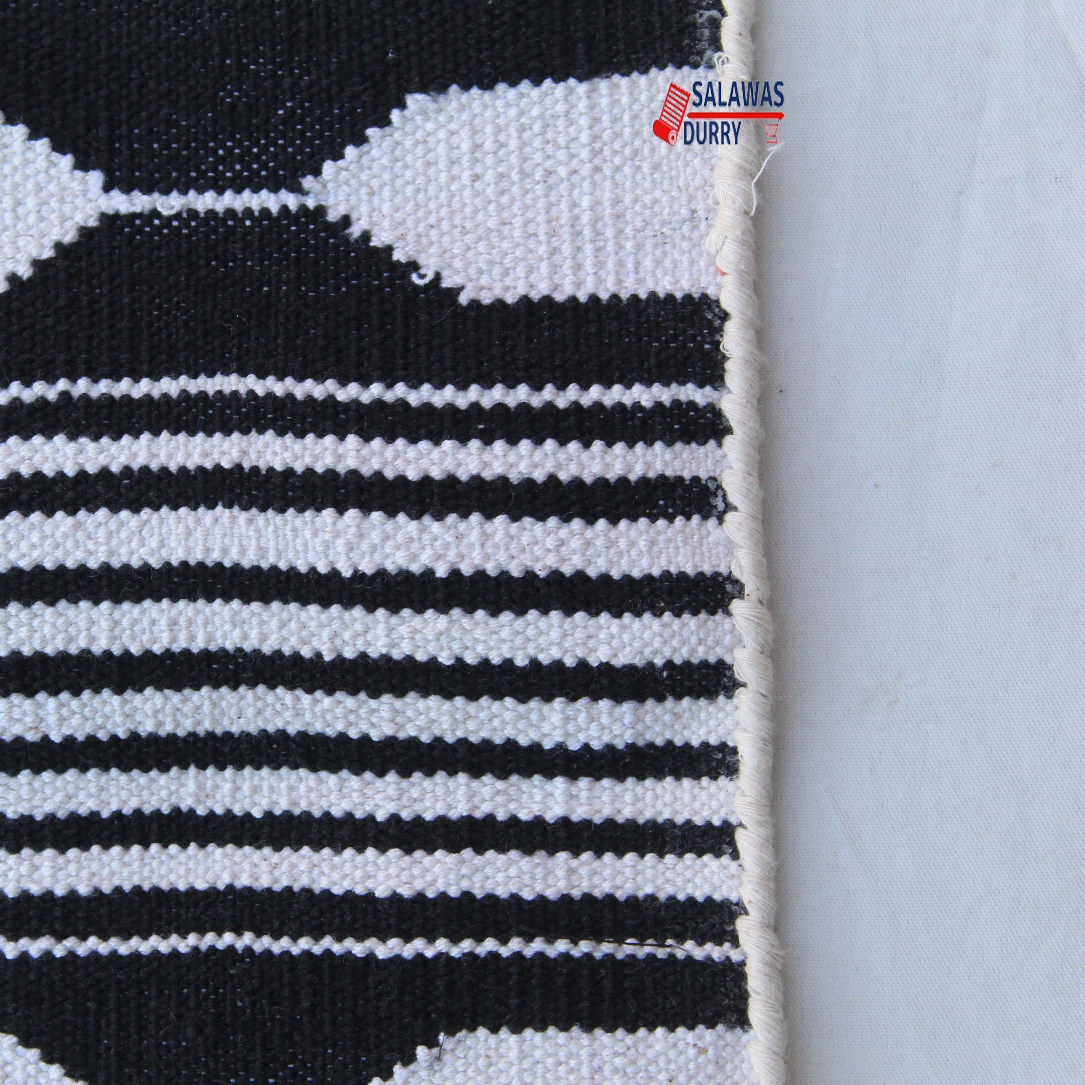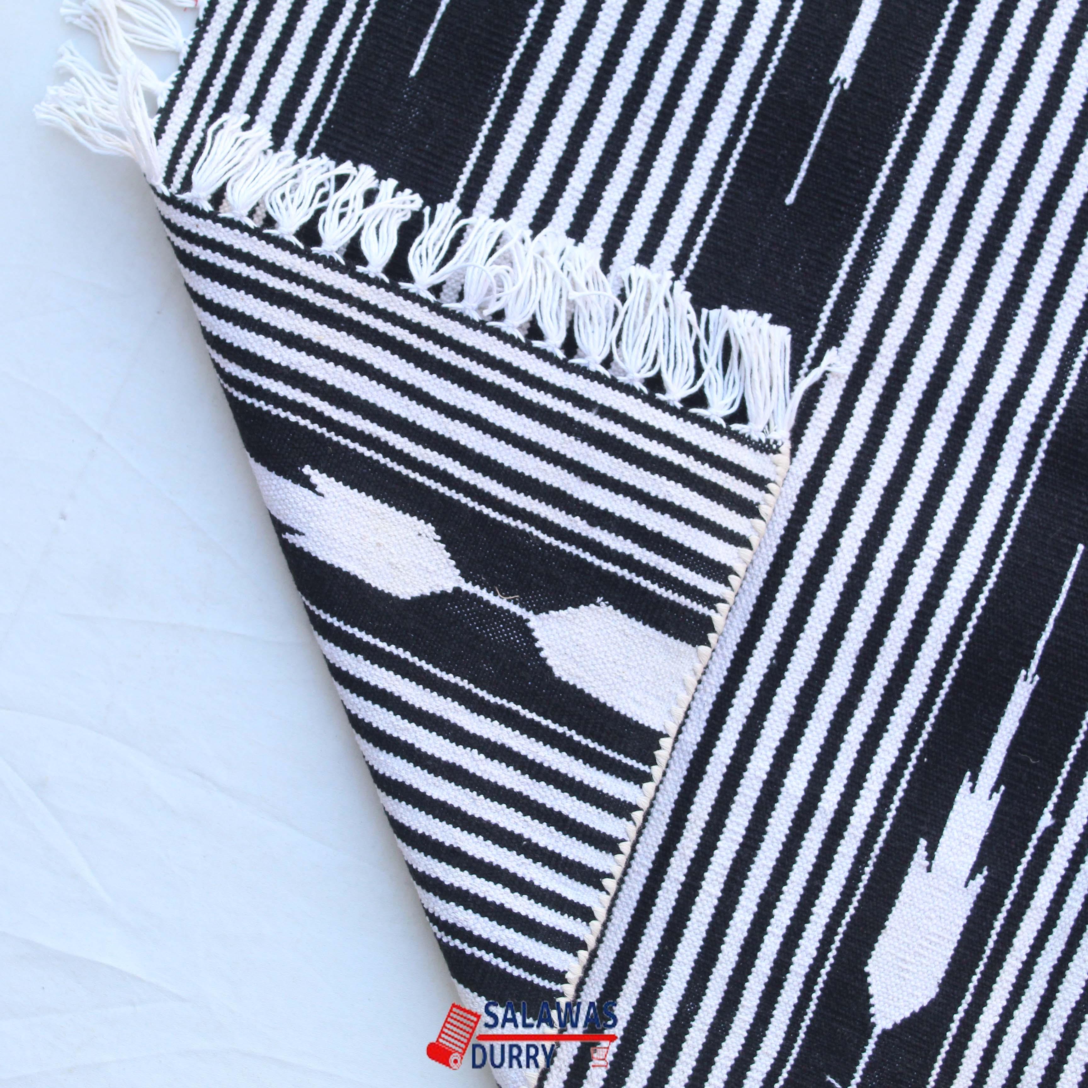 Introducing our exquisite Multiple Sizes Cotton Black And off White Modern Stripes Handwoven Runner Rug! This reversible runner kilim rug is skillfully handcrafted, making it a unique and eye-catching addition to your home decor. Made from premium quality cotton materials, this runner rug offers both durability and comfort.