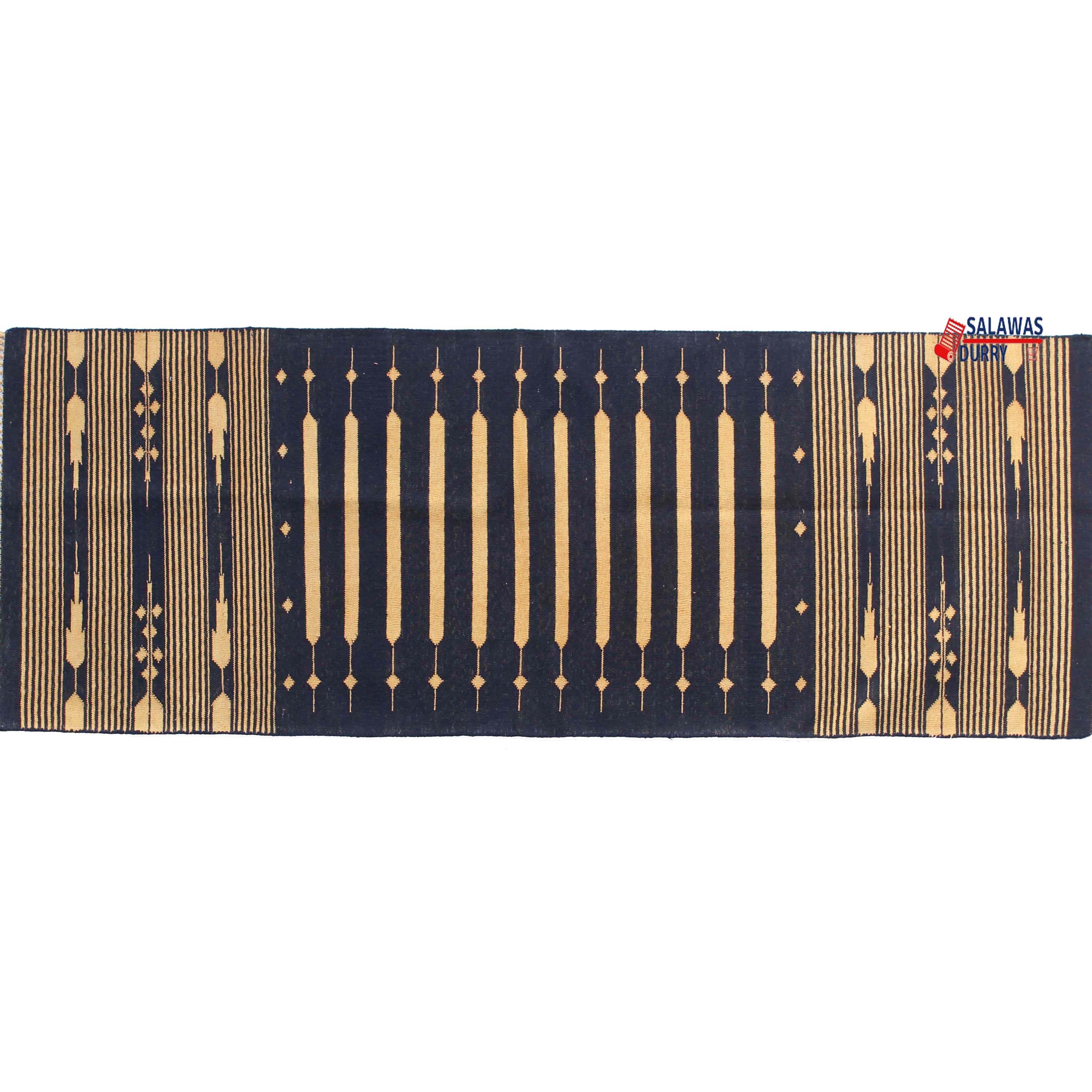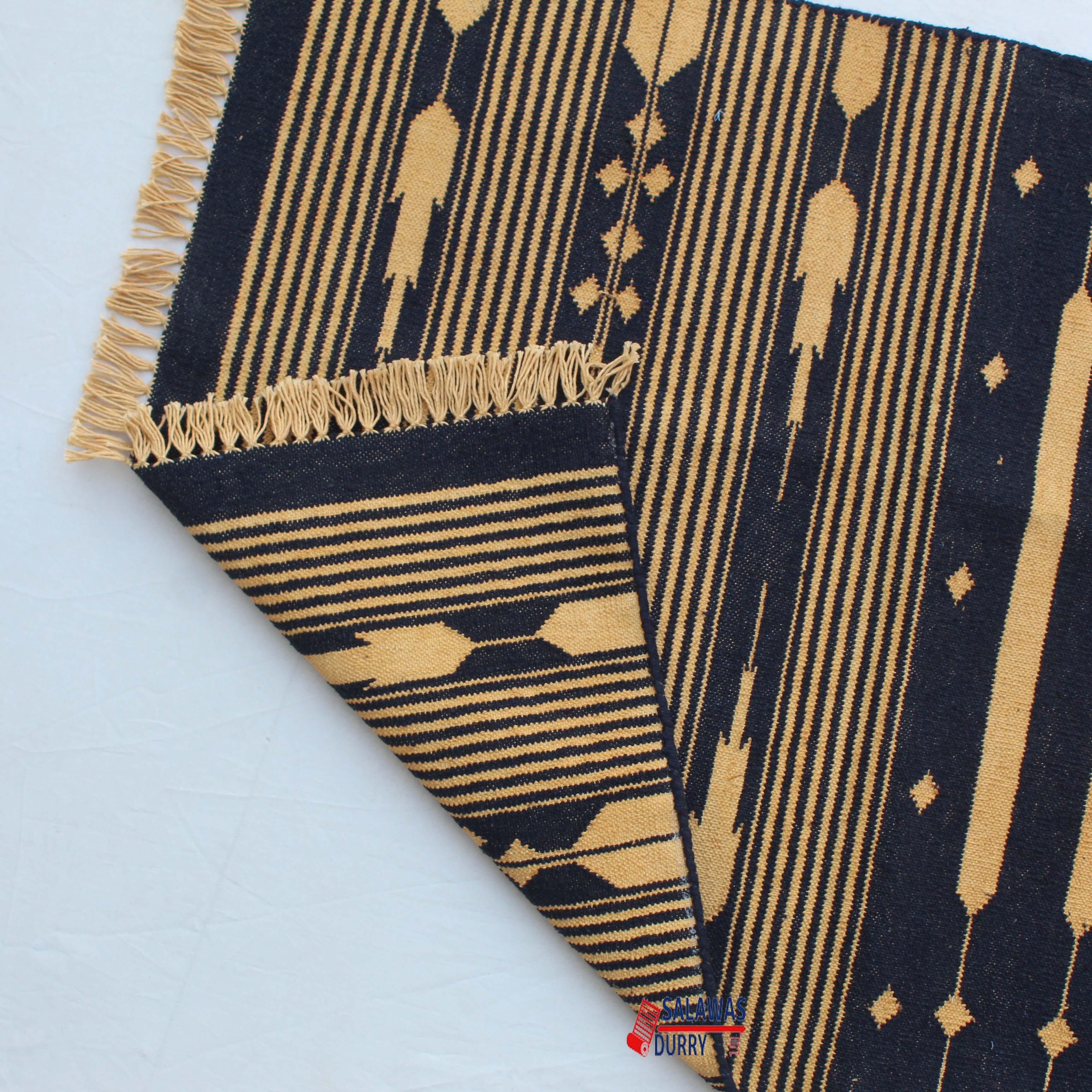 Introducing our exquisite Multiple Sizes Cotton Dark Blue And Golden Yellow Modern Stripes Handwoven Runner Rug! This reversible runner kilim rug is skillfully handcrafted, making it a unique and eye-catching addition to your home decor. Made from premium quality cotton materials, this runner rug offers both durability and comfort.