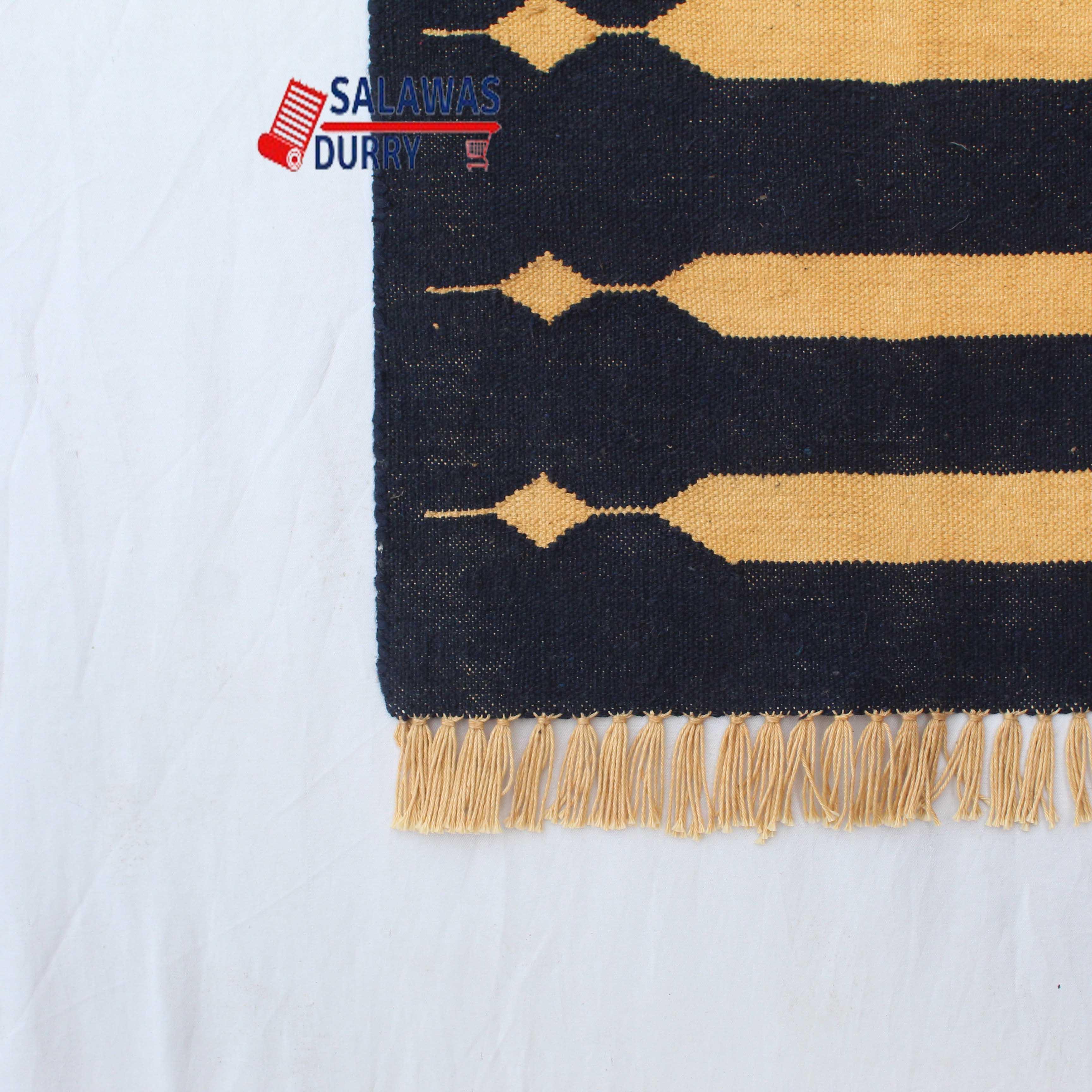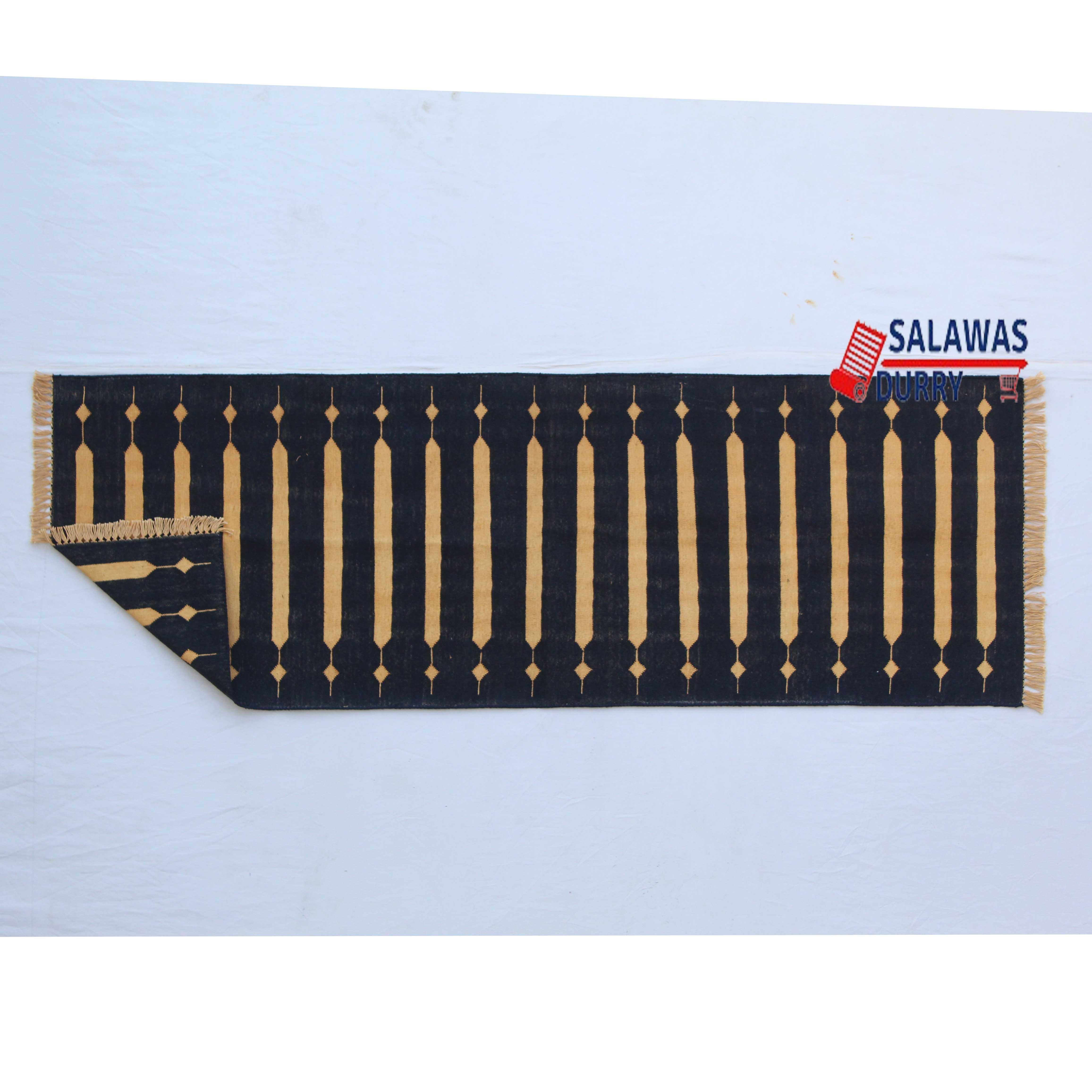 Introducing our exquisite Multiple Sizes Cotton Black And Golden Yellow Modern Stripes Handwoven Runner Rug! This reversible runner kilim rug is skillfully handcrafted, making it a unique and eye-catching addition to your home decor. Made from premium quality cotton materials, this runner rug offers both durability and comfort.