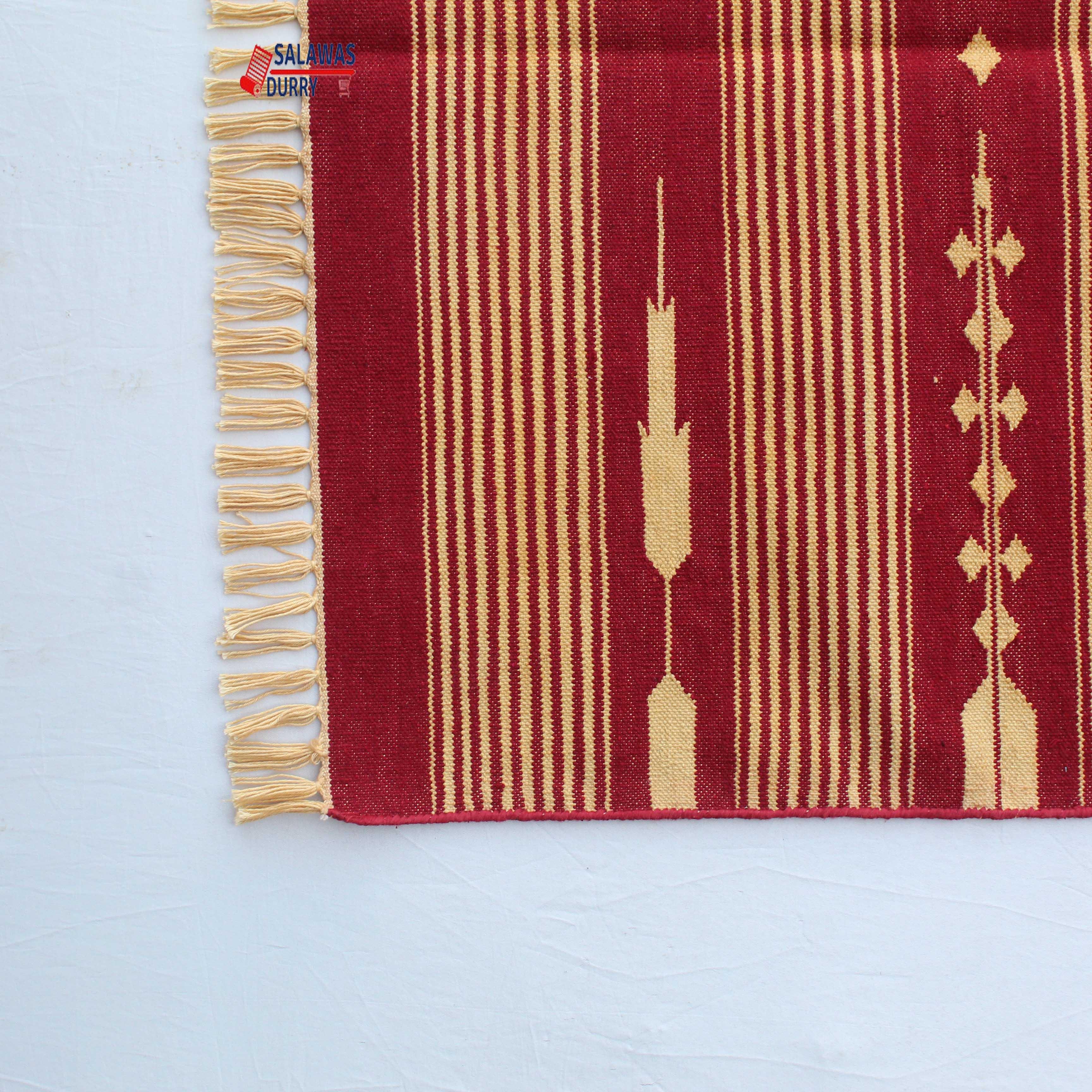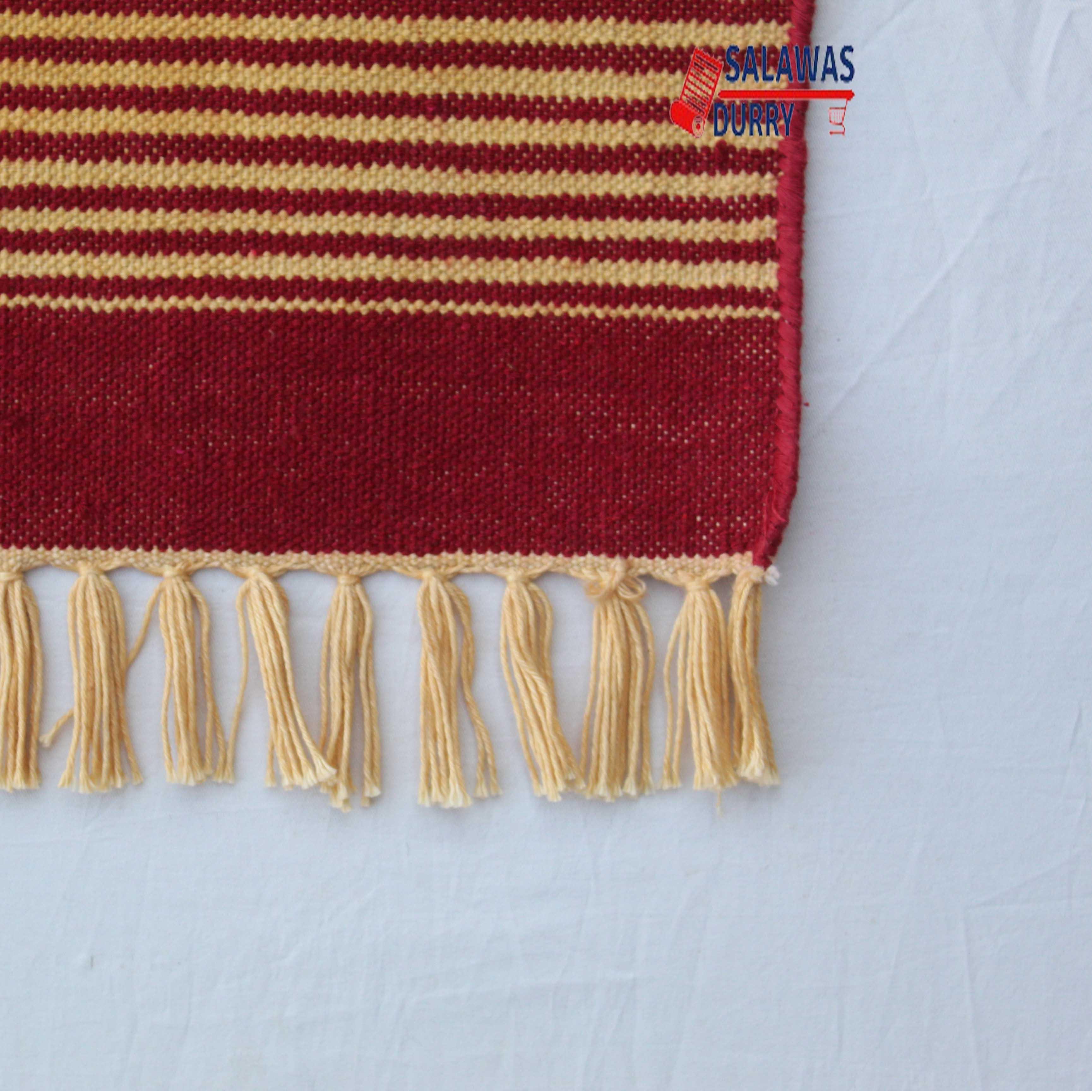 The rug features a striking combination of Red and Golden Yellow stripes, adding a modern and contemporary touch to any space. The use of strong color and strong cotton threads ensures that the rug is vibrant and long-lasting. Thanks to the use of natural dye threads, the colors are fade-resistant and completely washable, allowing for easy maintenance and care.