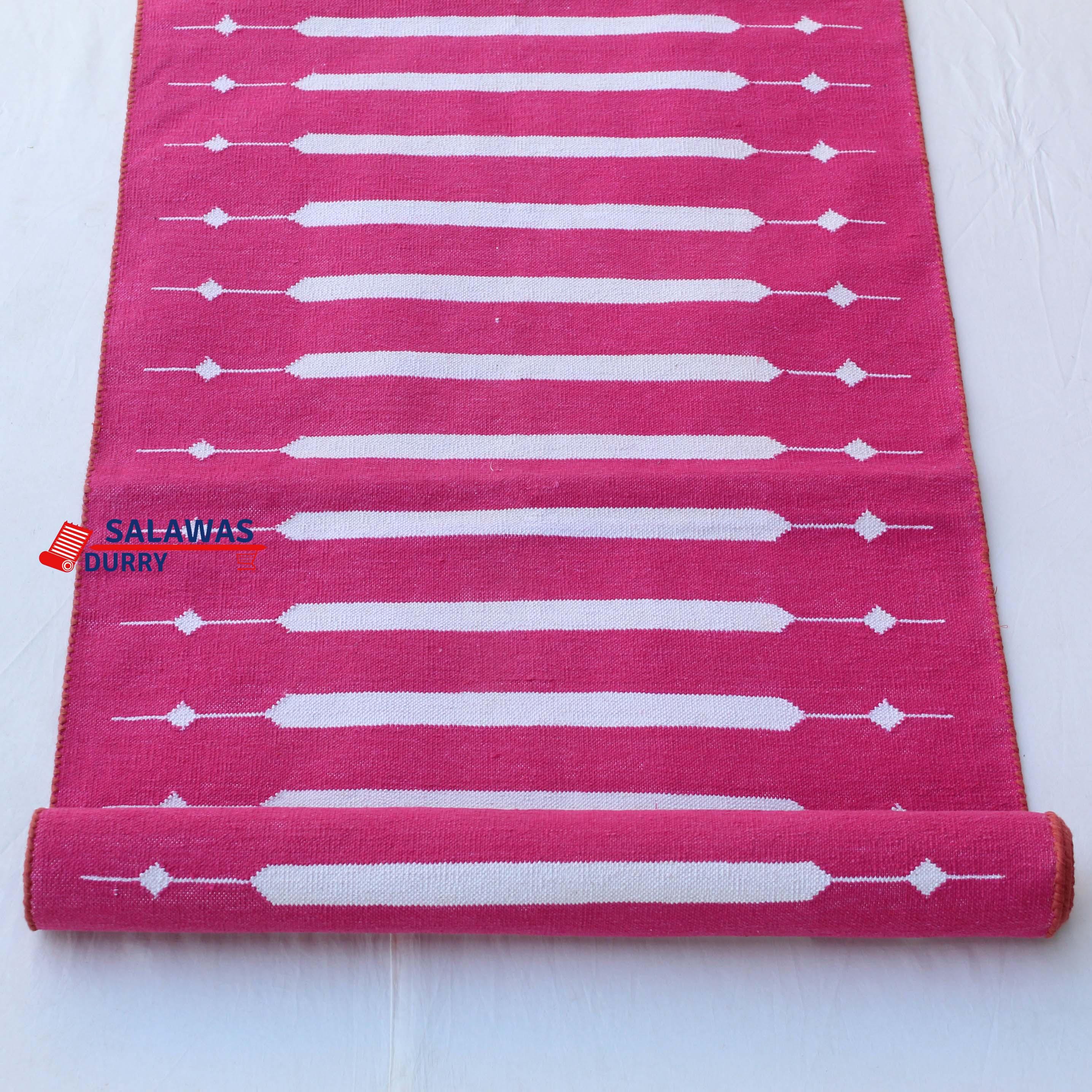 Introducing our exquisite Multiple Sizes Cotton Pink And White Modern Stripes Handwoven Runner Rug! This reversible runner kilim rug is skillfully handcrafted, making it a unique and eye-catching addition to your home decor. Made from premium quality cotton materials, this runner rug offers both durability and comfort.