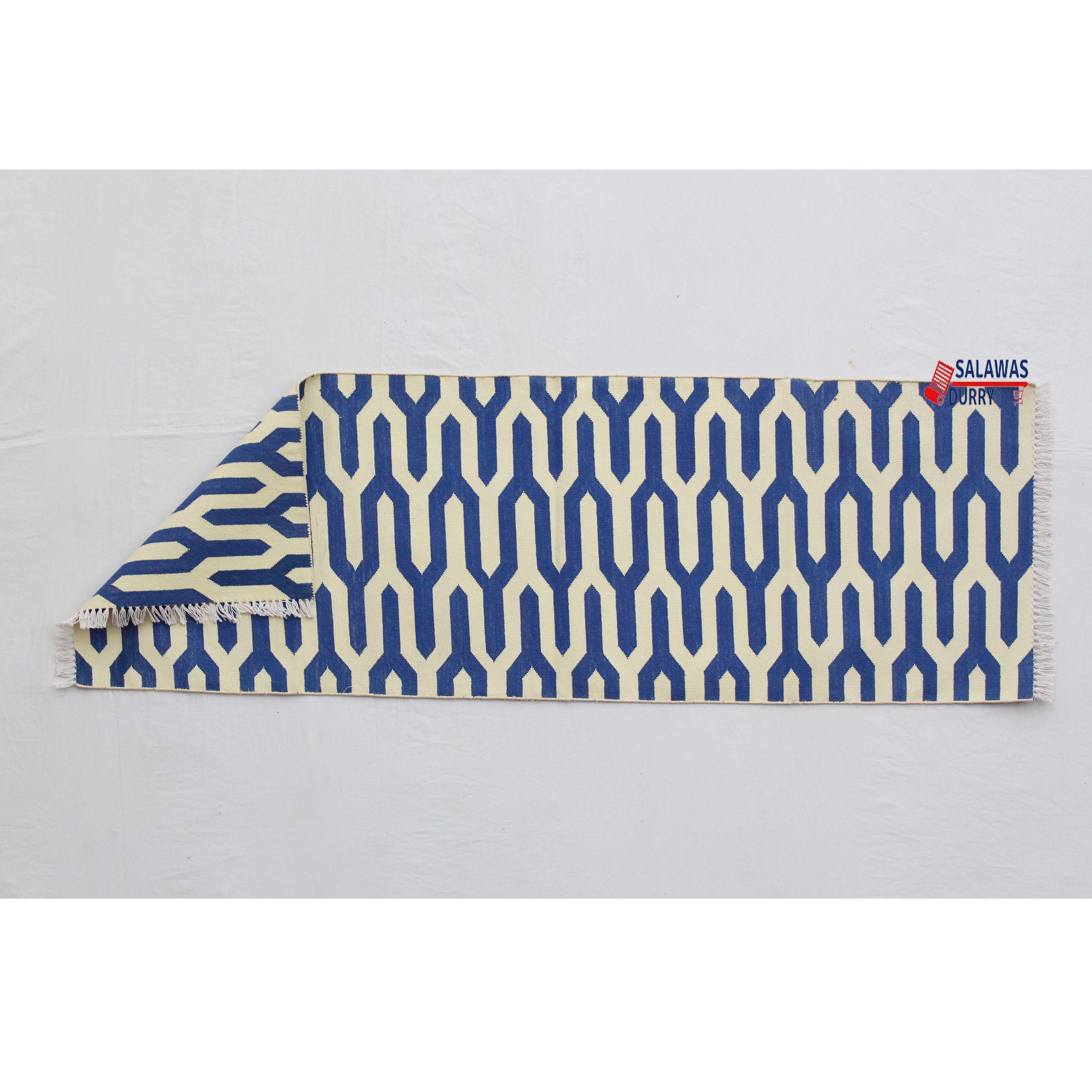 Introducing our exquisite 2x6 Cotton Hand Woven Rug Dhurrie, a stunning rug runner that will add a touch of elegance and color to any space. This beautiful rug is meticulously hand woven using a traditional loom, ensuring its authenticity and craftsmanship. Made from strong cotton threads, this rug boasts vibrant and long-lasting colors thanks to the use of natural dye threads. The natural dye colors are completely washable, guaranteeing that the rug will maintain its vibrant hues even after multiple washes.