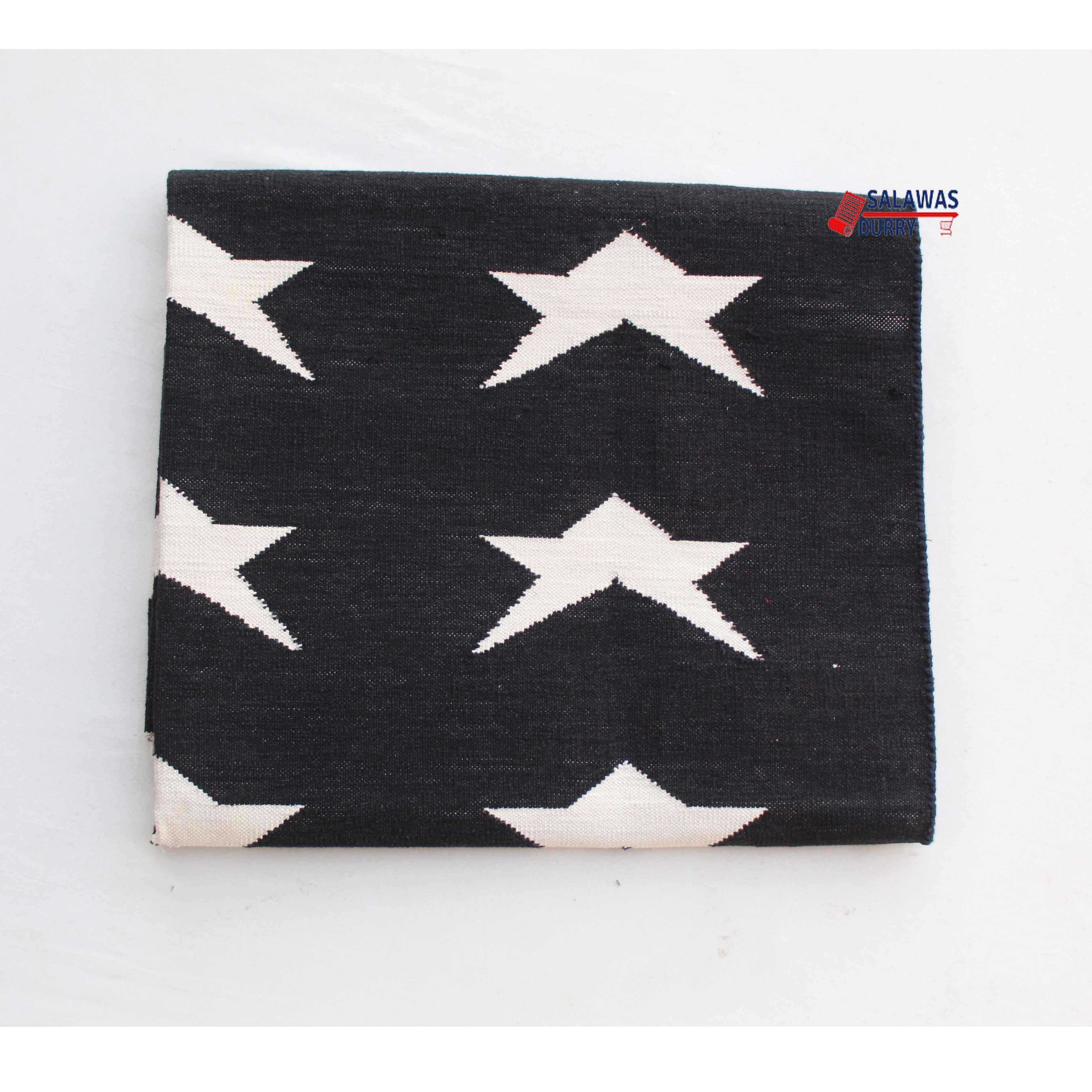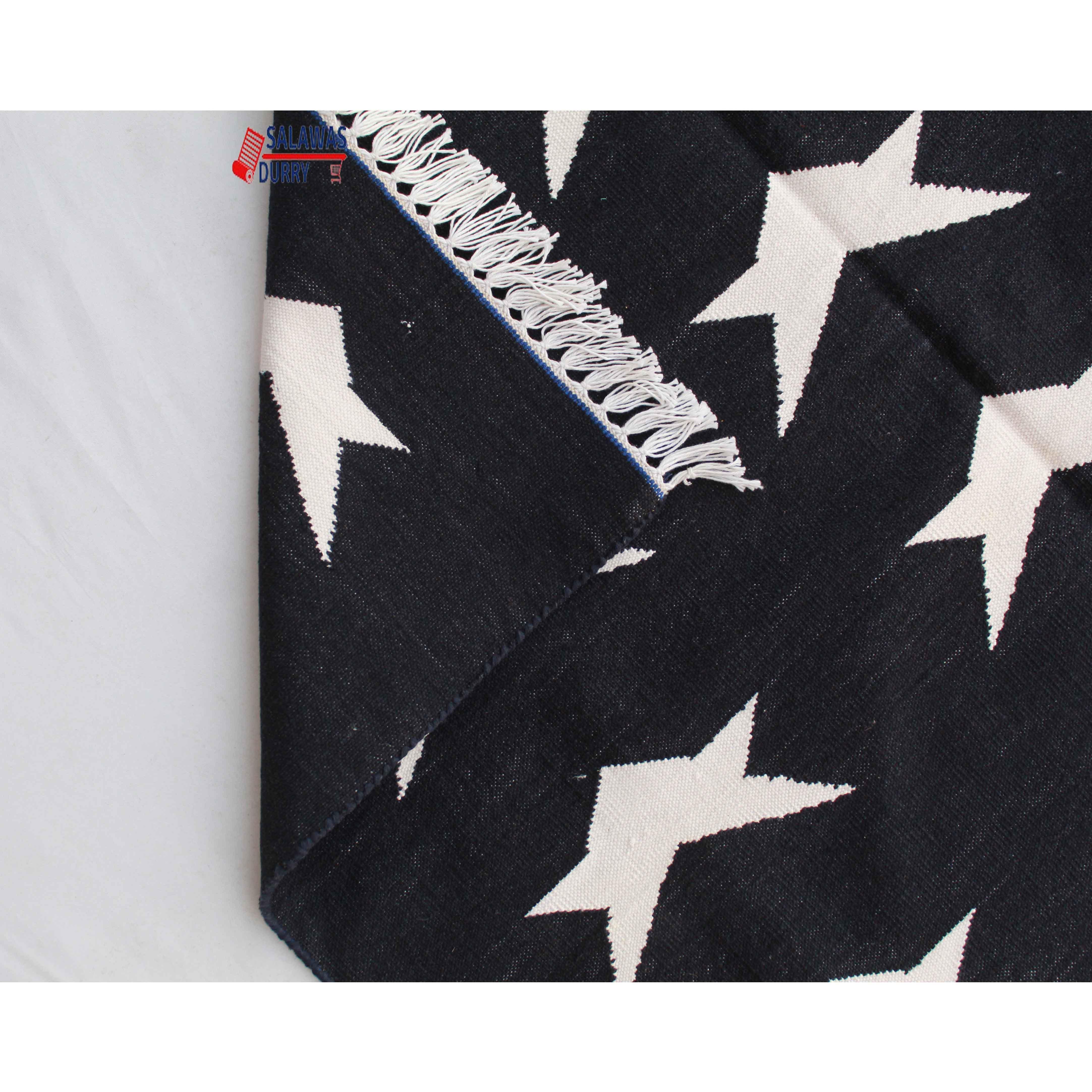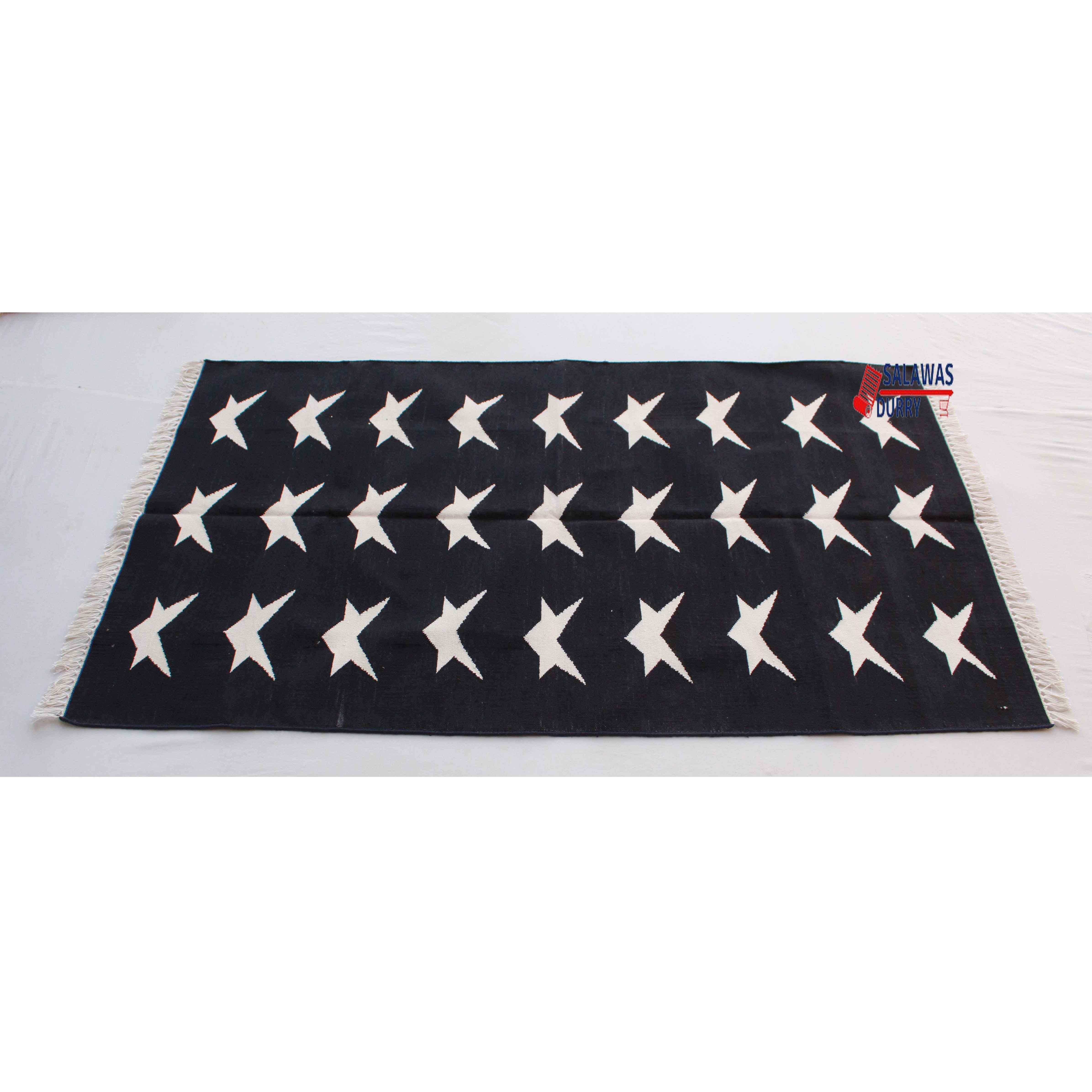 This 3x5 Cotton Black And White Star Rug, handmade, reversible Dhurrie rug kilim. It is expertly hand woven using traditional loom techniques and crafted with strong cotton threads. The rug features vibrant and long-lasting colors, thanks to the use of natural dye threads. You can easily wash this rug without worrying about the colors fading.