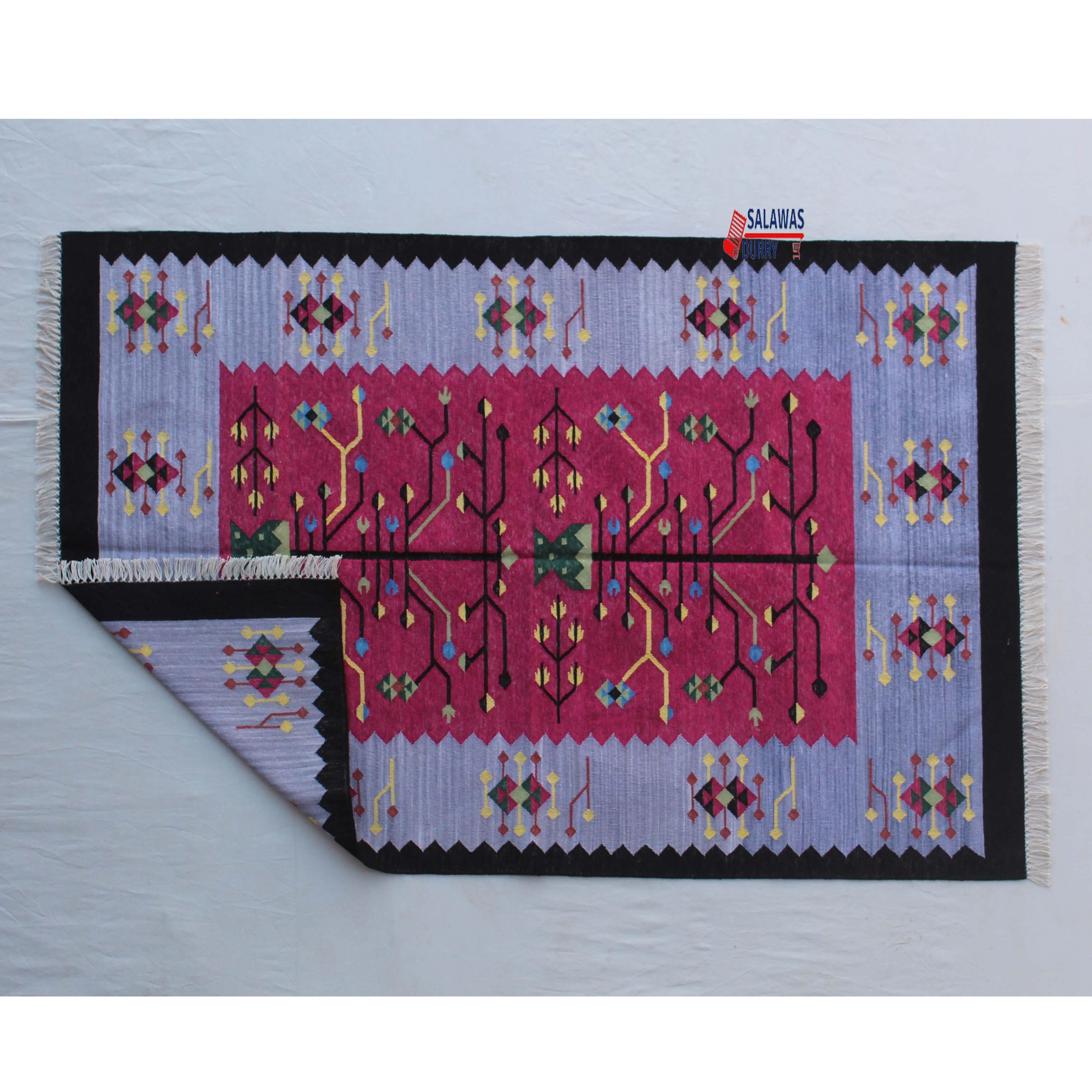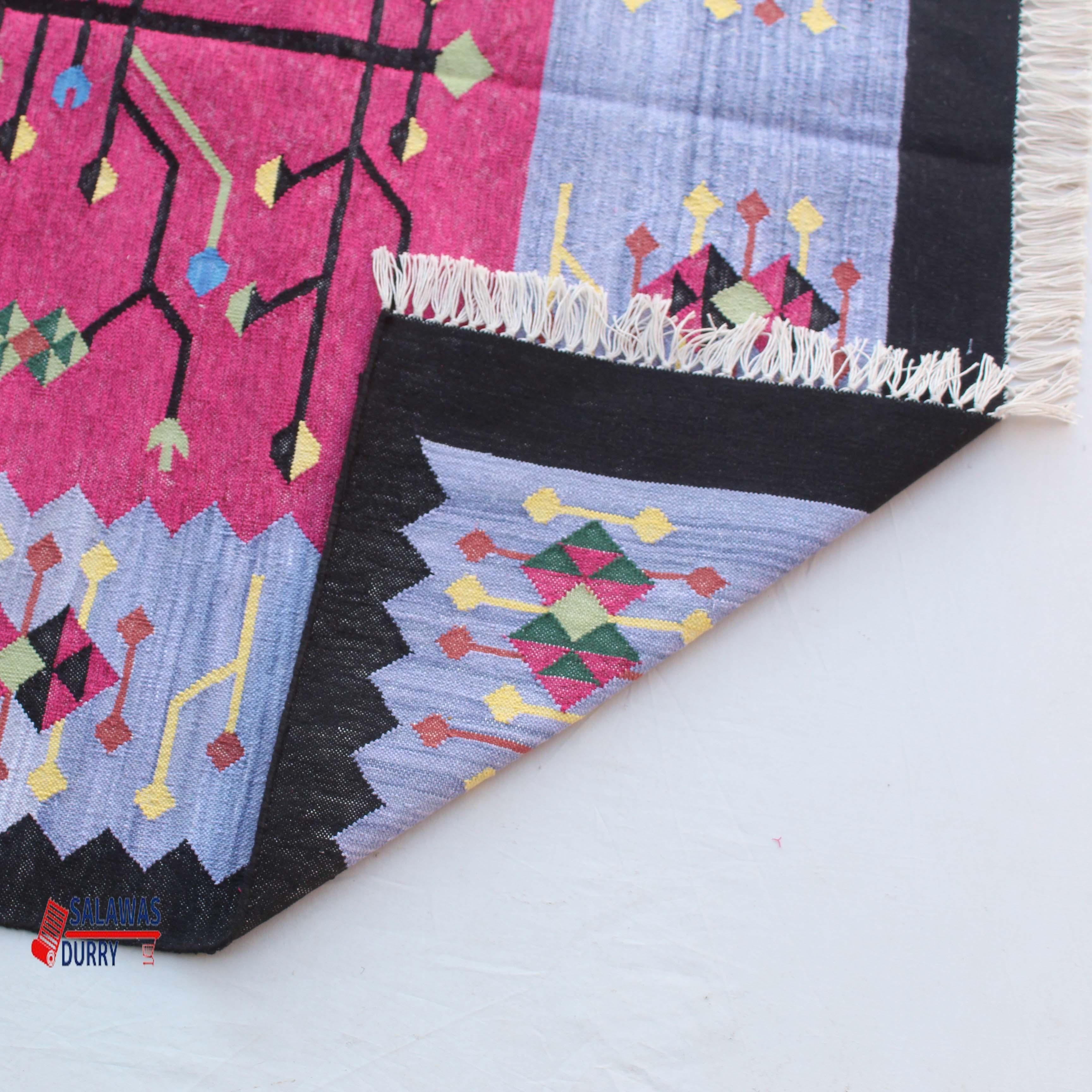 The 4x6 Cotton Dark Pink and Blue Rug is a premium design handwoven reversible Dhurrie rug kilim. Made from 100% cotton, this rug is carefully crafted using traditional loom techniques.