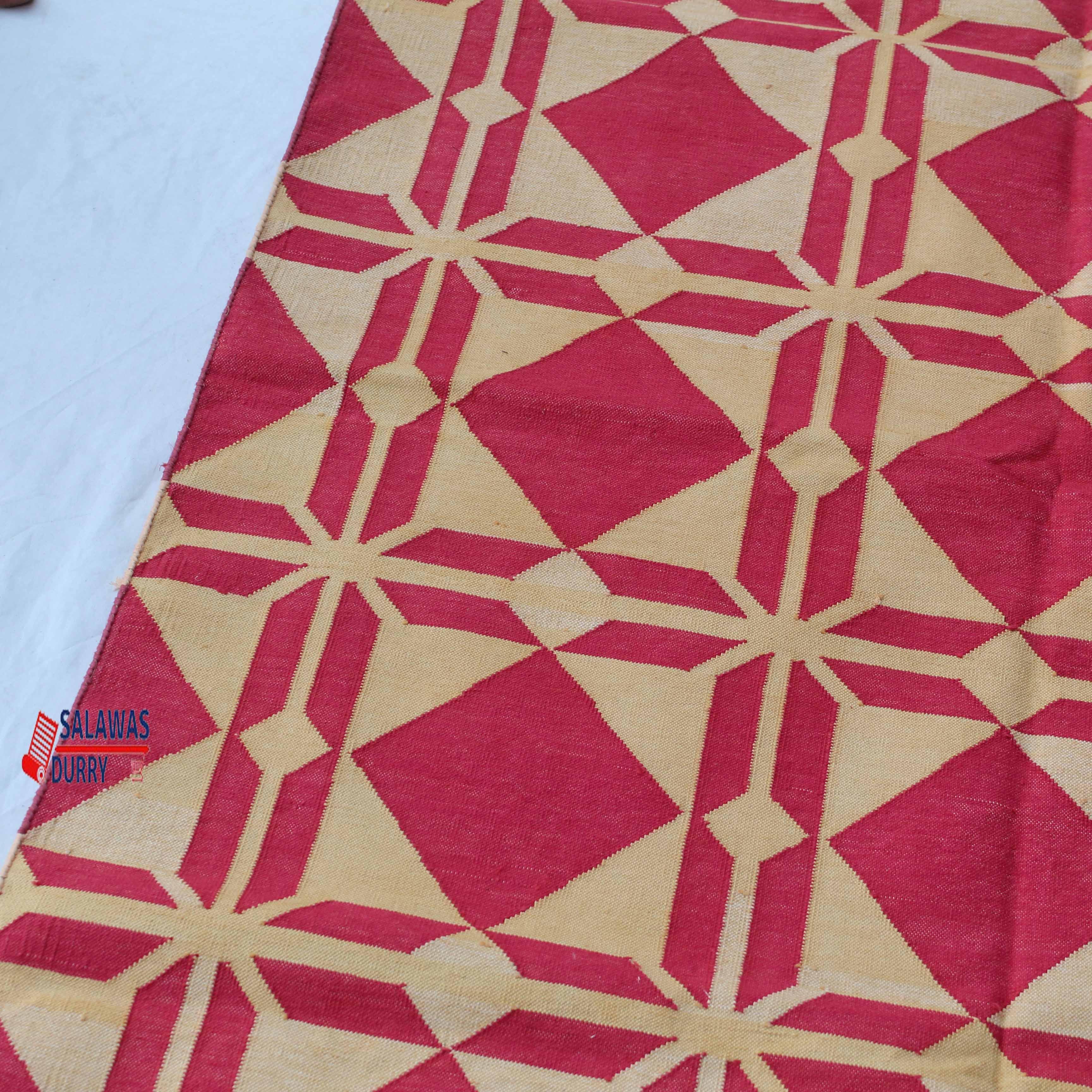 The 4x6 Cotton Dark Pink And Golden Yellow Rug is a premium design handwoven reversible Dhurrie rug kilim. Made from 100% cotton, this rug is carefully crafted using traditional loom techniques. The strong and vibrant Dark Pink And Golden Yellow colors are created using natural dye threads, ensuring a fast and long-lasting color that is completely washable without any color bleeding. The rug is lightweight yet tightly made, making it an excellent choice for floor covering. Its size of 4x6 feet is versatile to fit various spaces.