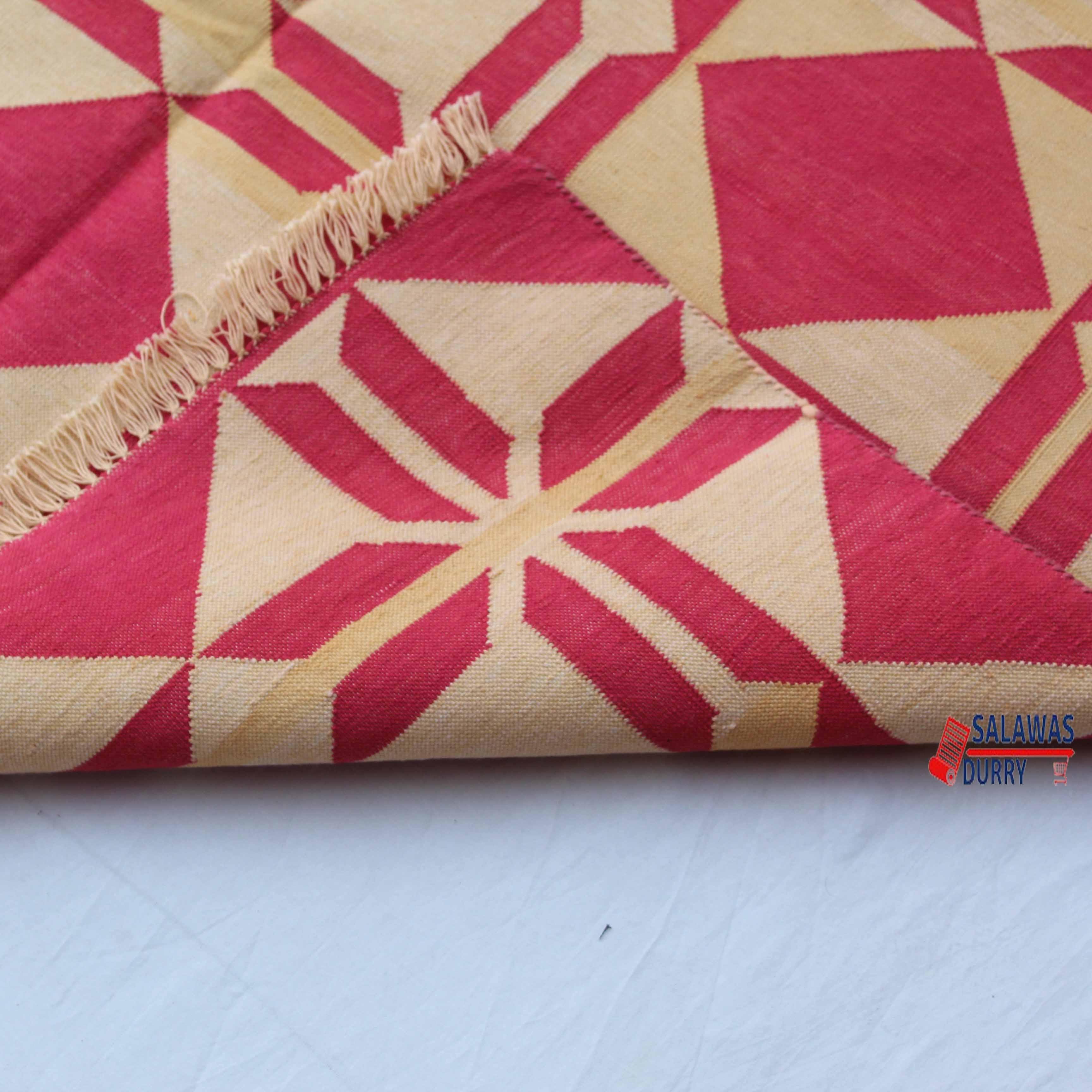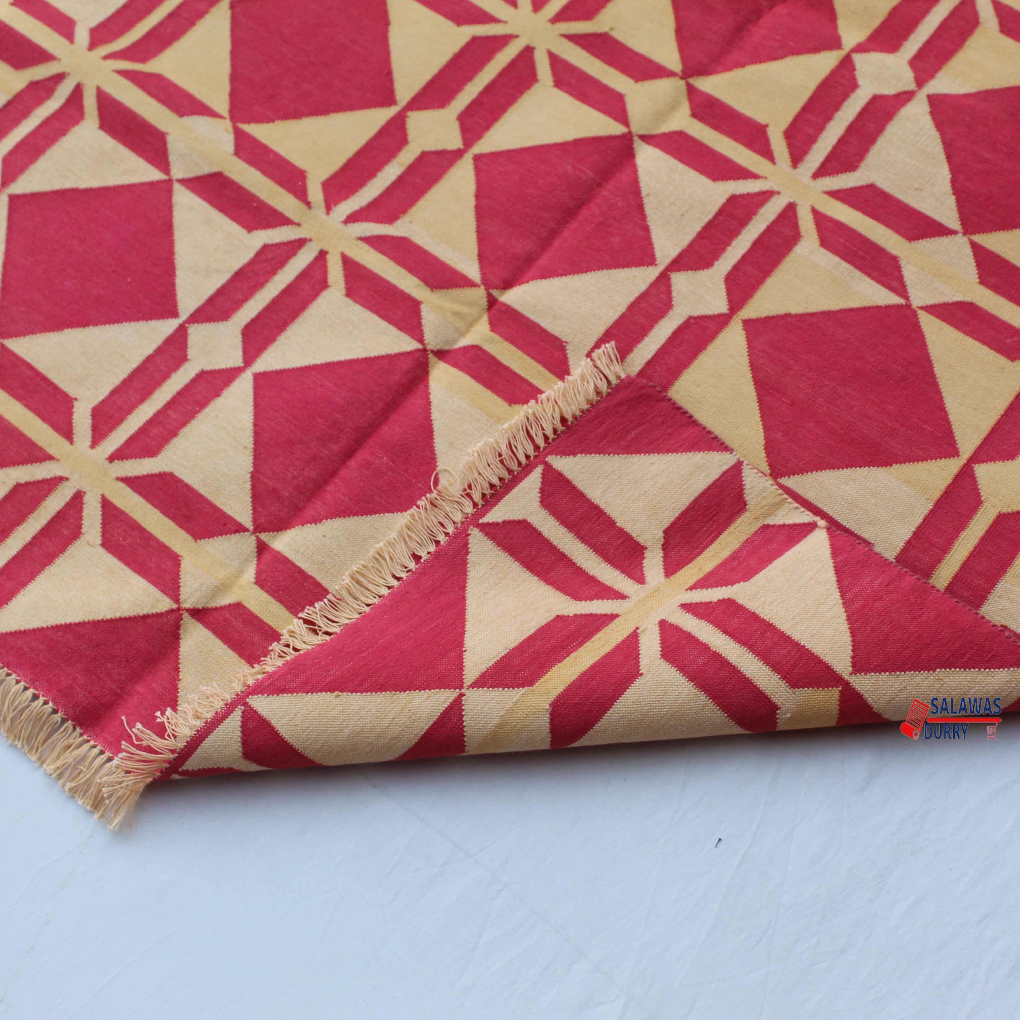 The 4x6 Cotton Dark Pink And Golden Yellow Rug is a premium design handwoven reversible Dhurrie rug kilim. Made from 100% cotton, this rug is carefully crafted using traditional loom techniques.