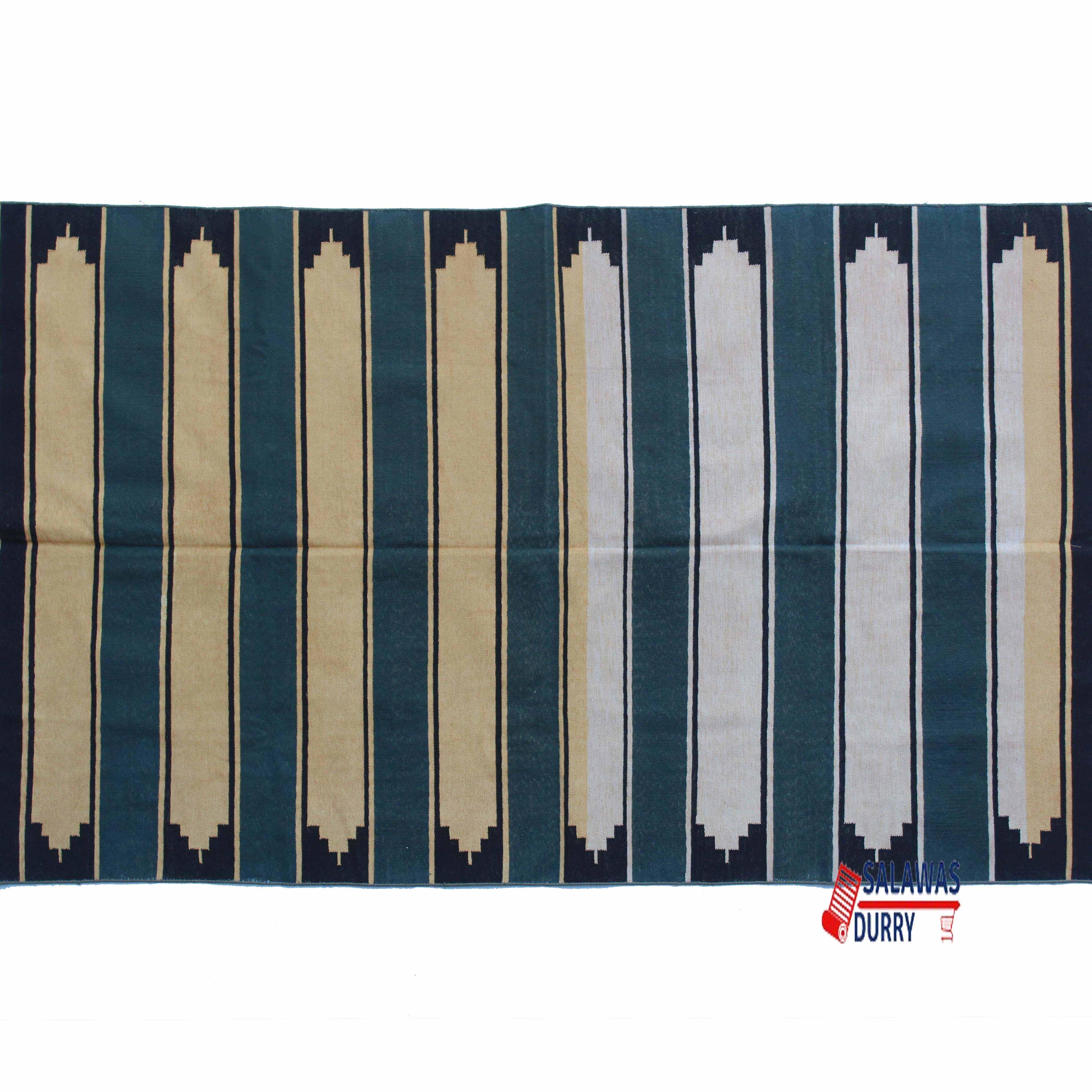 The Colorful Geometric Dhurrie Rug is a vibrant and eye-catching addition to any space. Handwoven in the desert area of Rajasthan, India, this rug is made using traditional techniques on a wooden loom.