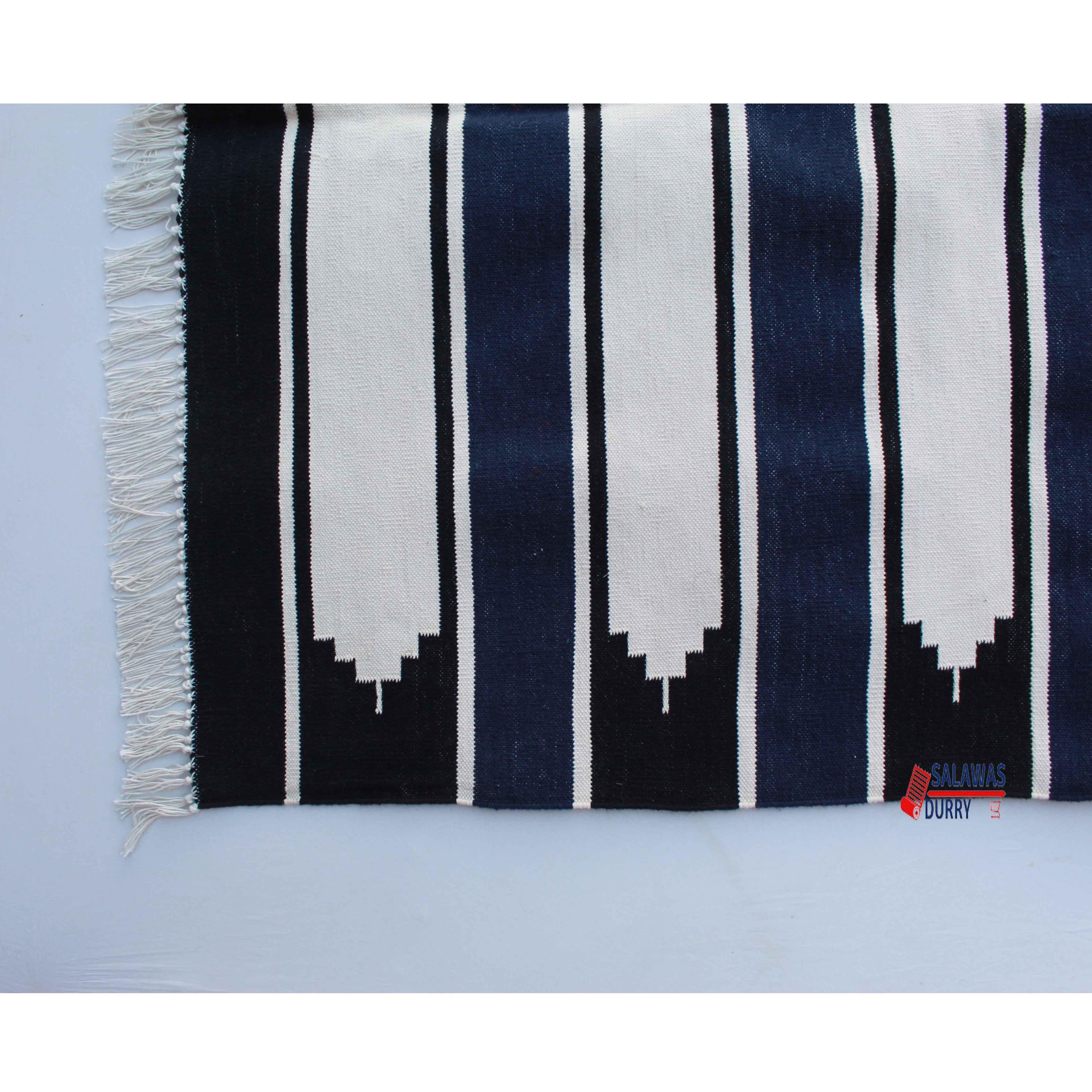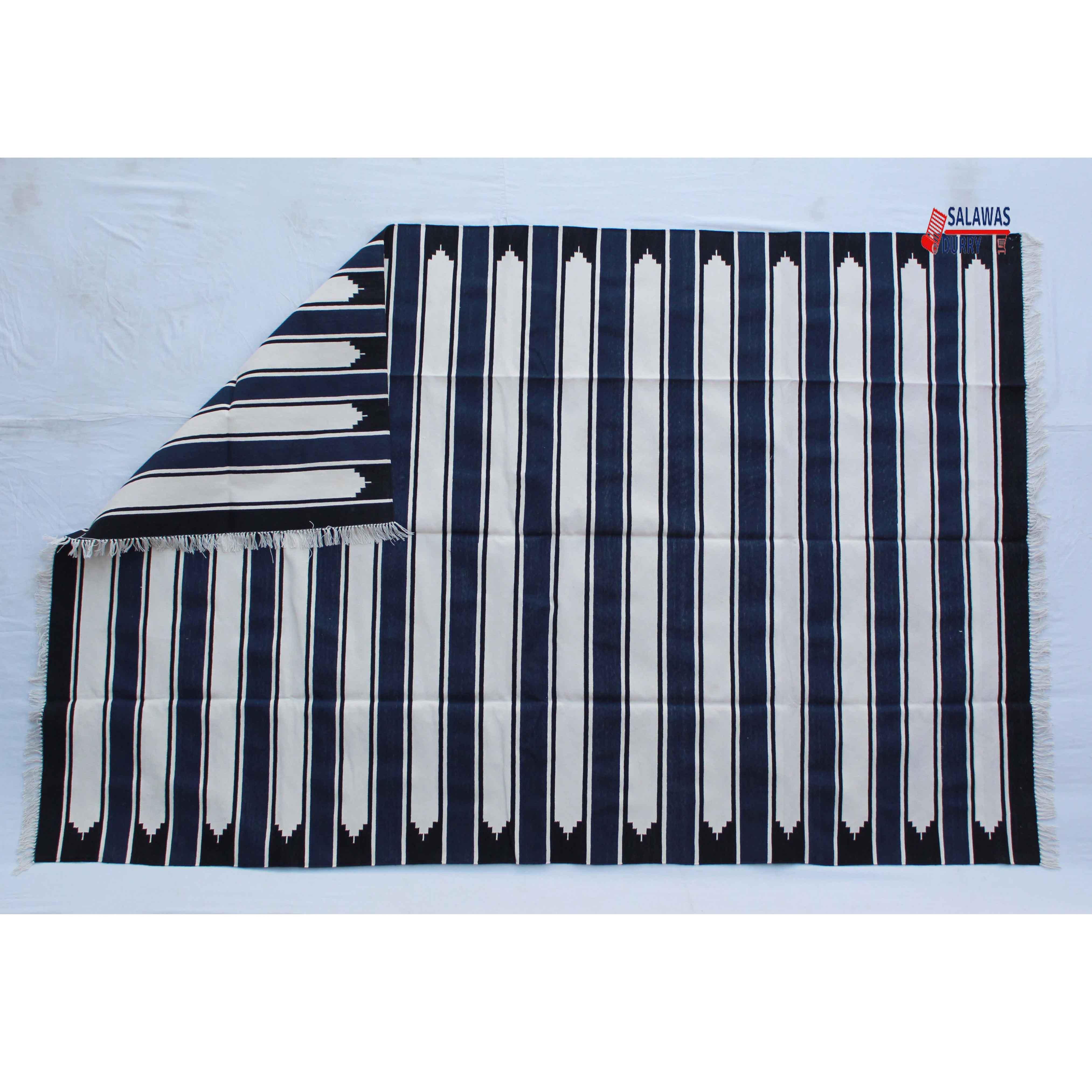 The 6X9 Black Hand Woven Stripes Geometric High Quality Cotton Flatweave Rug is a stunning addition to any space. This rug, handmade in India, is inspired by modern contemporary lifestyles and arts. Measuring 6 feet in width and 9 feet in length, it features a beautiful geometric design that adds a touch of sophistication to the room.