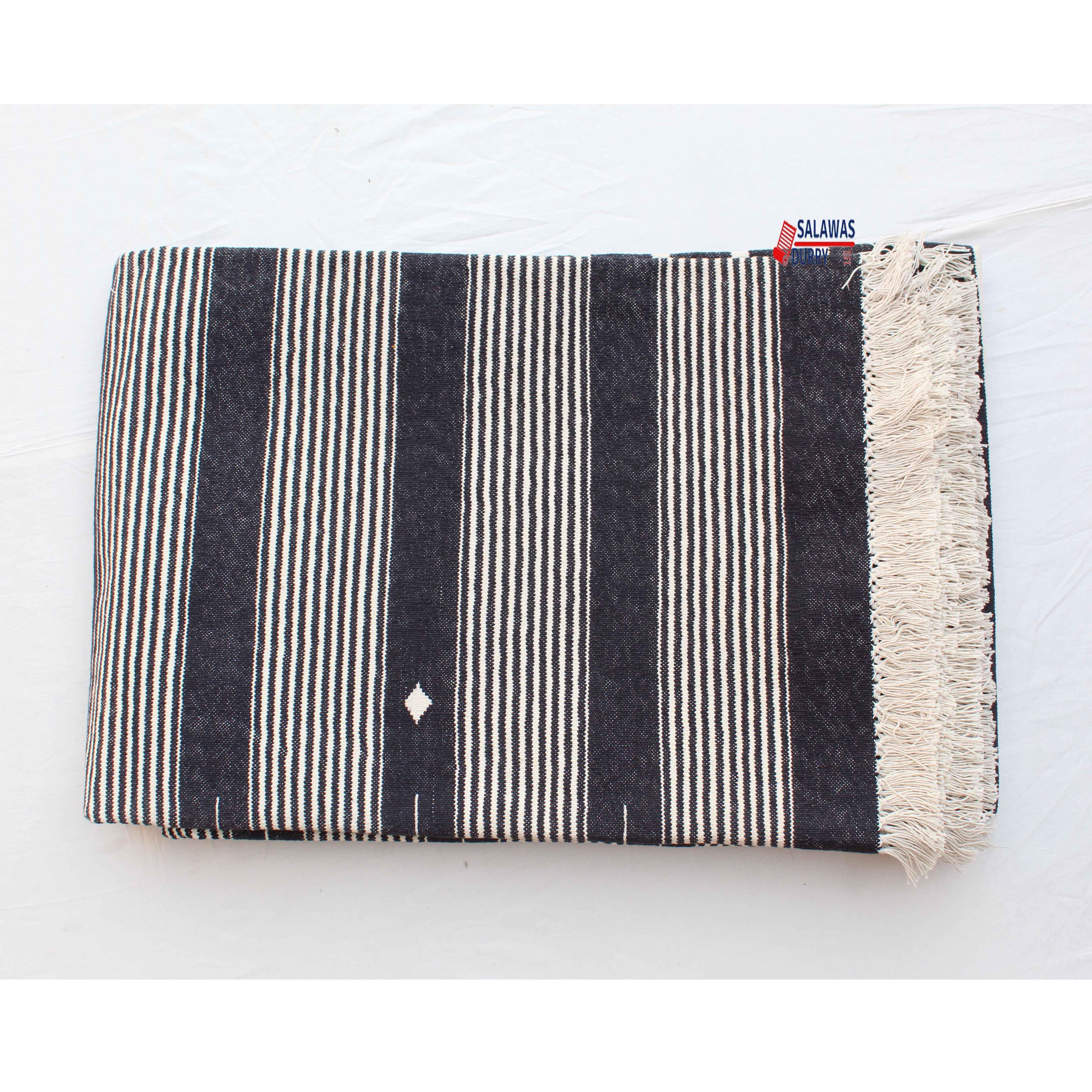 The 6X9 Black Hand Woven Stripes Geometric High Quality Cotton Flatweave Rug is a stunning addition to any space. This rug, handmade in India, is inspired by modern contemporary lifestyles and arts. Measuring 6 feet in width and 9 feet in length, it features a beautiful geometric design that adds a touch of sophistication to the room.