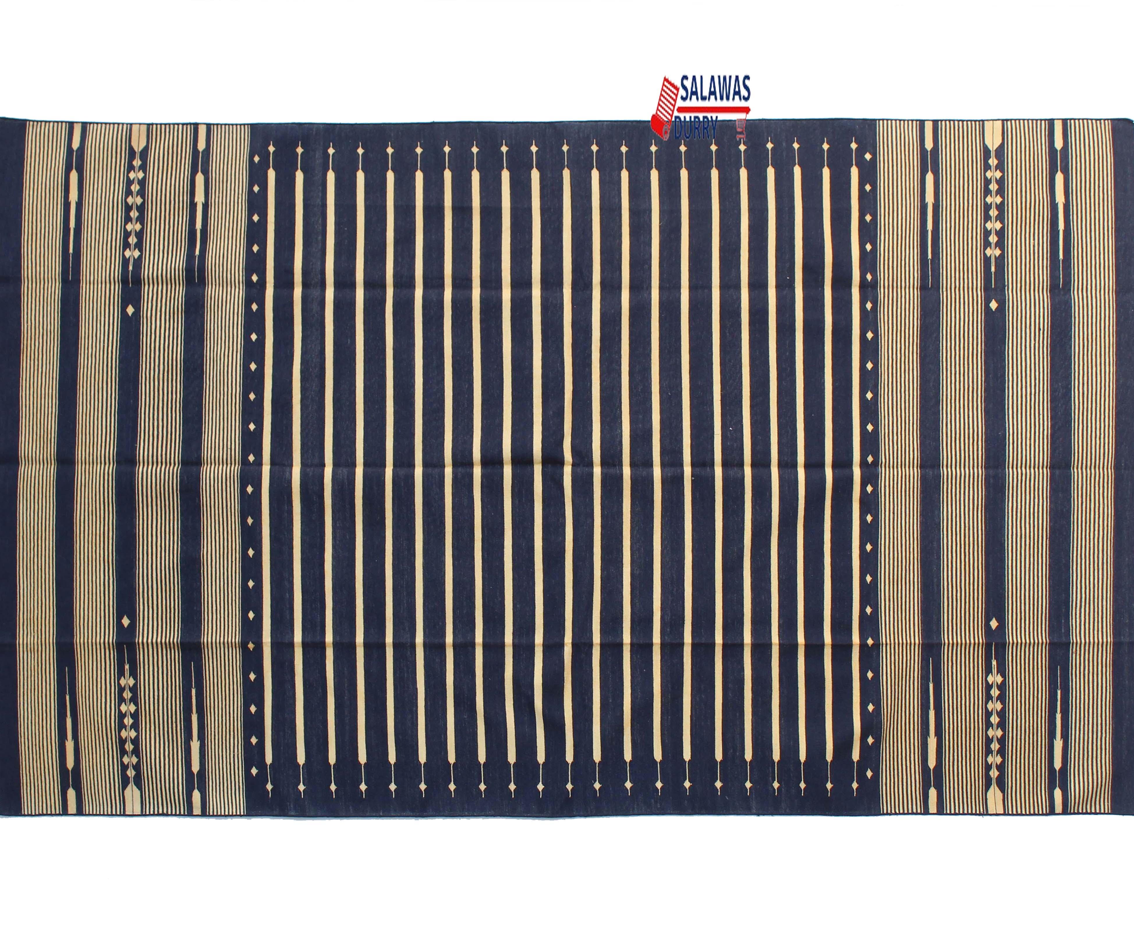 This 6X9 Dark Blue Hand Woven Geometric High Quality Cotton Flatweave Rug is ideal for a variety of spaces, including living rooms, bedrooms, and offices. Its versatile design makes it suitable for both modern and traditional interiors.