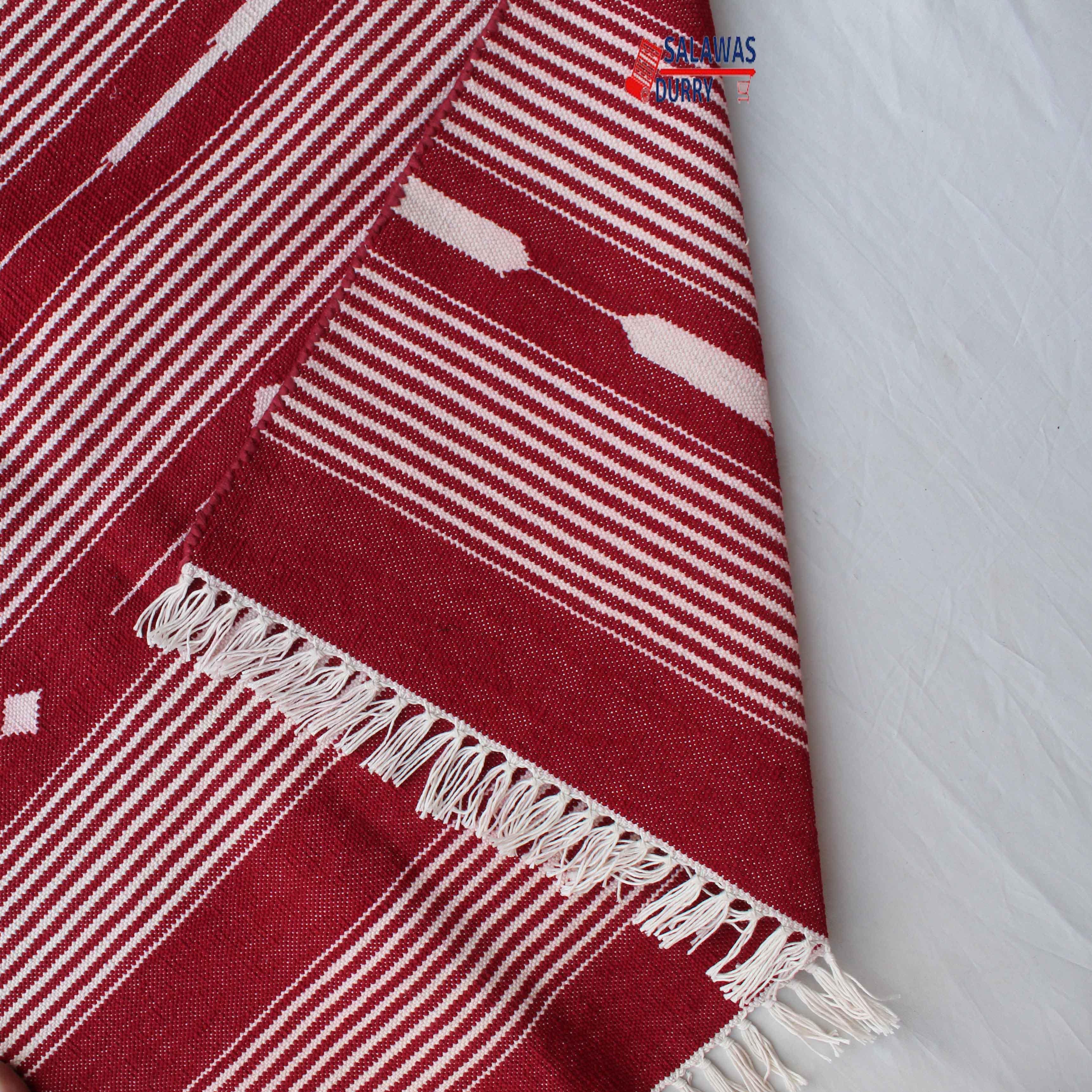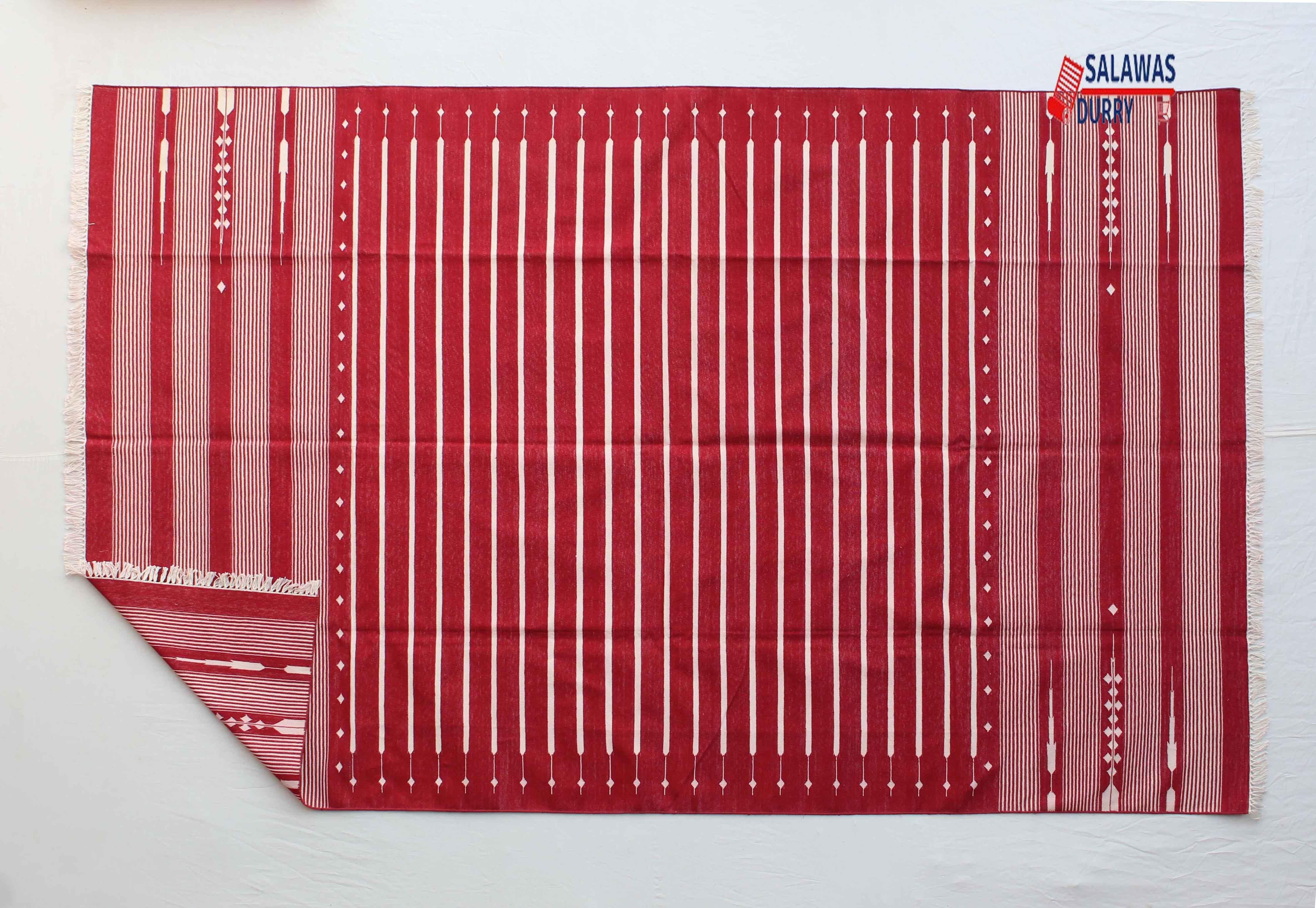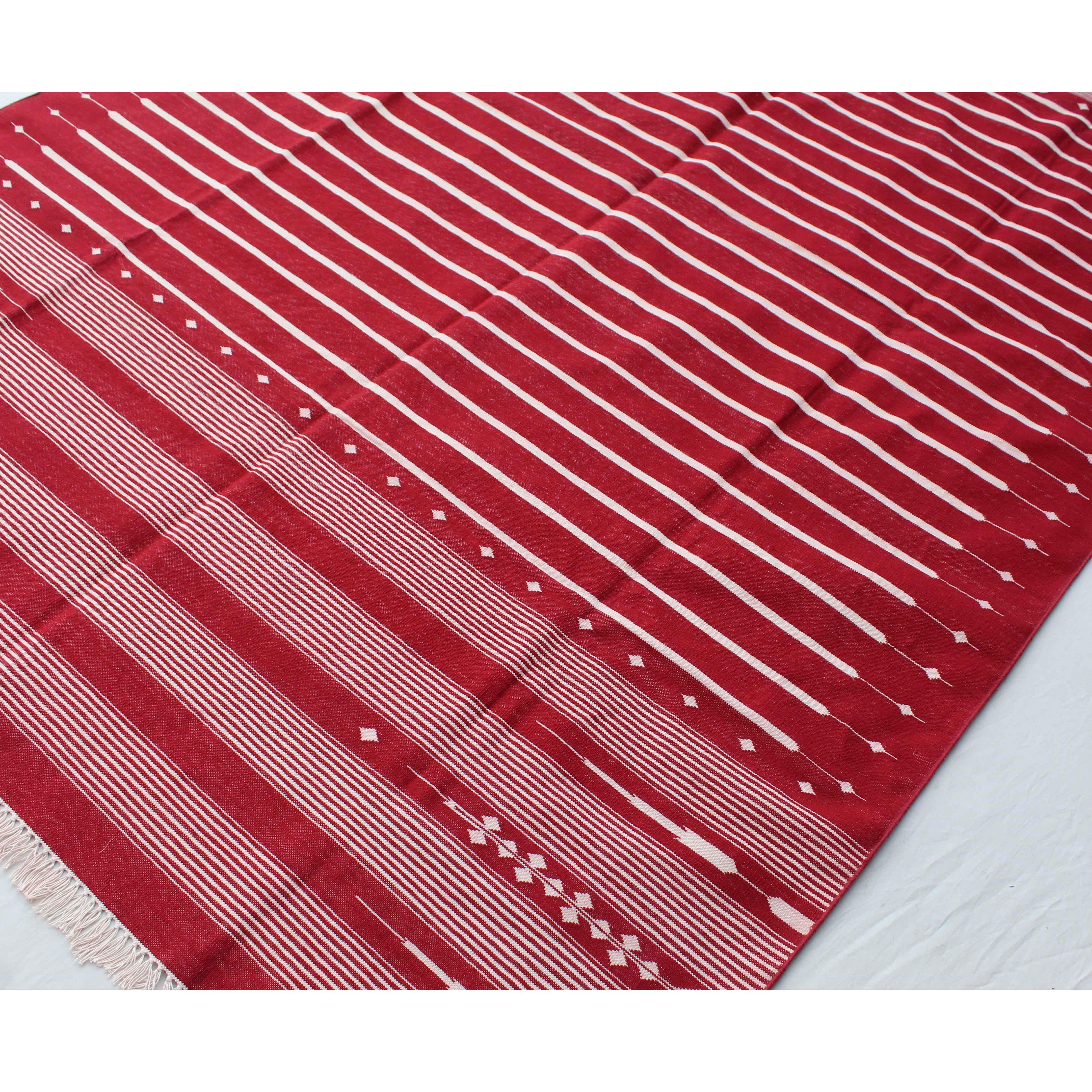 The 6X9 Red Hand Woven Stripes Geometric High Quality Cotton Flatweave Rug is a stunning addition to any space. This rug, handmade in India, is inspired by modern contemporary lifestyles and arts. Measuring 6 feet in width and 9 feet in length, it features a beautiful geometric design that adds a touch of sophistication to the room.