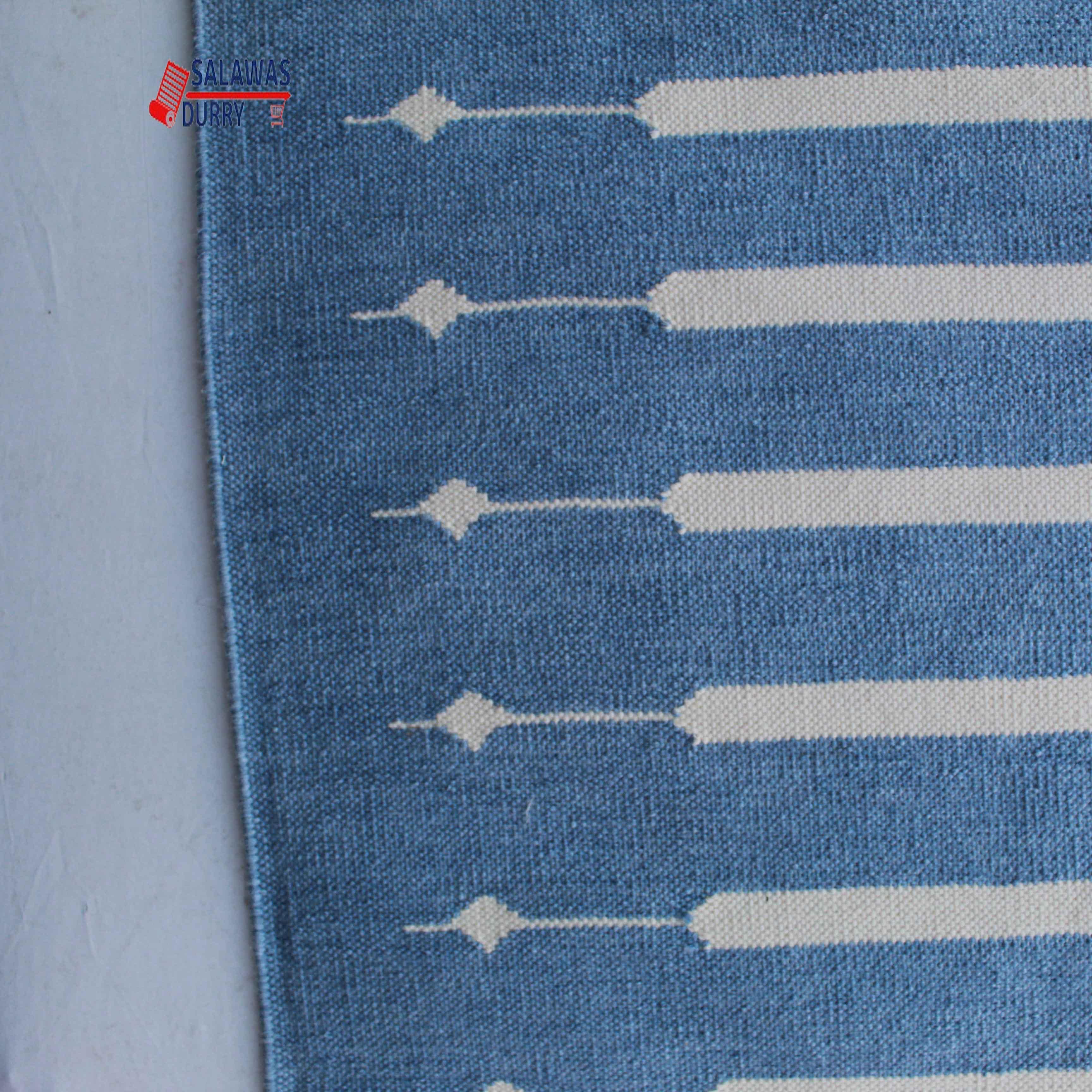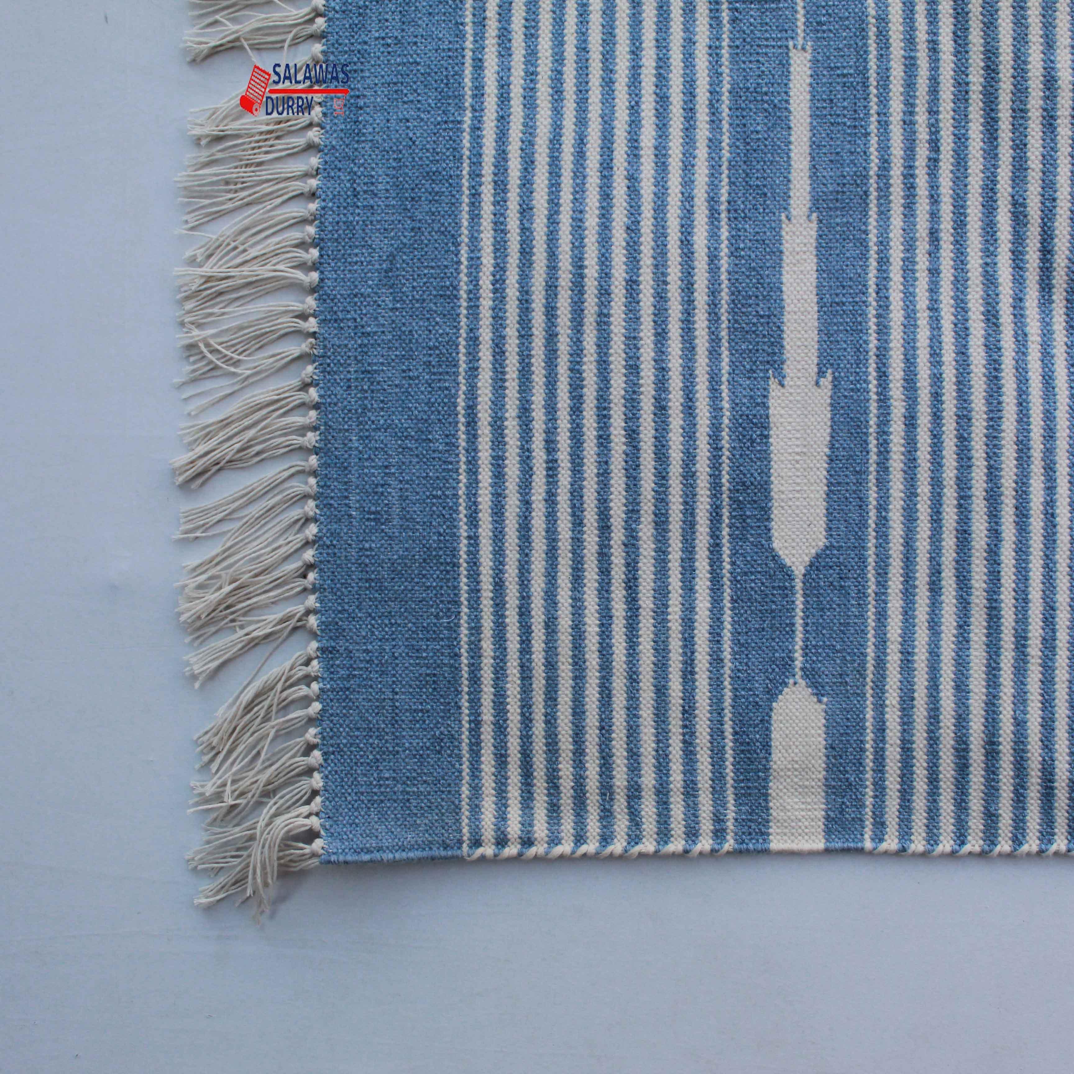 The 6X9 Sky Blue Hand Woven Stripes Geometric High Quality Cotton Flatweave Rug is a stunning addition to any space. This rug, handmade in India, is inspired by modern contemporary lifestyles and arts. Measuring 6 feet in width and 9 feet in length, it features a beautiful geometric design that adds a touch of sophistication to the room.