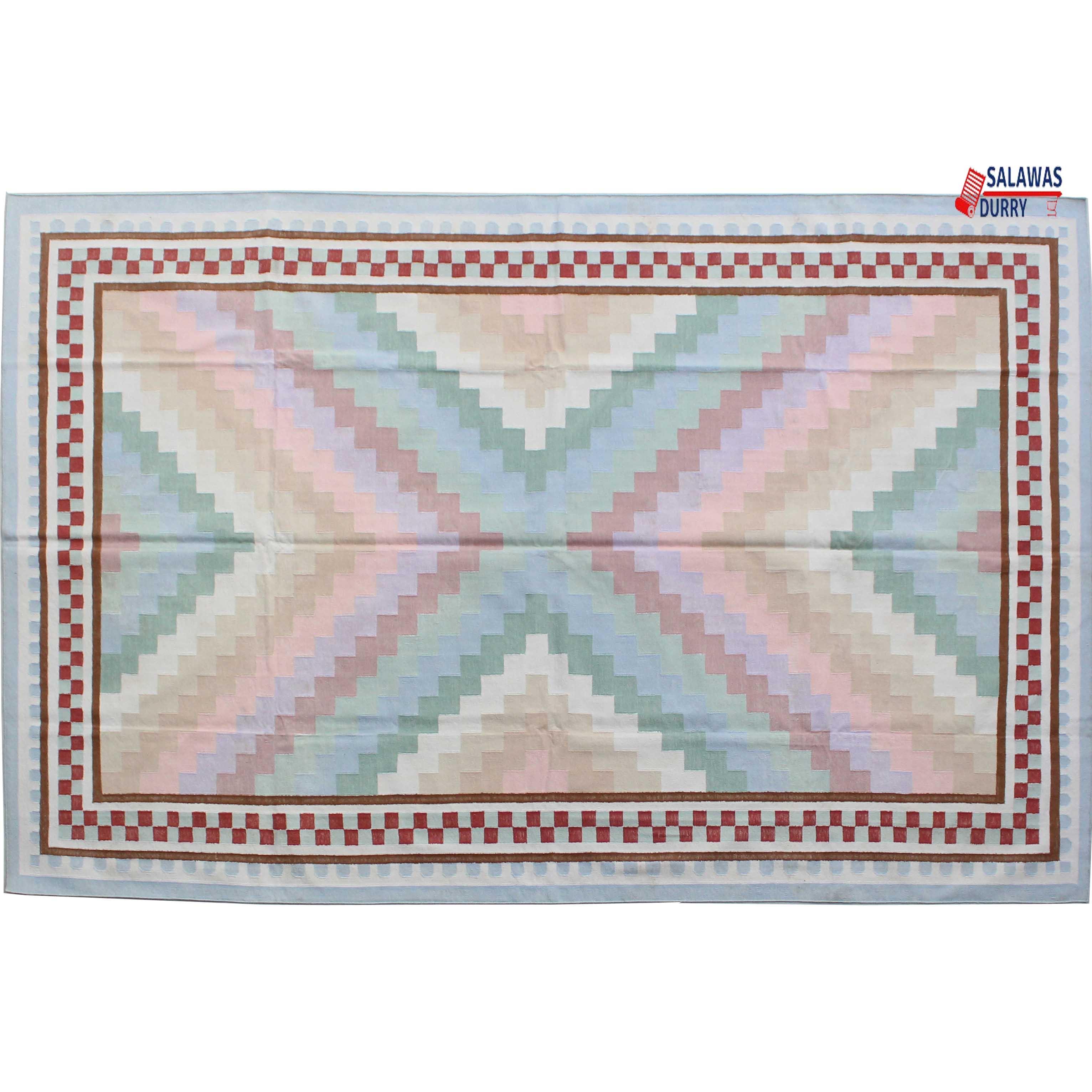 Introducing our exquisite 6x9 Light Cotton Handmade Zig Zag Design Rug, a stunning addition to any home decor. This beautiful rug features a flat weave and is hand woven with precision using traditional loom techniques. It is crafted from strong cotton threads, ensuring durability and longevity.