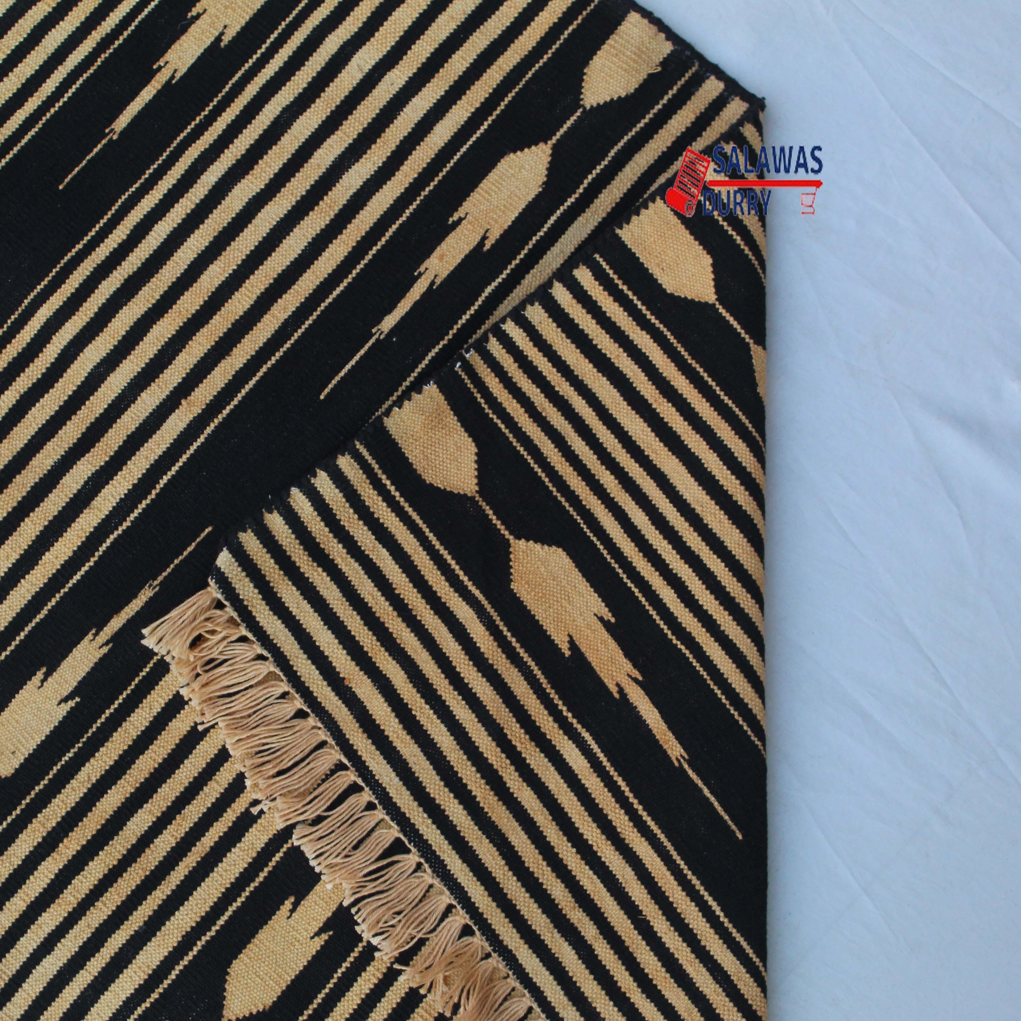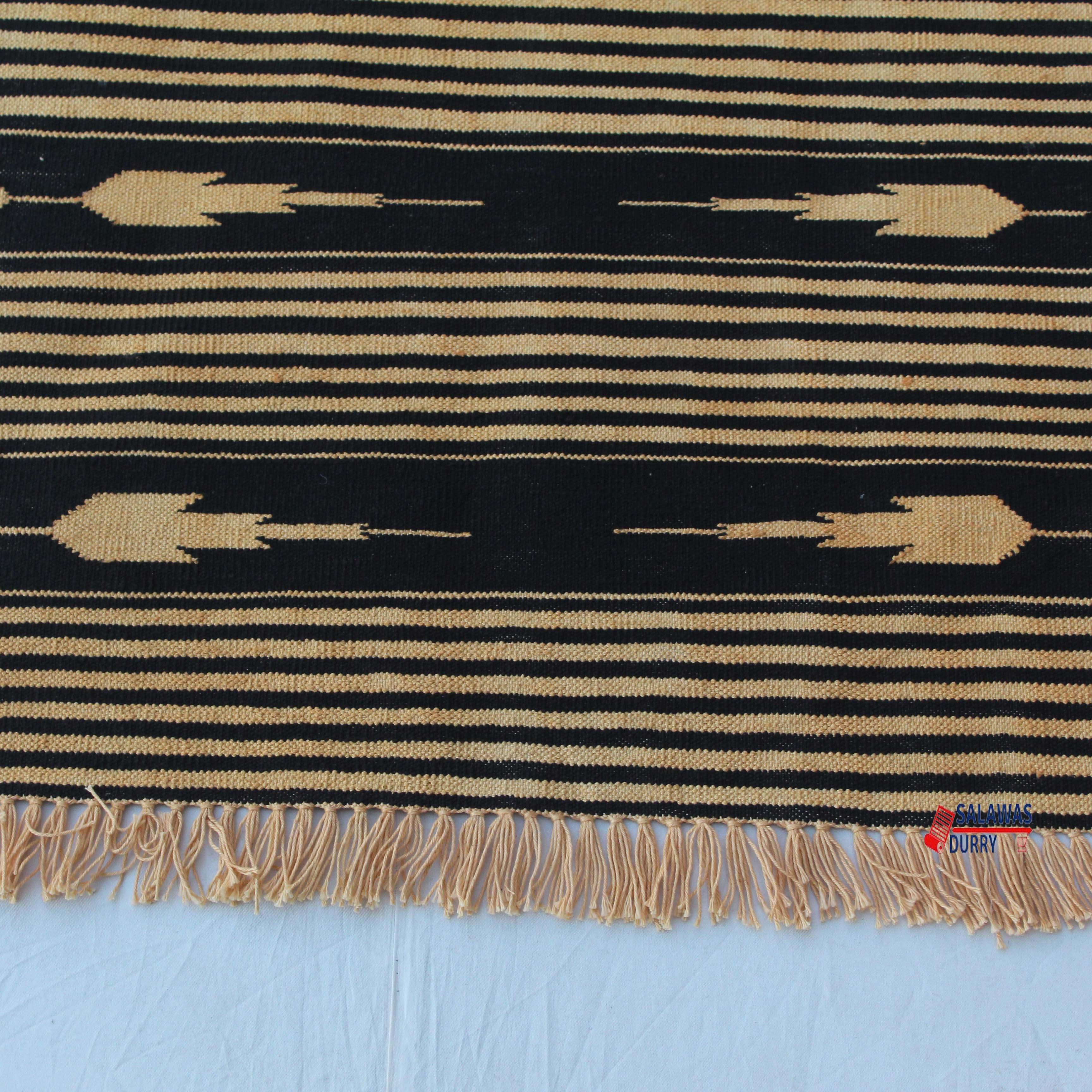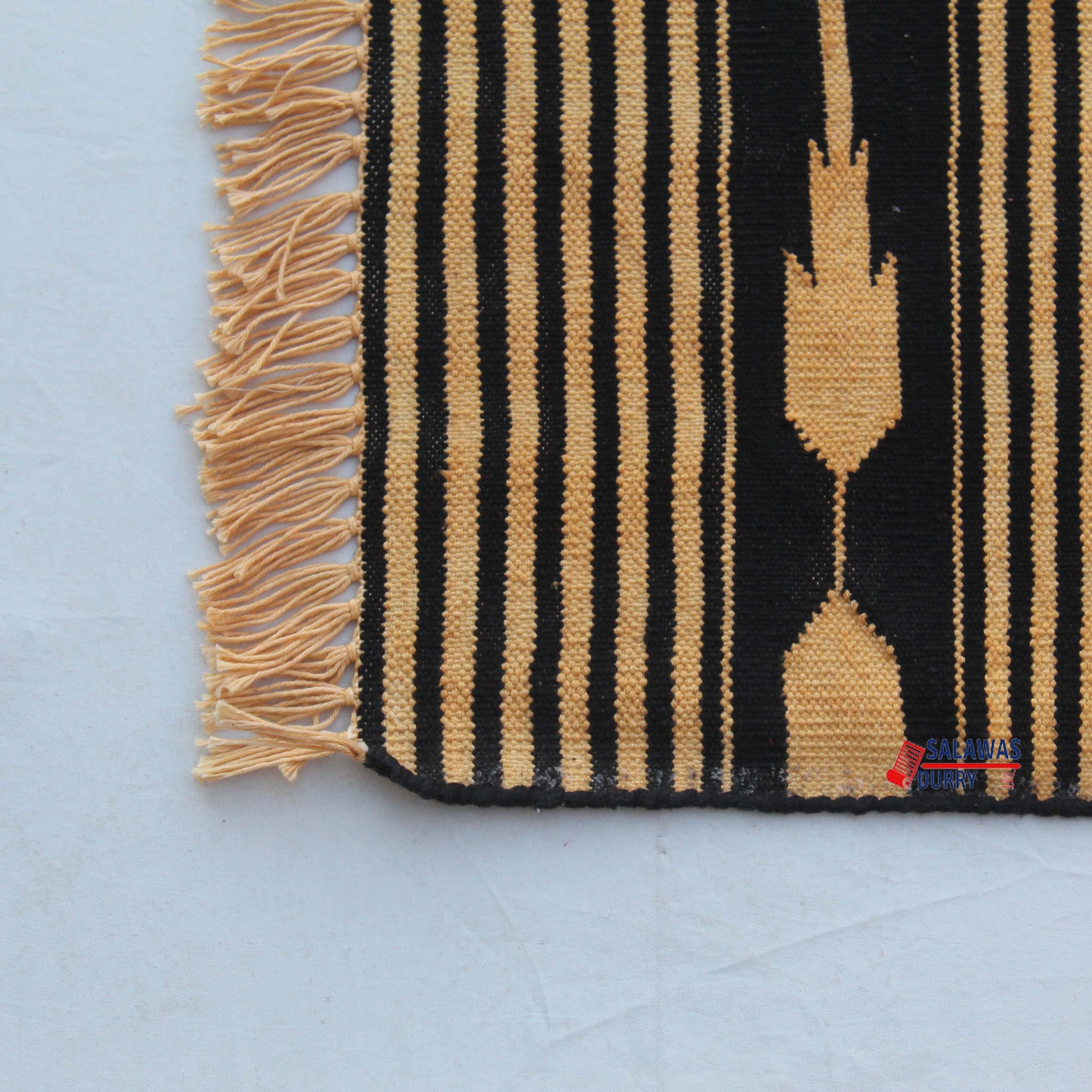Introducing our exquisite Multiple Sizes Cotton Black And Golden Yellow Modern Stripes Handwoven Runner Rug! This reversible runner kilim rug is skillfully handcrafted, making it a unique and eye-catching addition to your home decor. Made from premium quality cotton materials, this runner rug offers both durability and comfort.