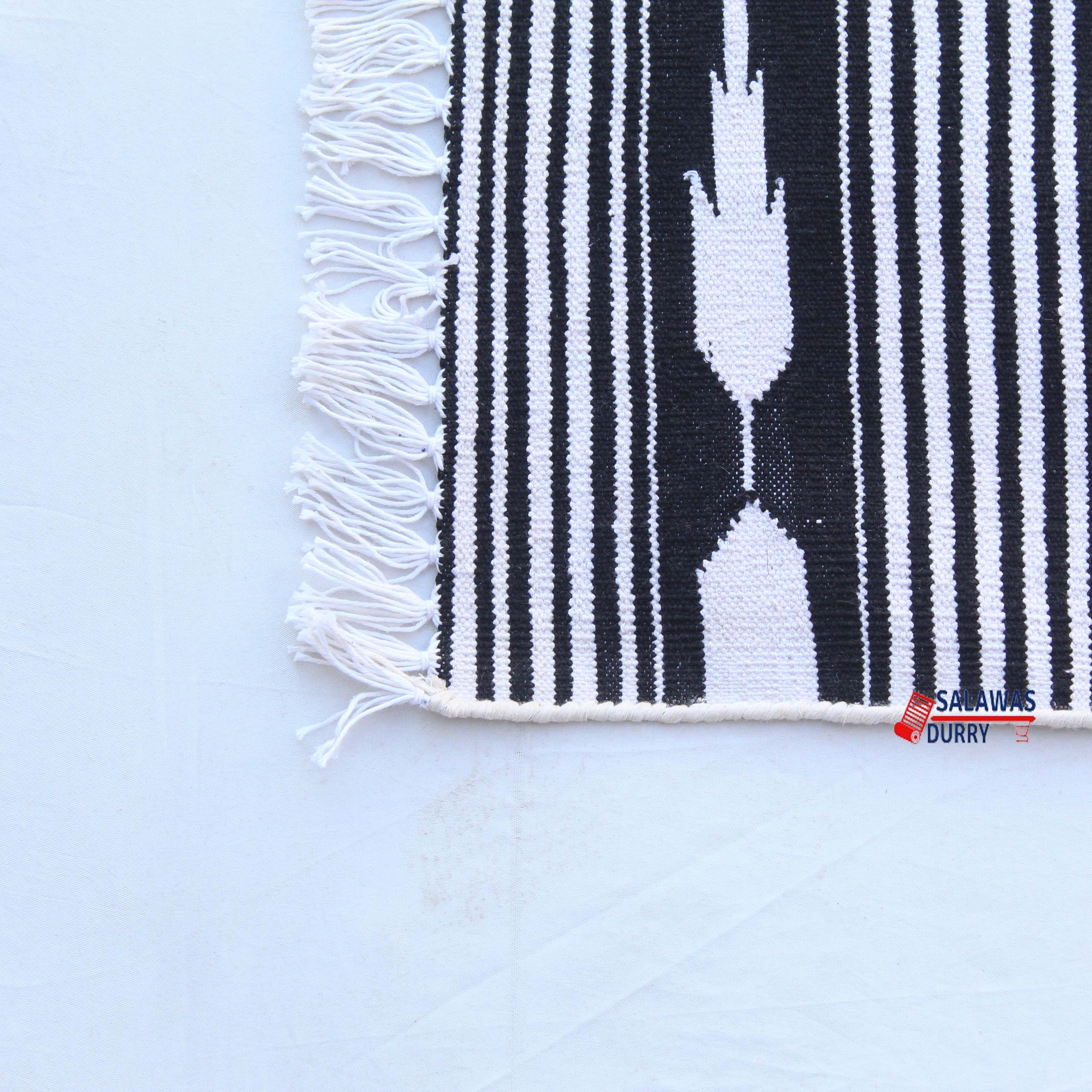 Introducing our exquisite Multiple Sizes Cotton Black And off White Modern Stripes Handwoven Runner Rug! This reversible runner kilim rug is skillfully handcrafted, making it a unique and eye-catching addition to your home decor. Made from premium quality cotton materials, this runner rug offers both durability and comfort.