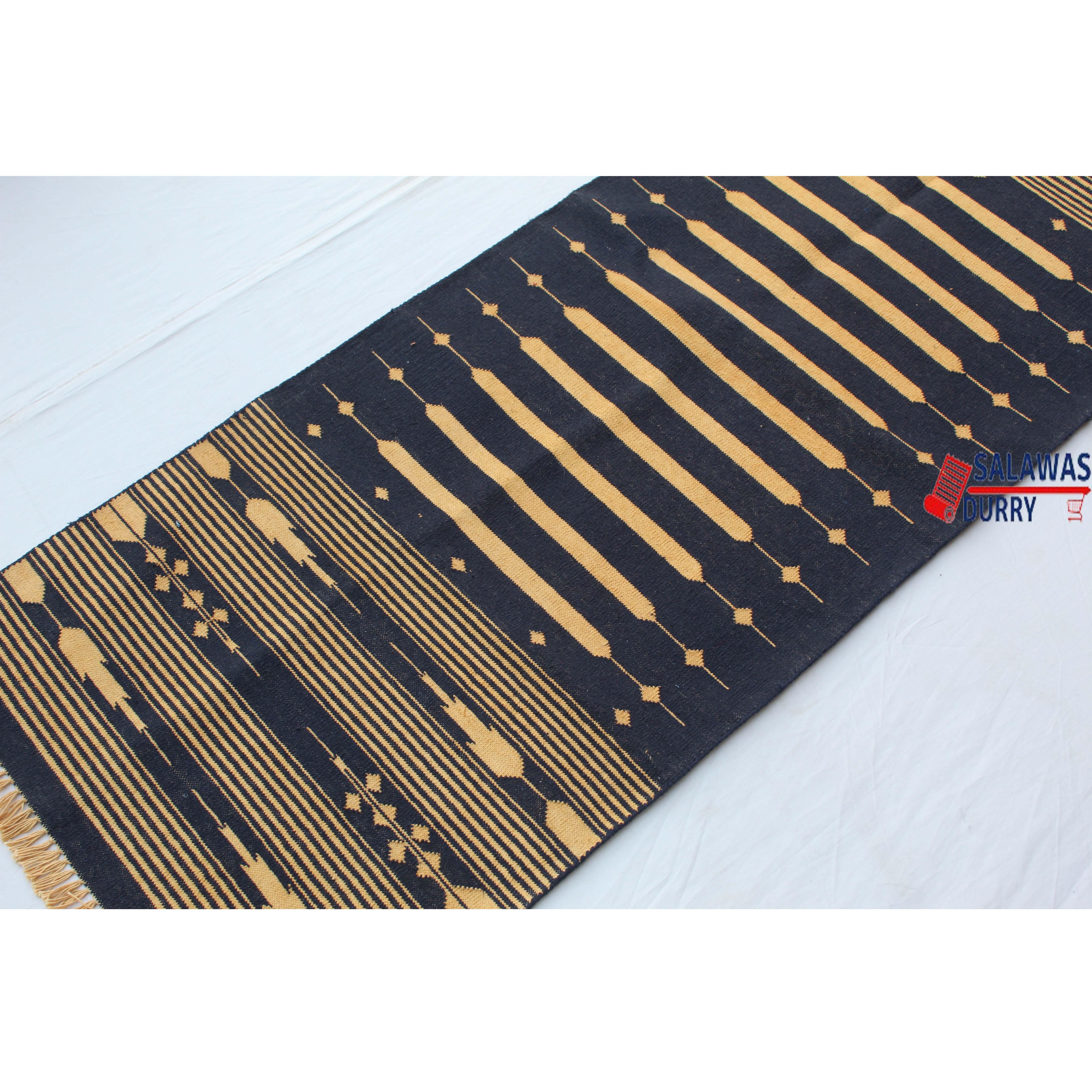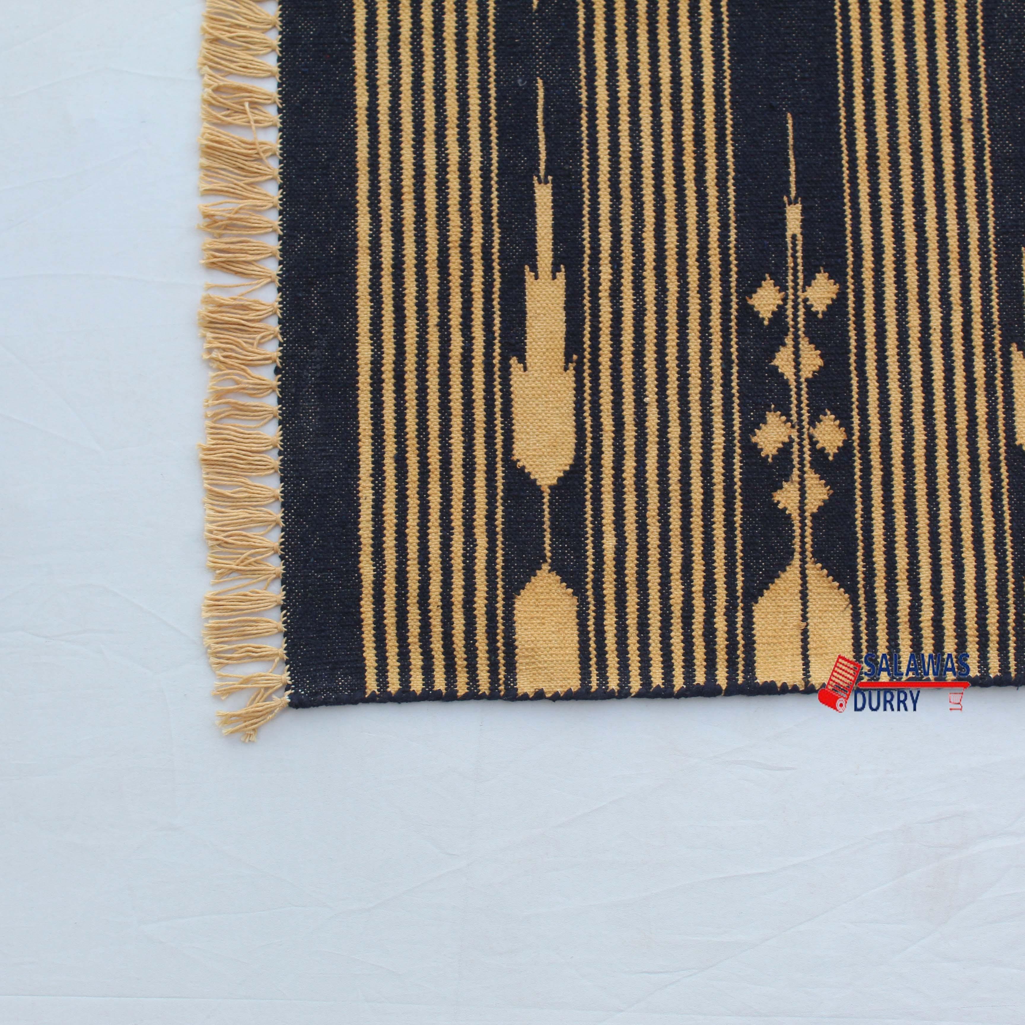 Introducing our exquisite Multiple Sizes Cotton Dark Blue And Golden Yellow Modern Stripes Handwoven Runner Rug! This reversible runner kilim rug is skillfully handcrafted, making it a unique and eye-catching addition to your home decor. Made from premium quality cotton materials, this runner rug offers both durability and comfort.