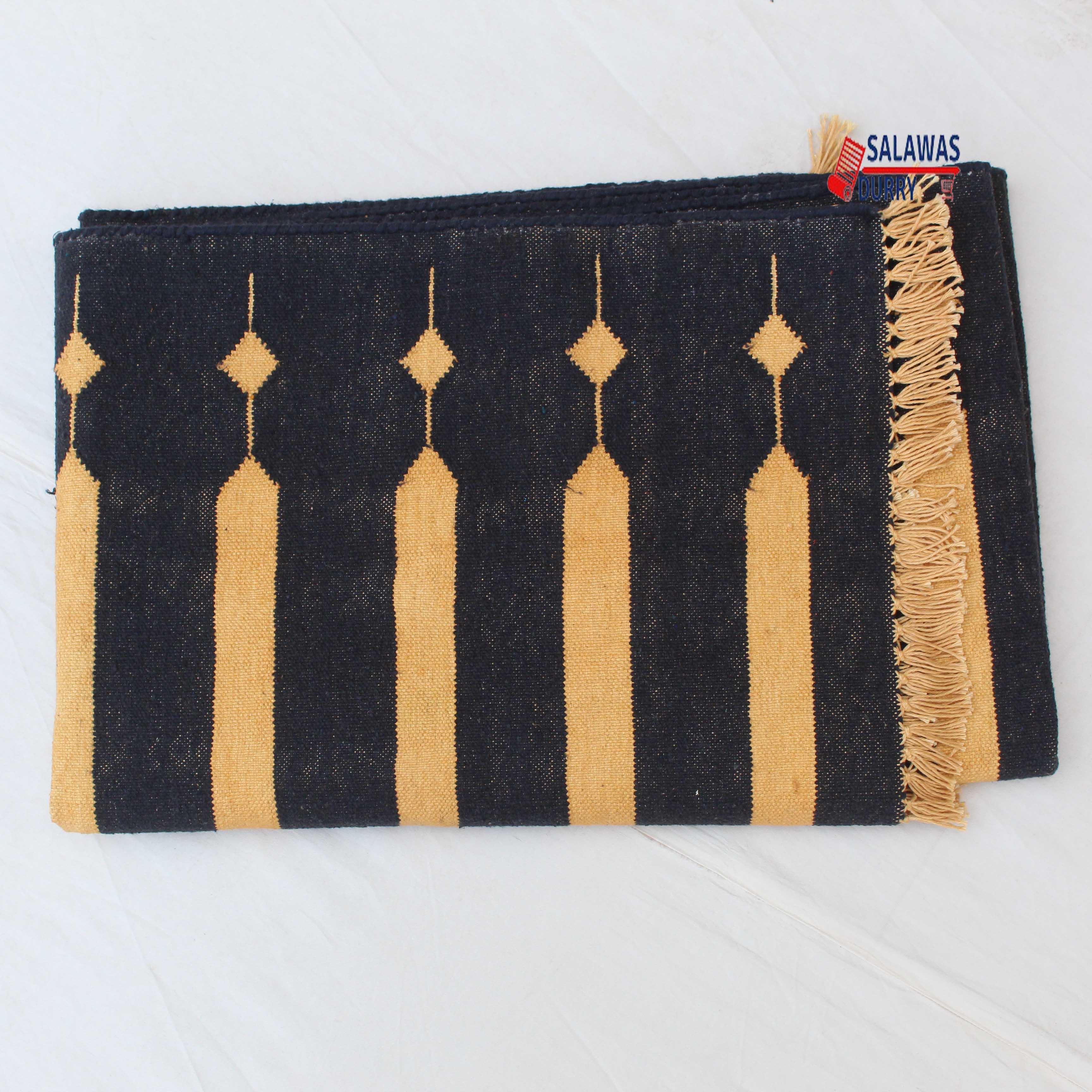 Introducing our exquisite Multiple Sizes Cotton Black And Golden Yellow Modern Stripes Handwoven Runner Rug! This reversible runner kilim rug is skillfully handcrafted, making it a unique and eye-catching addition to your home decor. Made from premium quality cotton materials, this runner rug offers both durability and comfort.