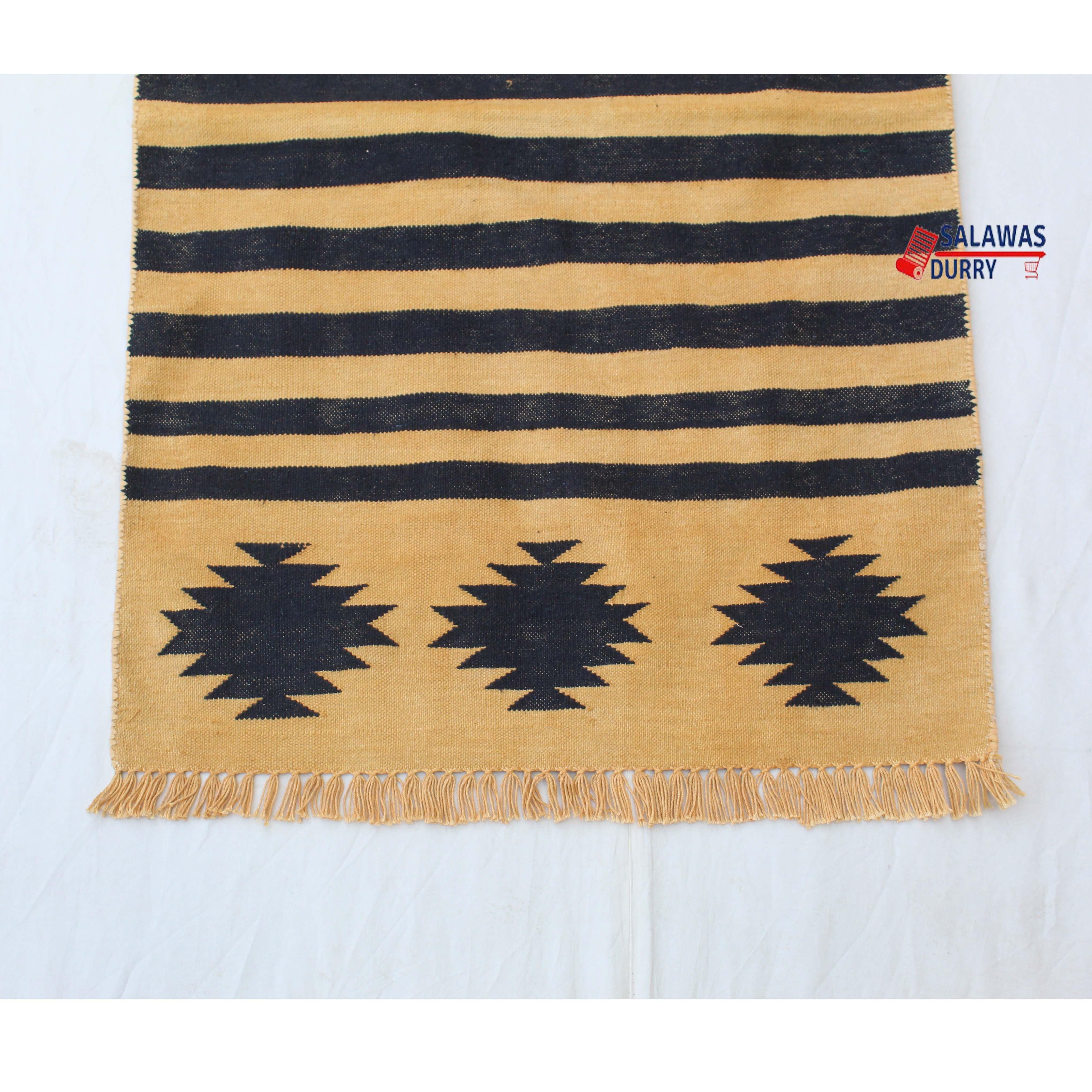 Introducing our exquisite Multiple Sizes Cotton  Dark Blue And Golden Yellow Modern Stripes Handwoven Runner Rug! This reversible runner kilim rug is skillfully handcrafted, making it a unique and eye-catching addition to your home decor. Made from premium quality cotton materials, this runner rug offers both durability and comfort.