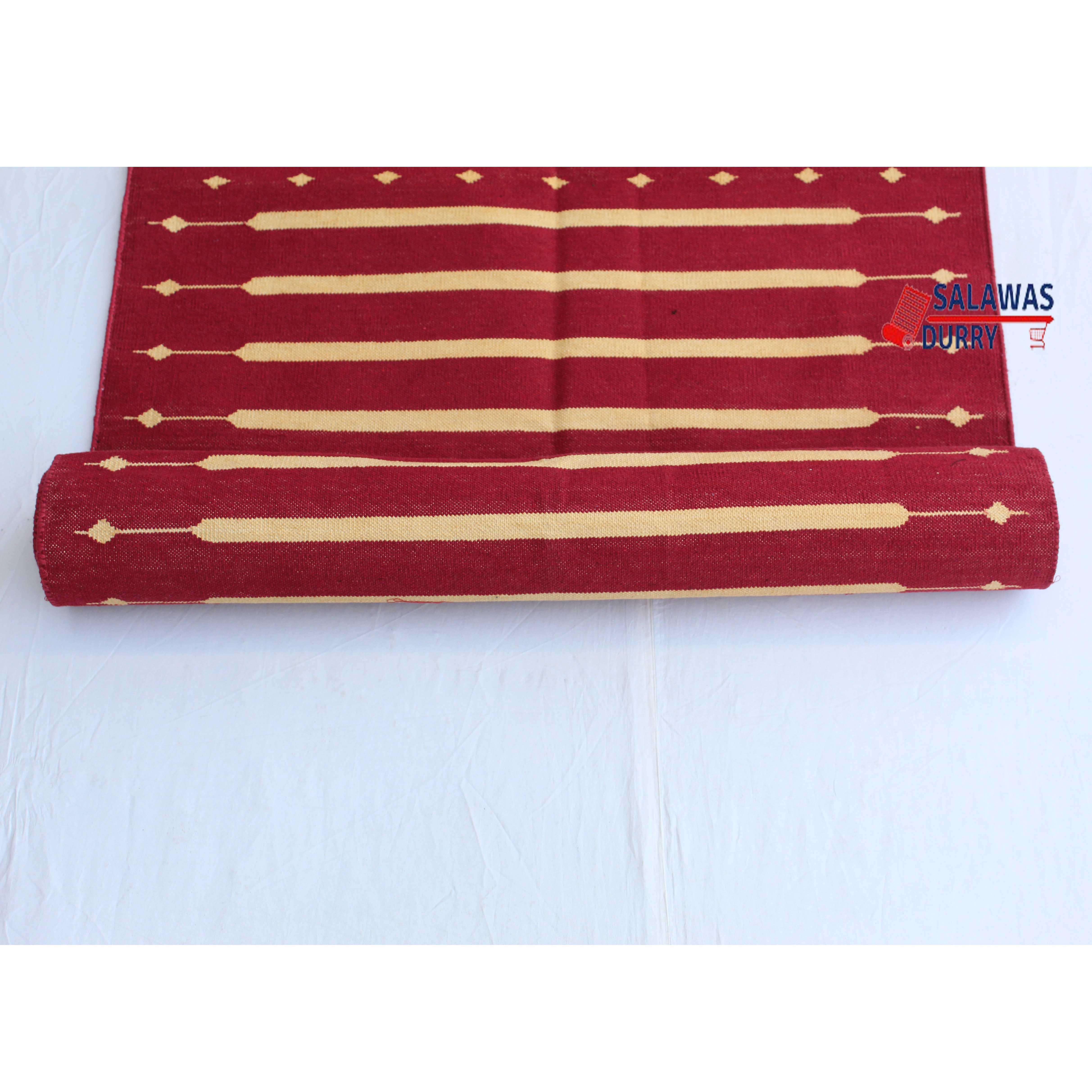 The rug features a striking combination of Red and Golden Yellow stripes, adding a modern and contemporary touch to any space. The use of strong color and strong cotton threads ensures that the rug is vibrant and long-lasting. Thanks to the use of natural dye threads, the colors are fade-resistant and completely washable, allowing for easy maintenance and care.