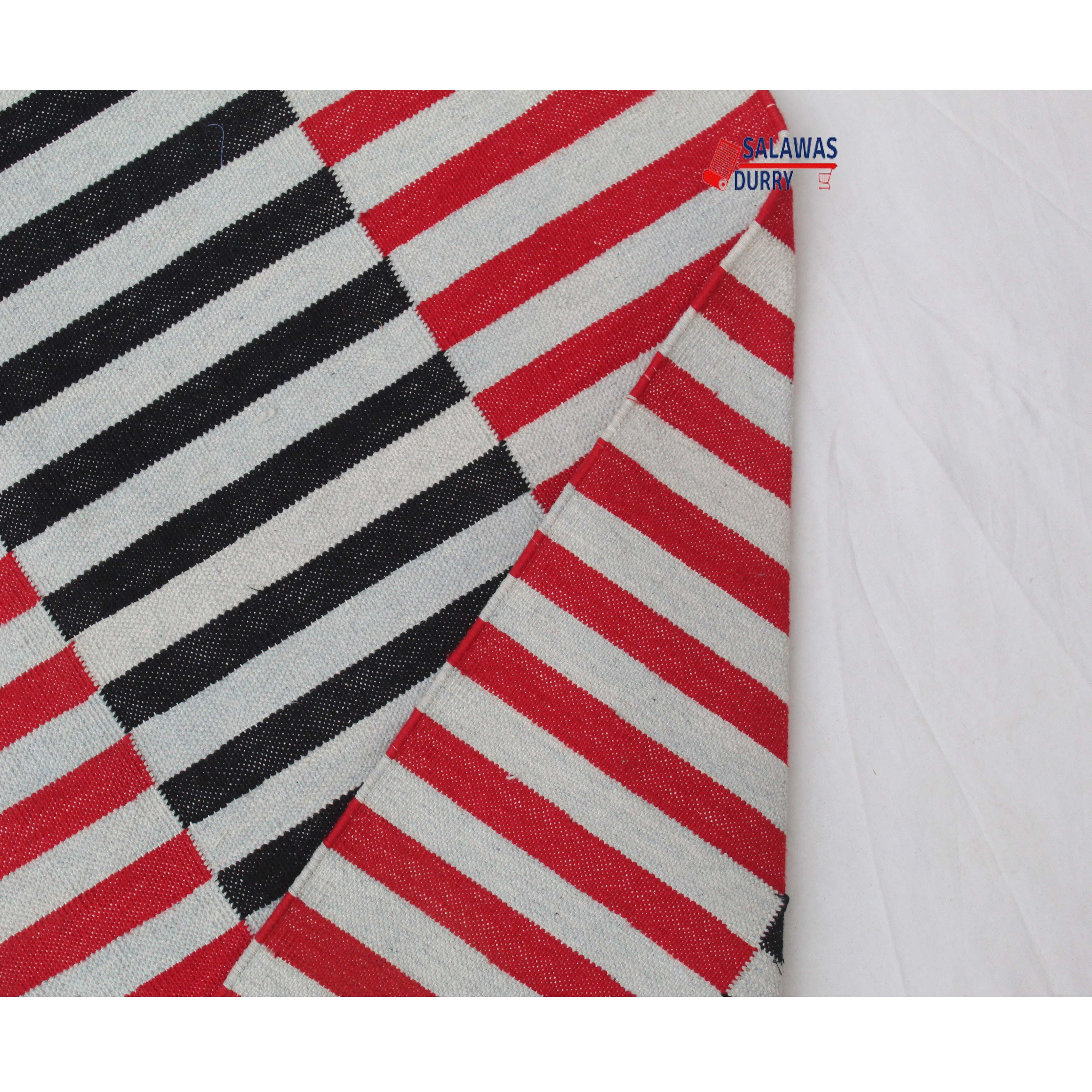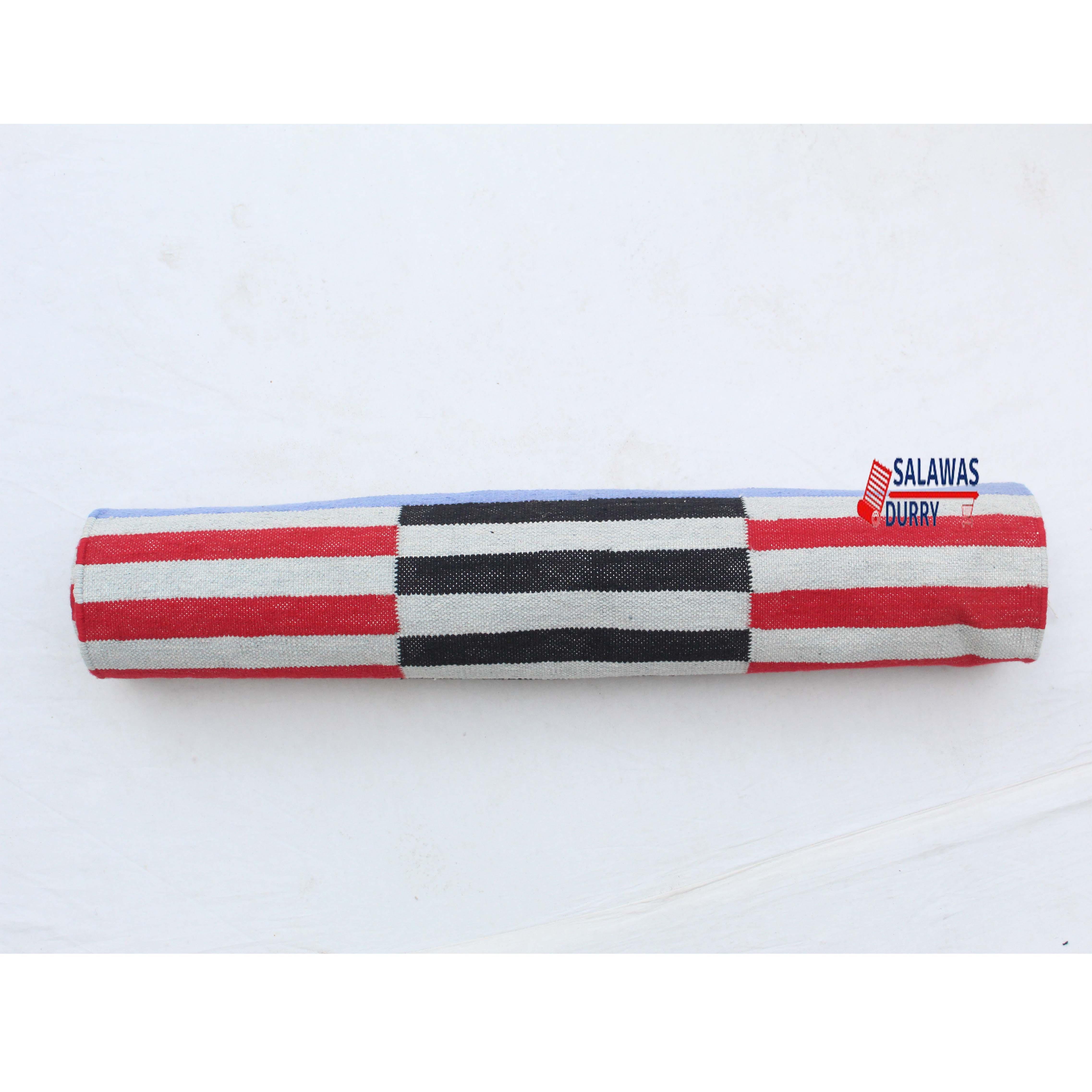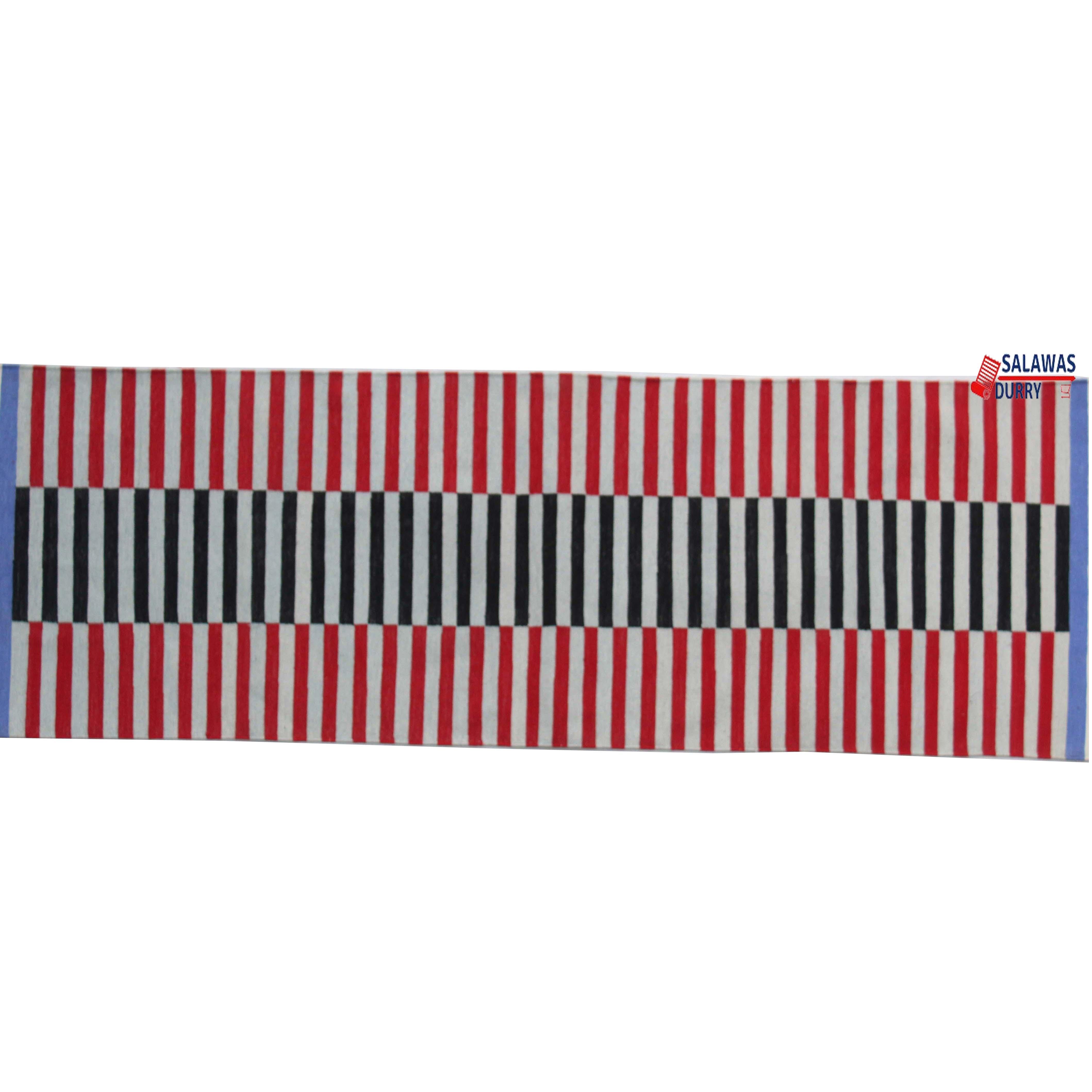 Introducing our exquisite Multiple Sizes Cotton Red And Gray, Blue Modern Stripes Handwoven Runner Rug! This reversible runner kilim rug is skillfully handcrafted, making it a unique and eye-catching addition to your home decoor. Made from premium quality cotton materials, this runner rug offers both durability and comfort.