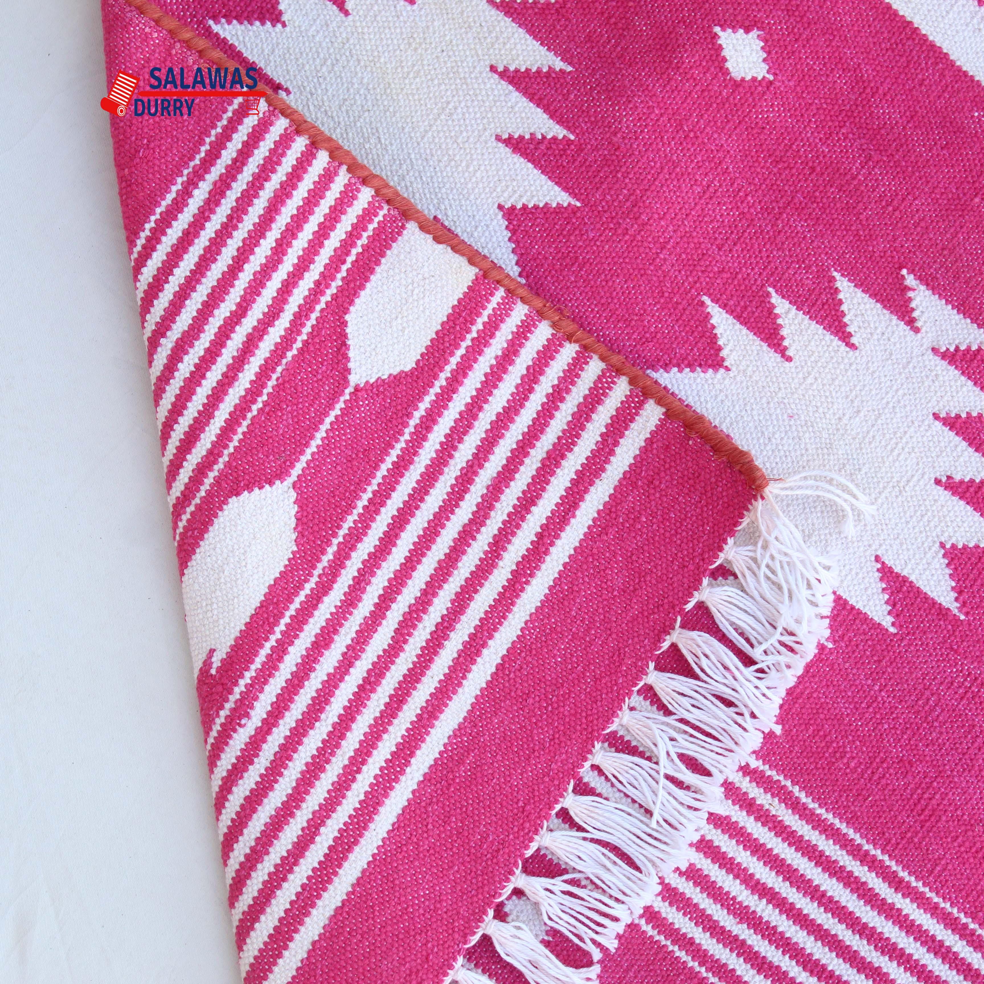 Introducing our exquisite Multiple Sizes Cotton Pink And White Modern Stripes Handwoven Runner Rug! This reversible runner kilim rug is skillfully handcrafted, making it a unique and eye-catching addition to your home decor. Made from premium quality cotton materials, this runner rug offers both durability and comfort.