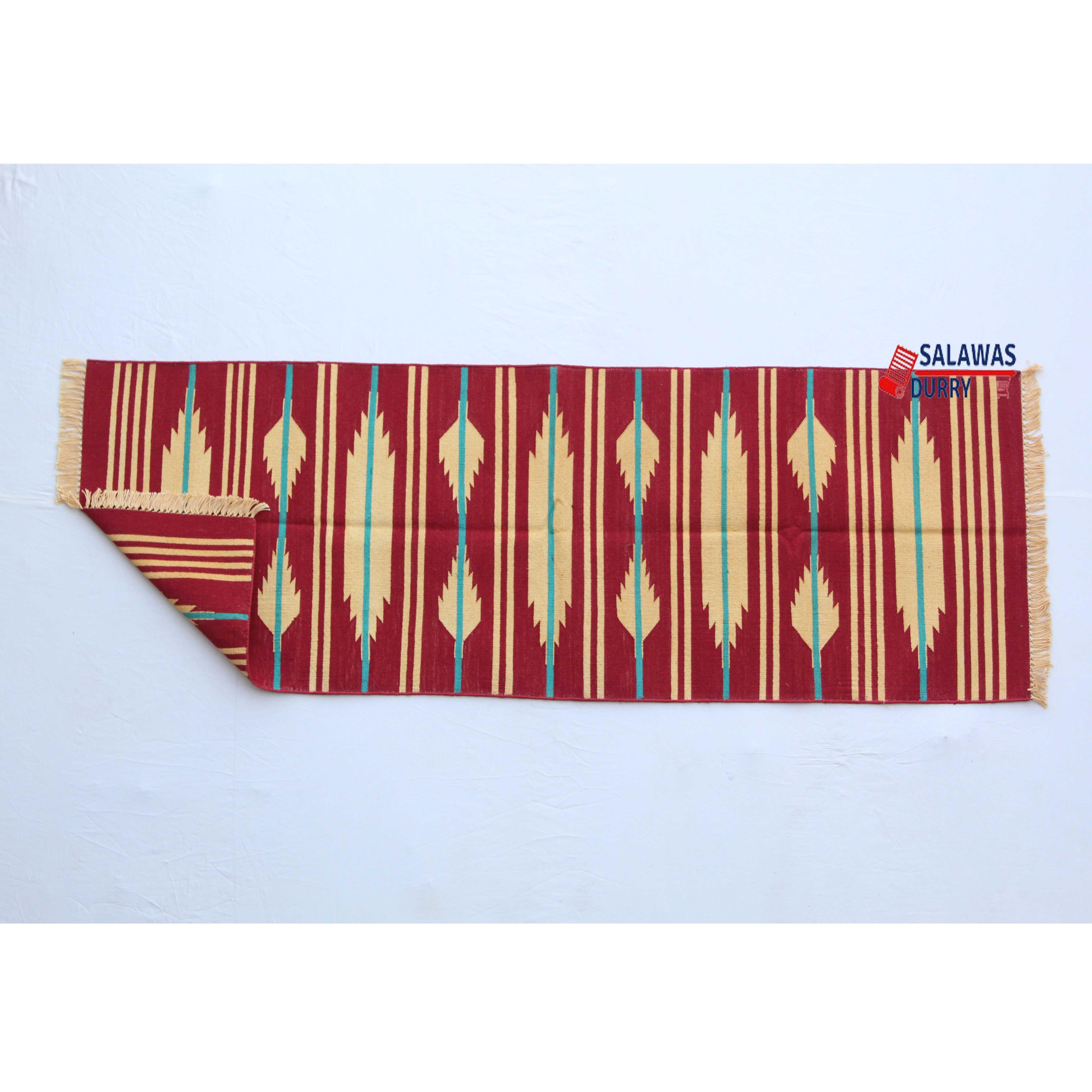 This reversible runner kilim rug is skillfully handcrafted, making it a unique and eye-catching addition to your home decor. Made from premium quality cotton materials, this runner rug offers both durability and comfort.